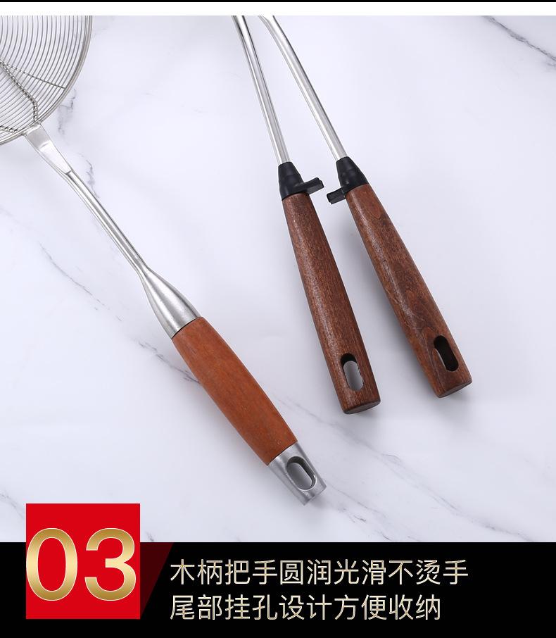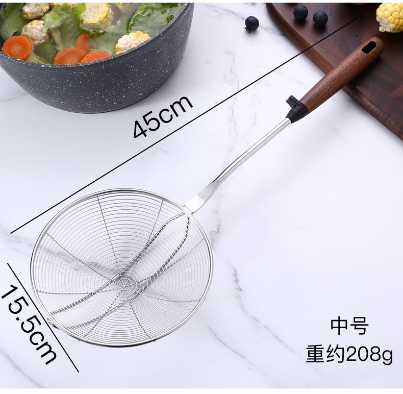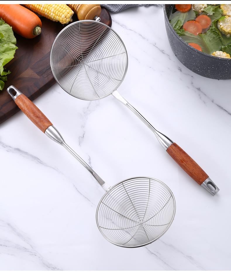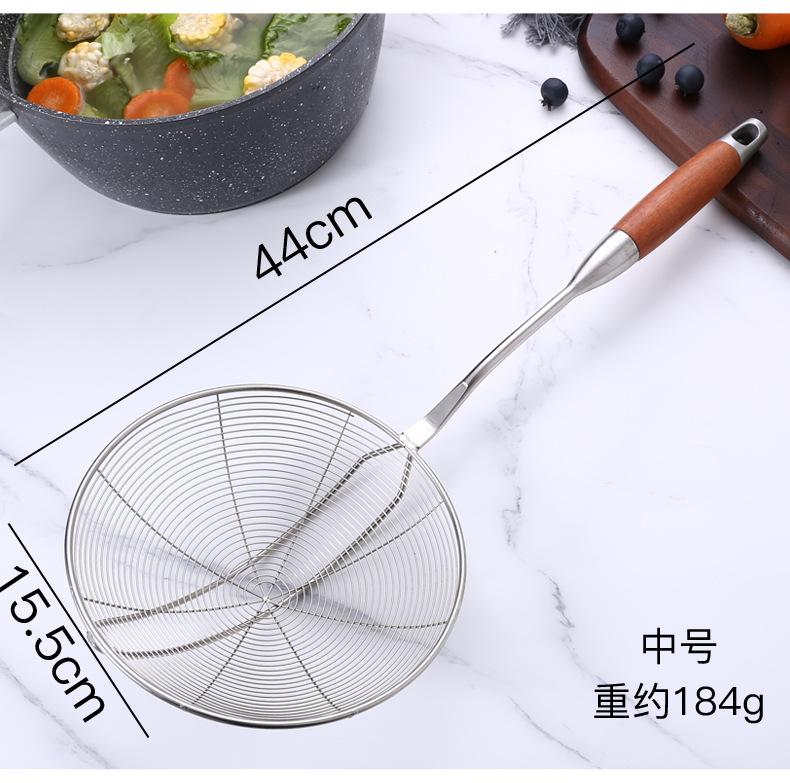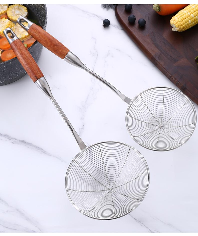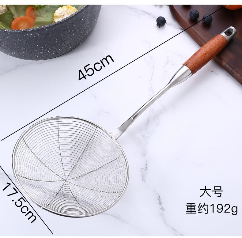 Colador de acero inoxidable de madera maciza colador grande mango largo colador para olla caliente colador para freír filtro drenaje colador grande mayoreo