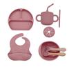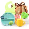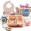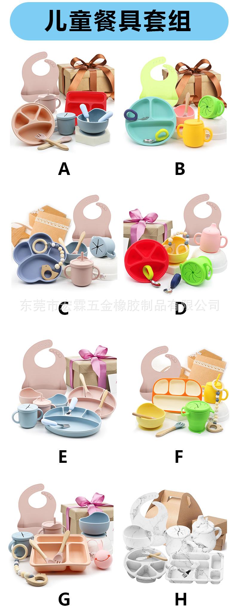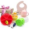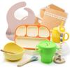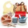 Juego de vajilla de silicona para bebé, tenedor, cuchara, babero, vaso para agua, plato, juego de plato, plato de silicona, caja sorpresa