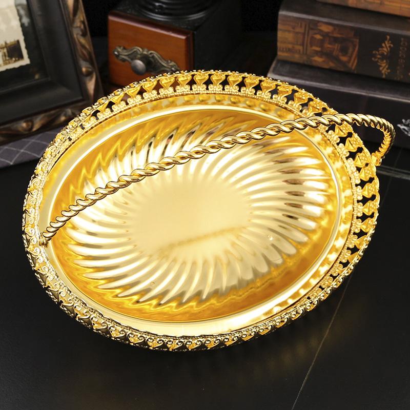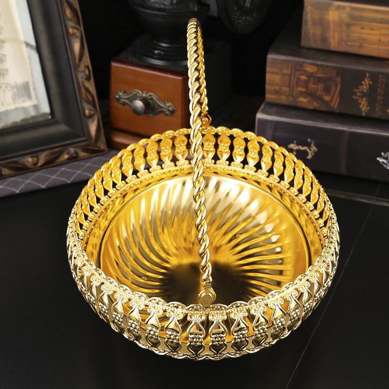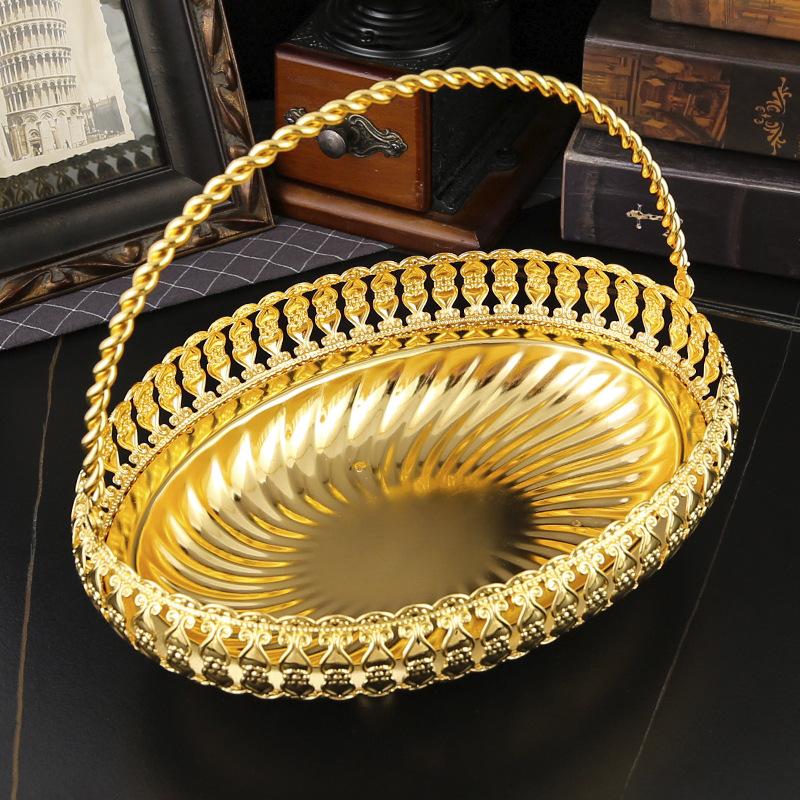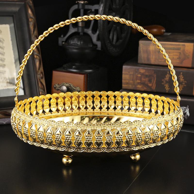 Exquisito Plato de Frutas Dorado de Hierro Simple Creativo Metal Organizador de Dulces Caja de Almacenamiento de Snacks Mesa Fría para Pasteles