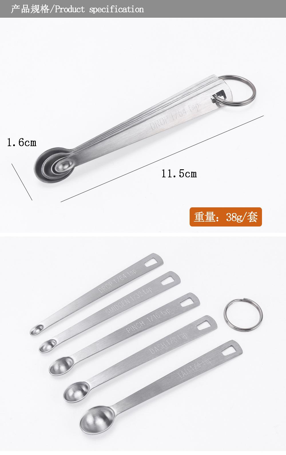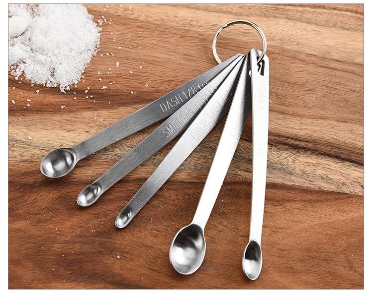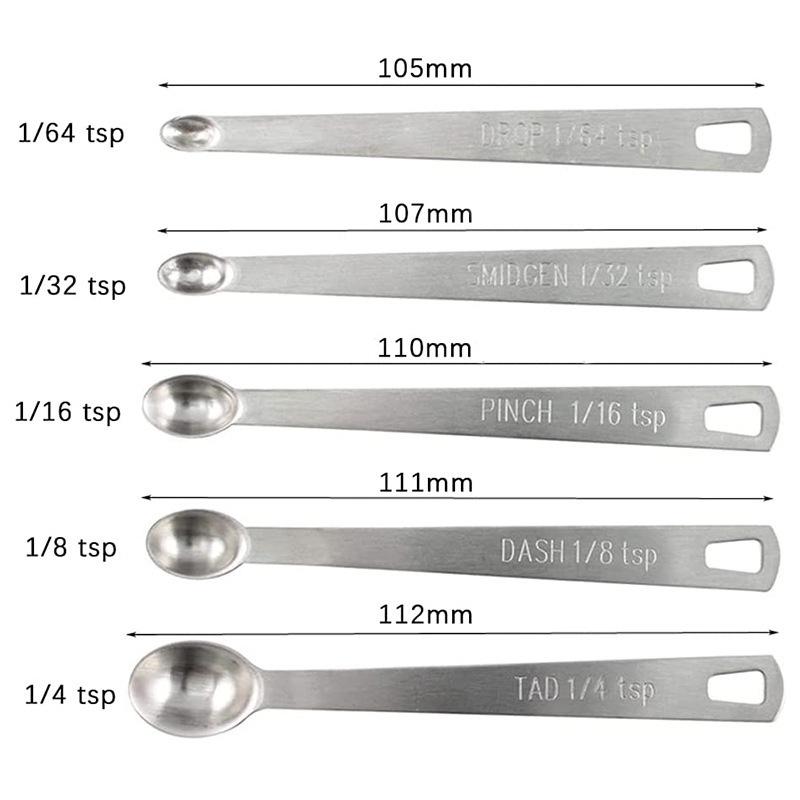 Herramientas para Hornear Acero Inoxidable Mini Cuchara Medidora de 5 Piezas Cuchara para Condimentos de Cocina Combinación Juego de Cucharas Medidoras Integradas de Acero Inoxidable