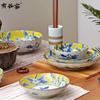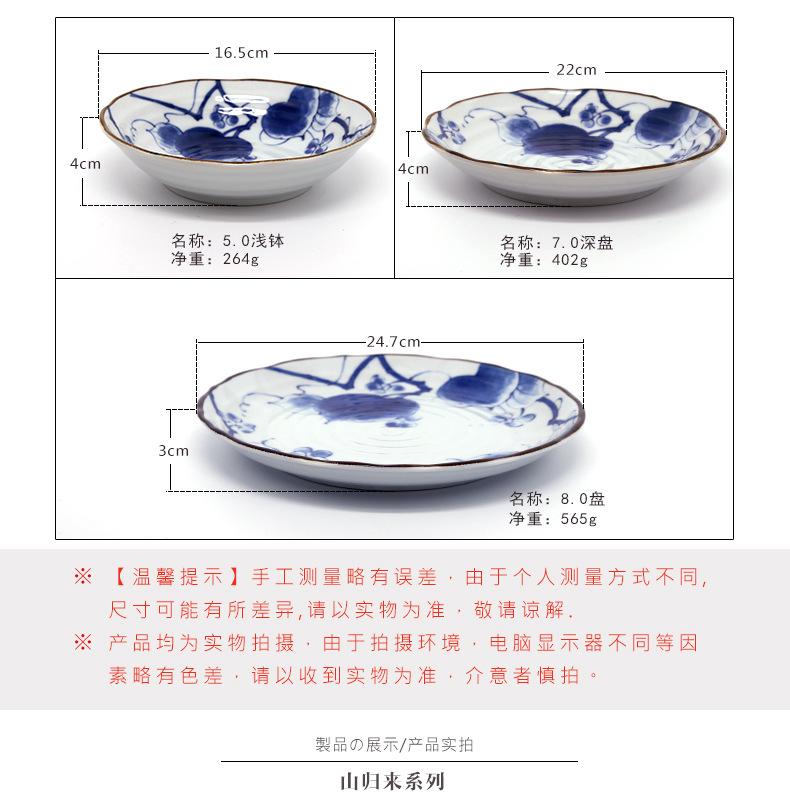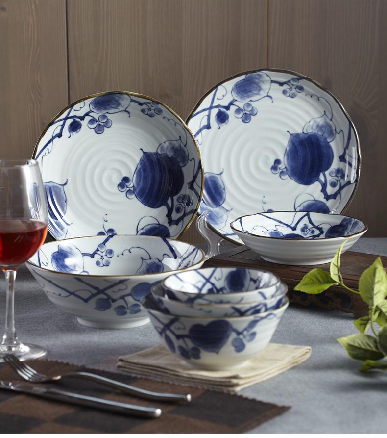 Vajilla de Cerámica Japonesa de las Montañas, Estilo Mino-Yaki, Tazones y Platos de Estilo Japonés con Artesanía de Color Bajo Esmalte