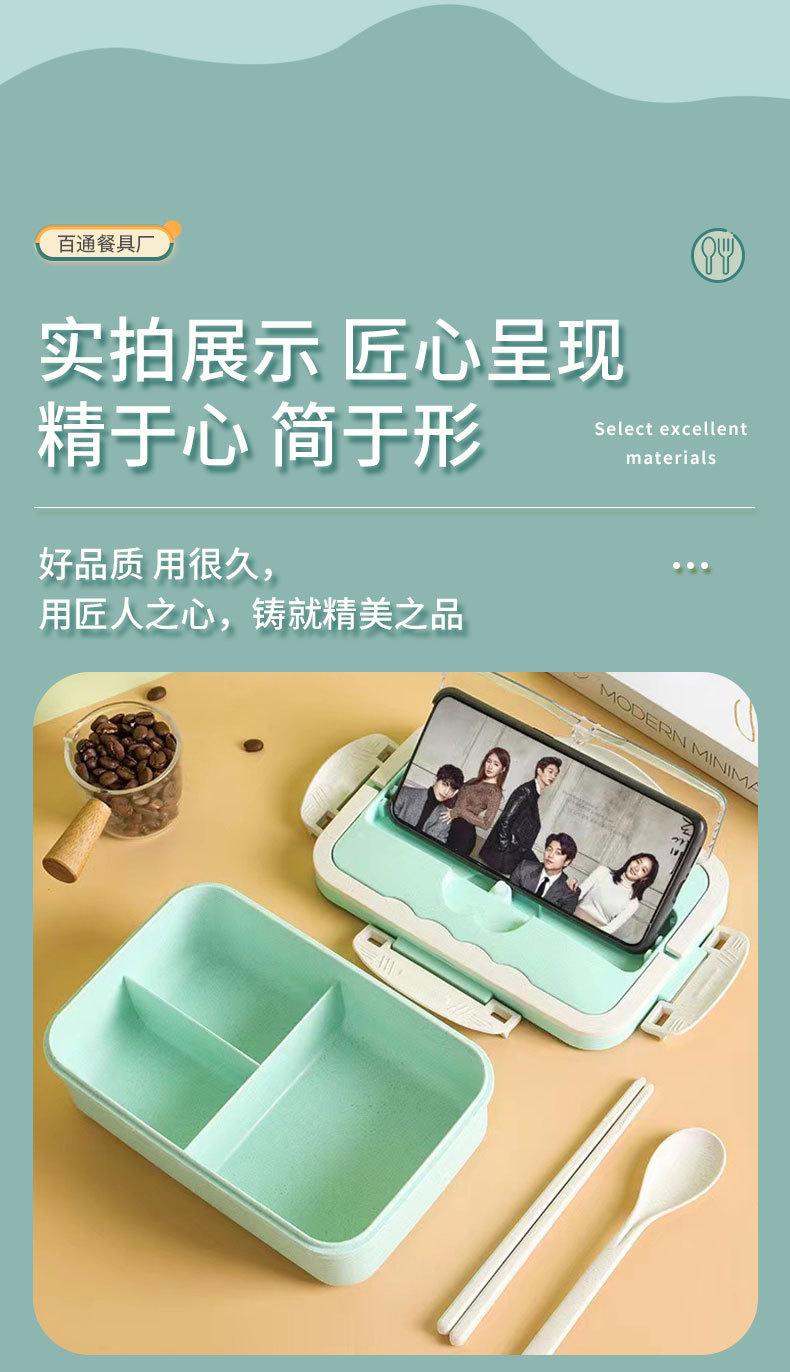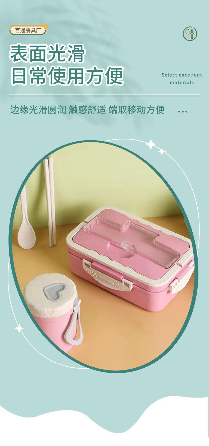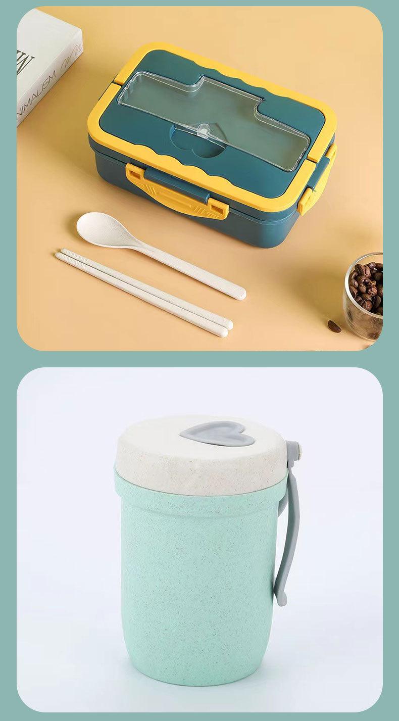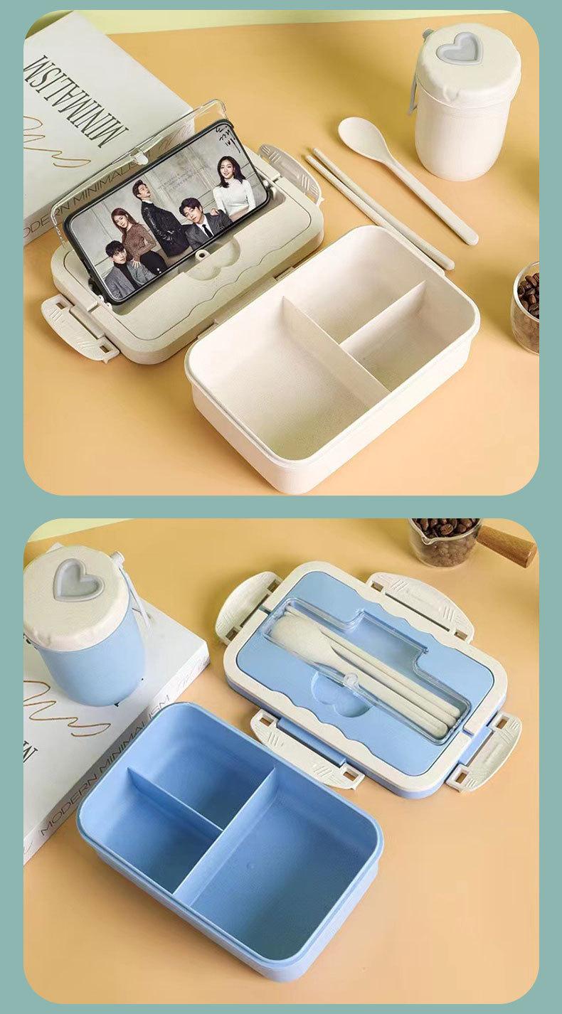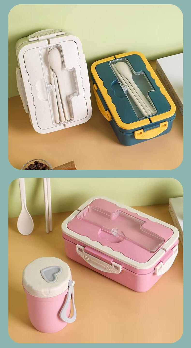 Fiambrera de Paja de Trigo con Compartimentos, Fiambrera Apta para Microondas para Trabajadores de Oficina, Fiambrera de Plástico para Estudiantes, Aislada y Portátil