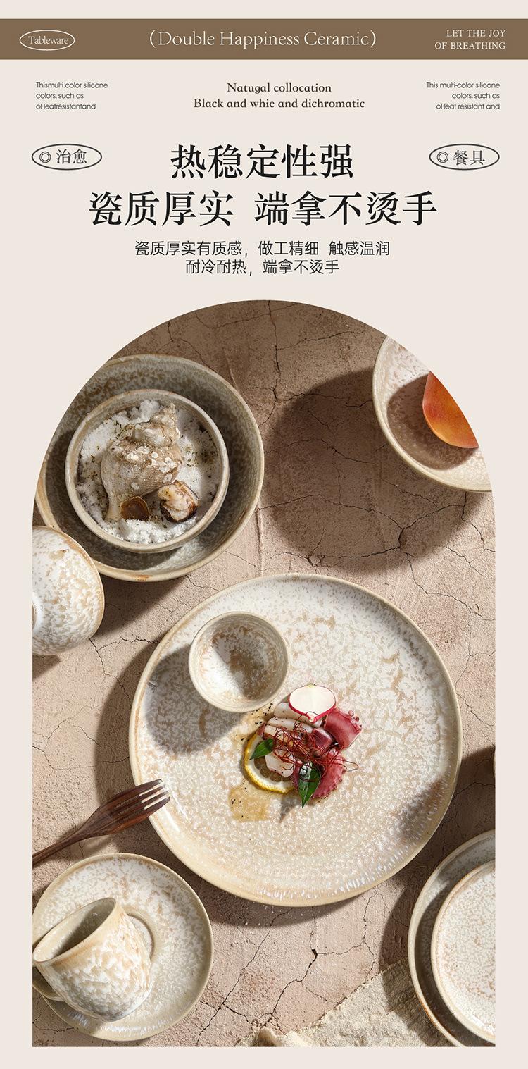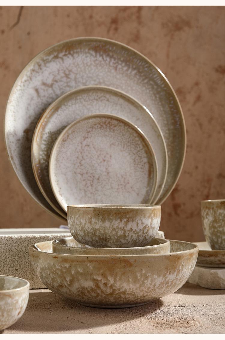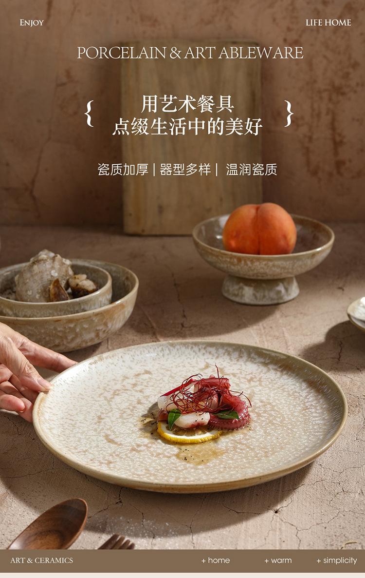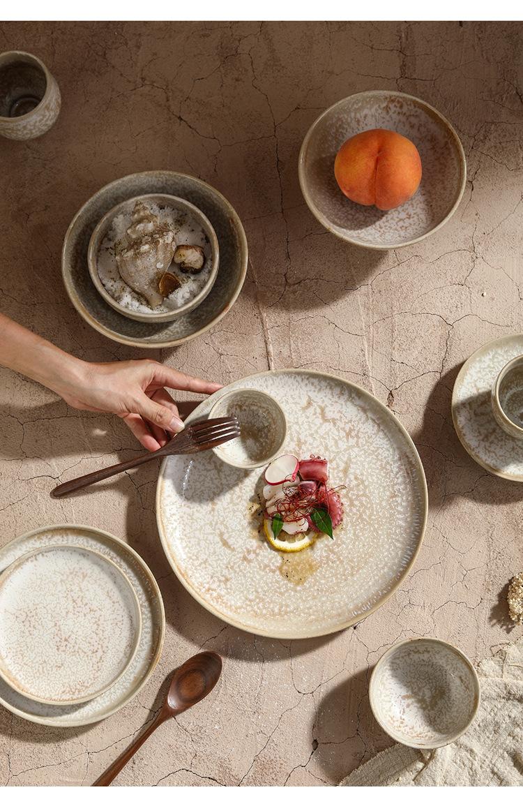 Plato Redondo Moteado Retro Plato Hondo Japonés Plato para Cena Plato para Ensalada Plato para Bistec Vajilla Cerámica para el Hogar Plato Redondo para Cena