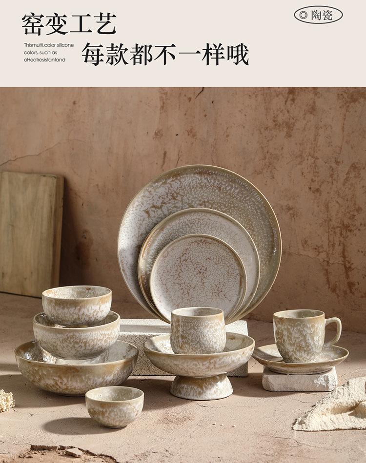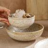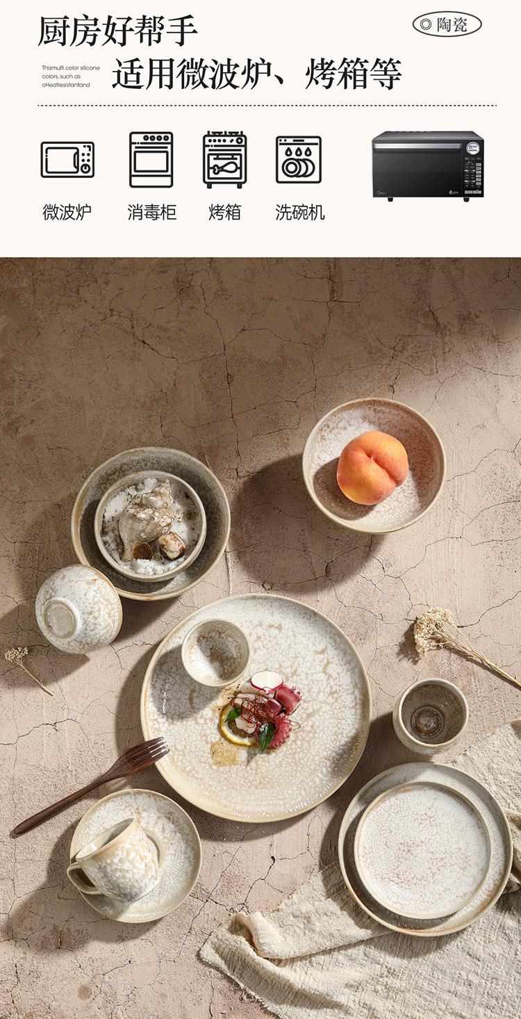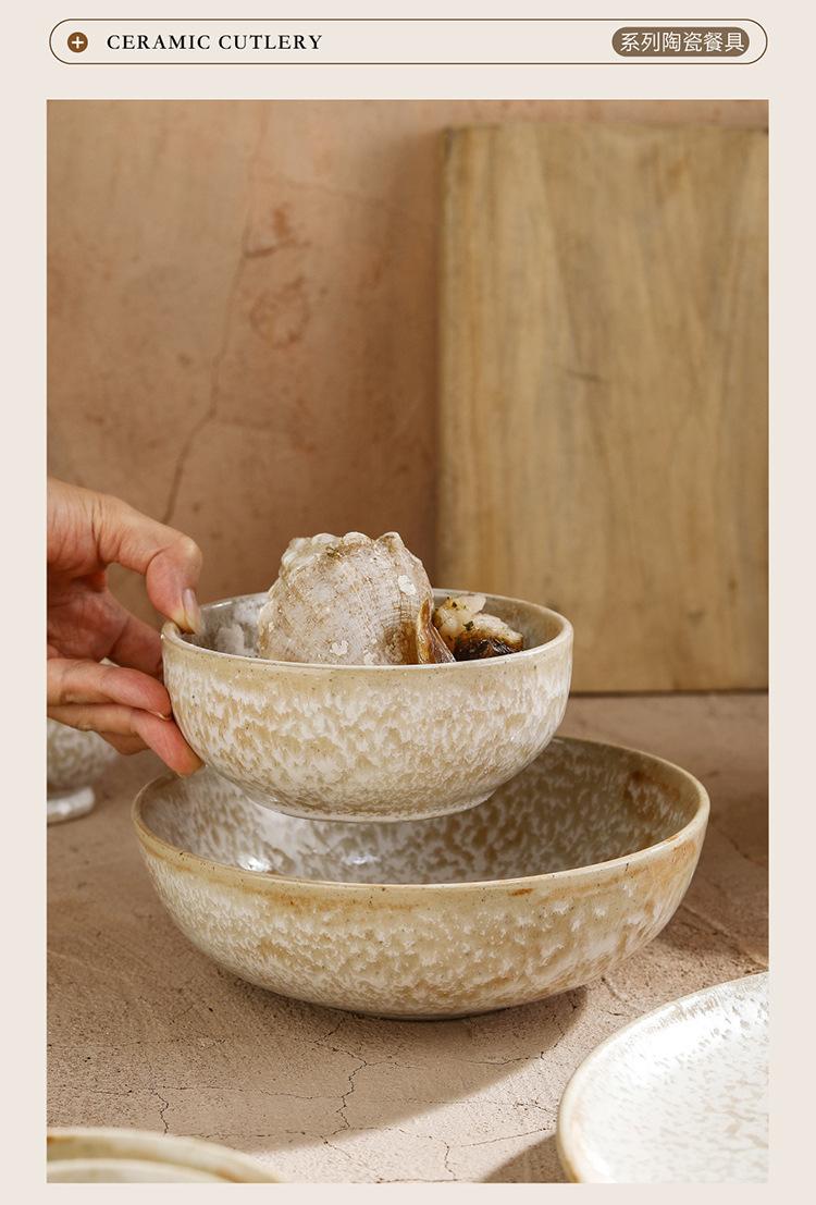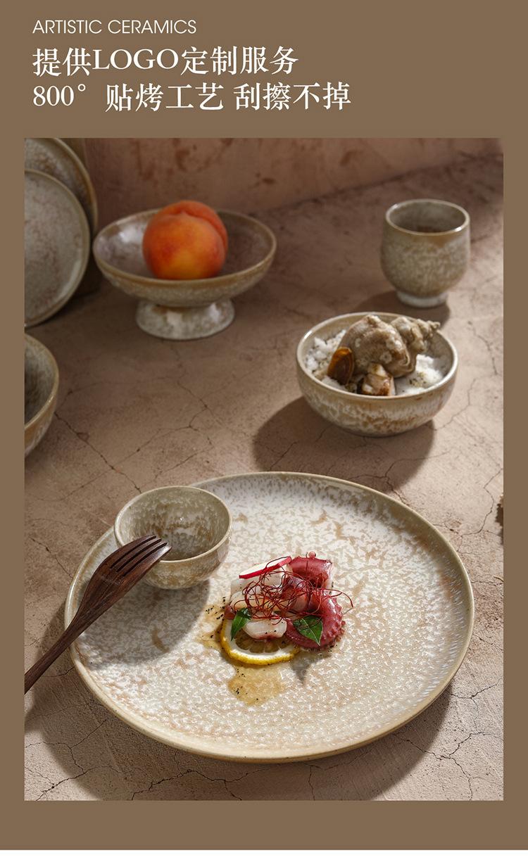 Plato Redondo Moteado Retro Plato Hondo Japonés Plato para Cena Plato para Ensalada Plato para Bistec Vajilla Cerámica para el Hogar Plato Redondo para Cena