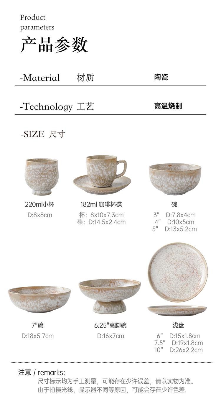 220ml small cup, coffee cup, Coffee cup and saucer + coffee cup, 3" bowl, 4" bowl, 5" bowl, 7" bowl, 6.25" foo...