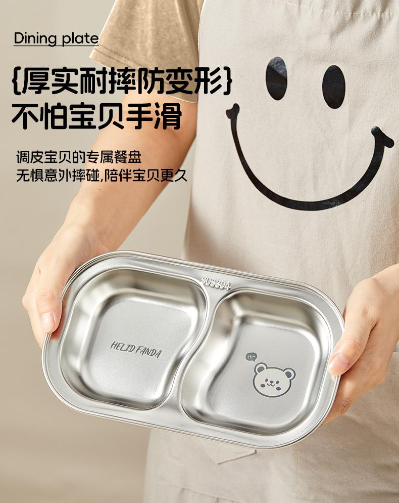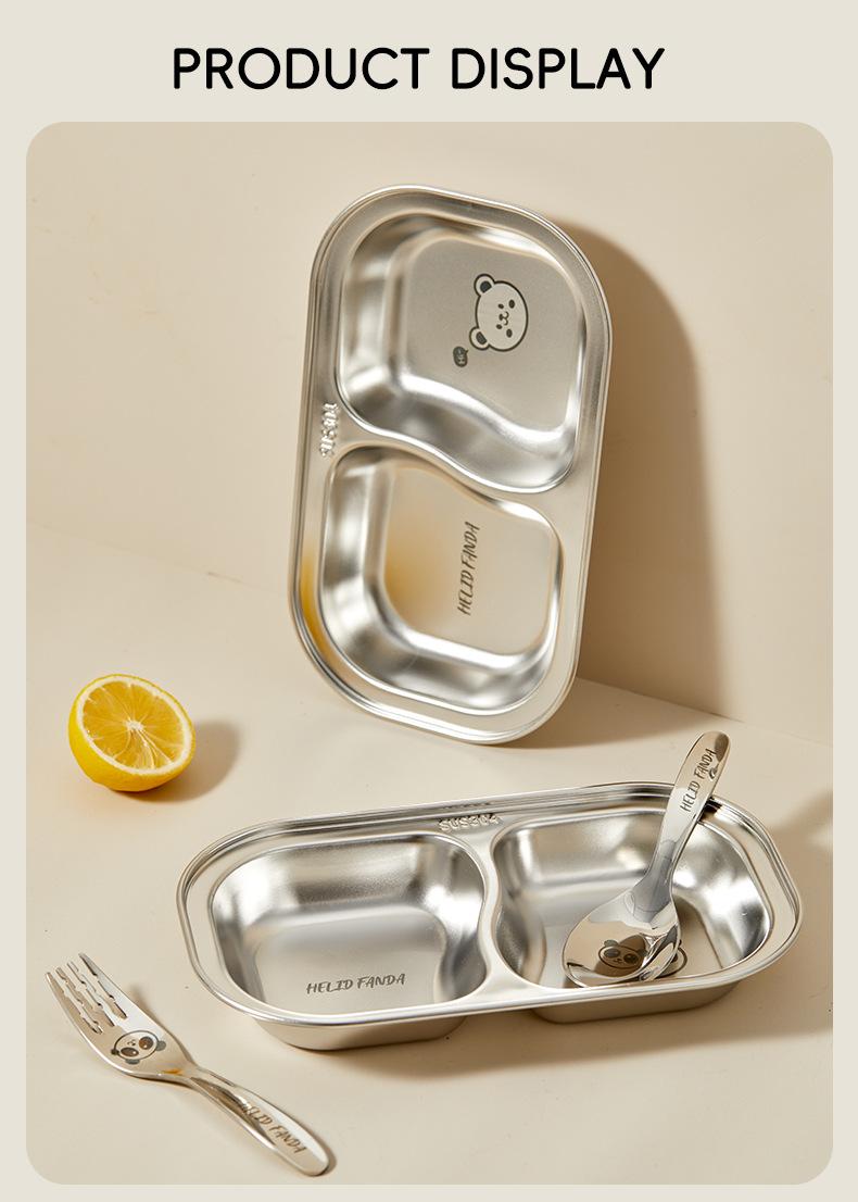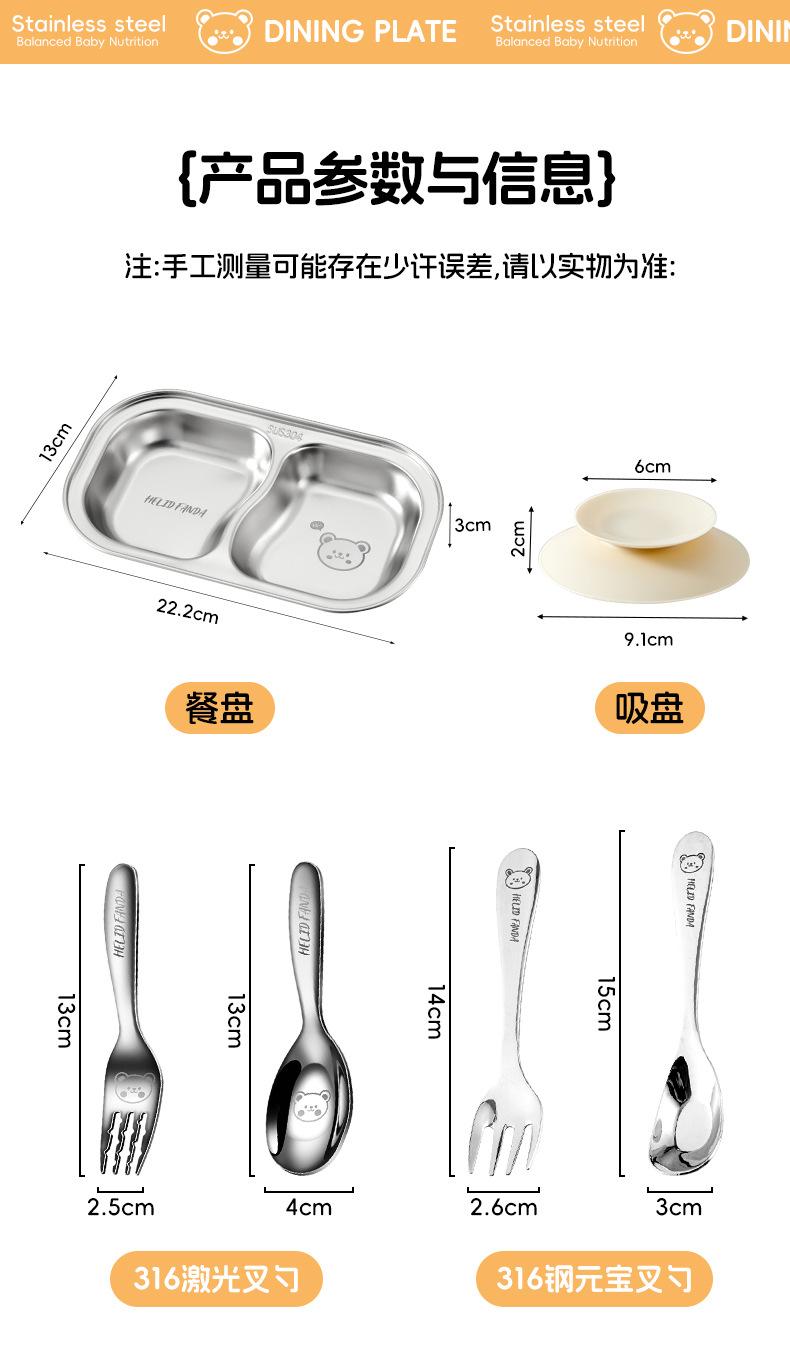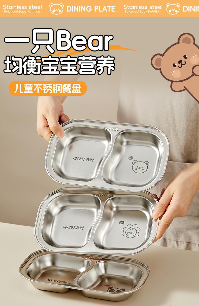Plato de Cena Infantil de Acero Inoxidable Familia Oso 304 Tazón para Alimentos con Ventosa Bebé Aprende a Comer Independientemente Vajilla Separada