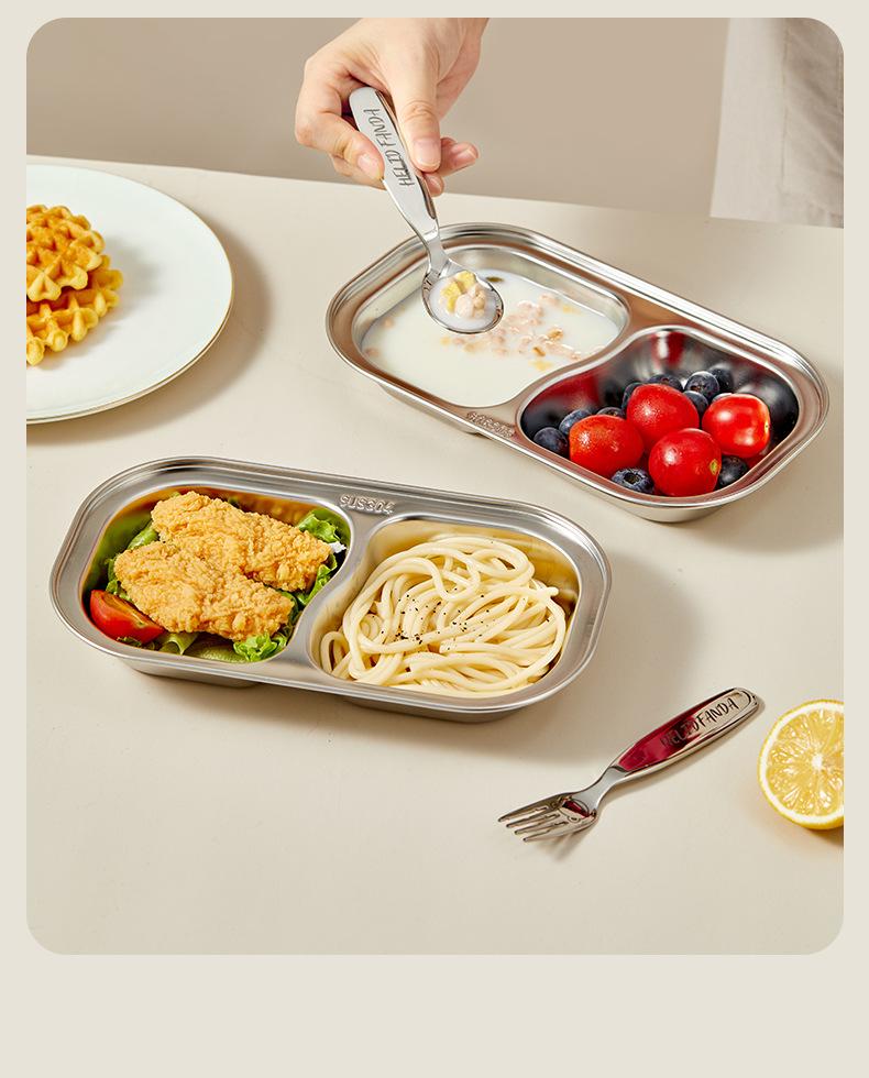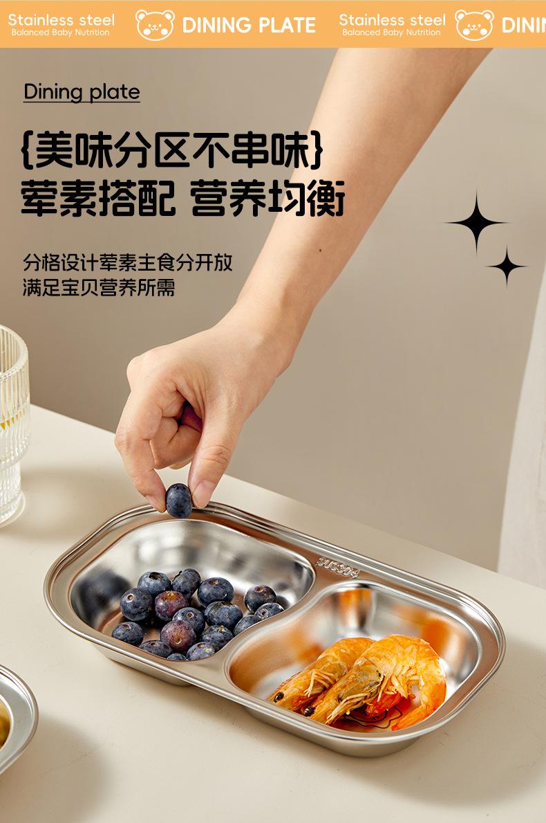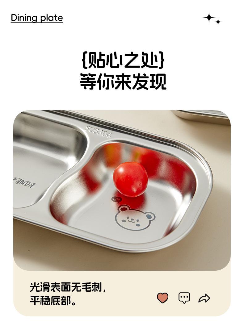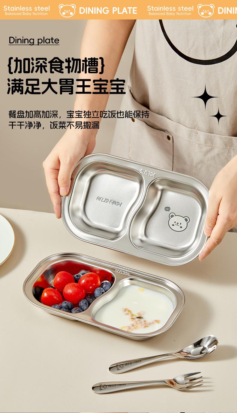 Plato de Cena Infantil de Acero Inoxidable Familia Oso 304 Tazón para Alimentos con Ventosa Bebé Aprende a Comer Independientemente Vajilla Separada