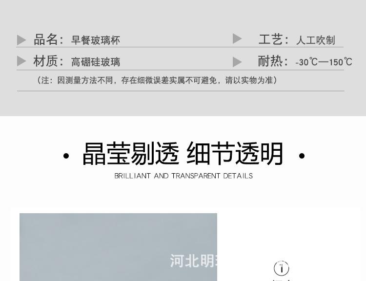 Taza para Desayuno de Vidrio de Borosilicato Alto Vaso de Vidrio Grueso Vaso para Jugo Vaso para Agua de Hogar Taza de Café Vaso de Vidrio Transfronterizo
