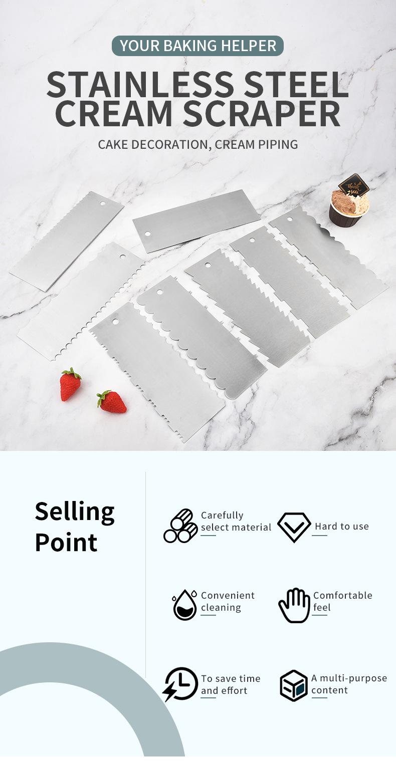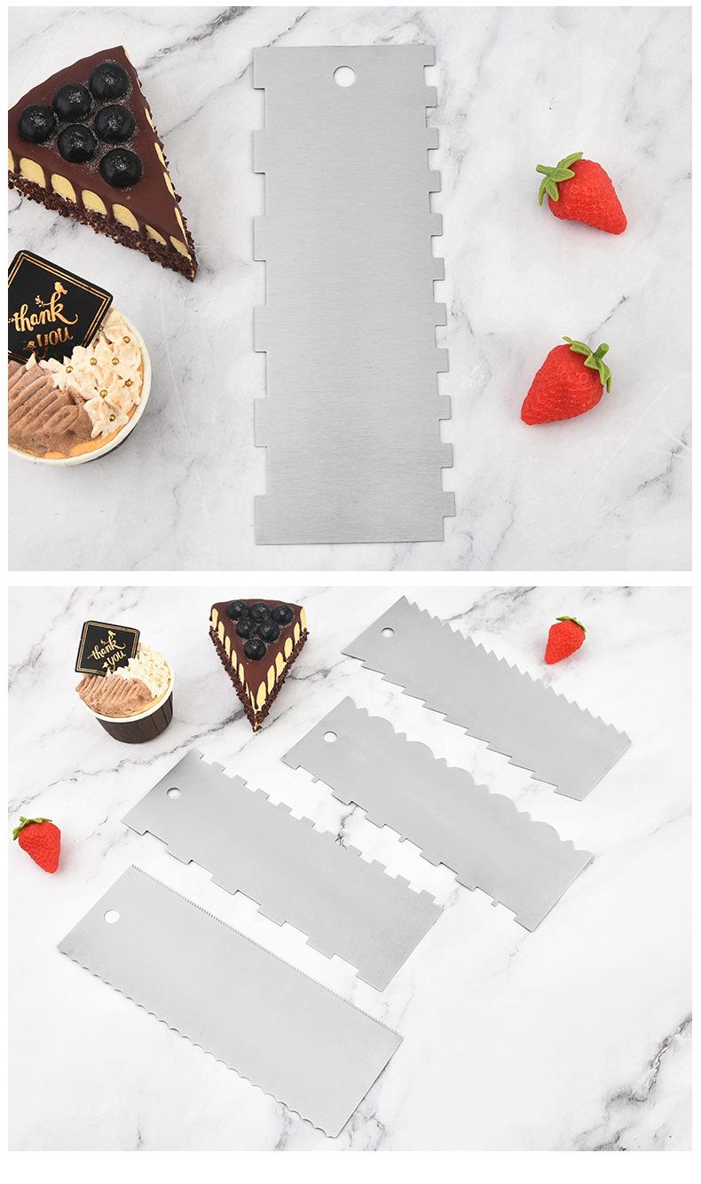 Raspador de Crema de Acero Inoxidable Raspador Creativo de Patrones de Pastel DIY Espátula Poligonal Dentada Herramienta para Hornear