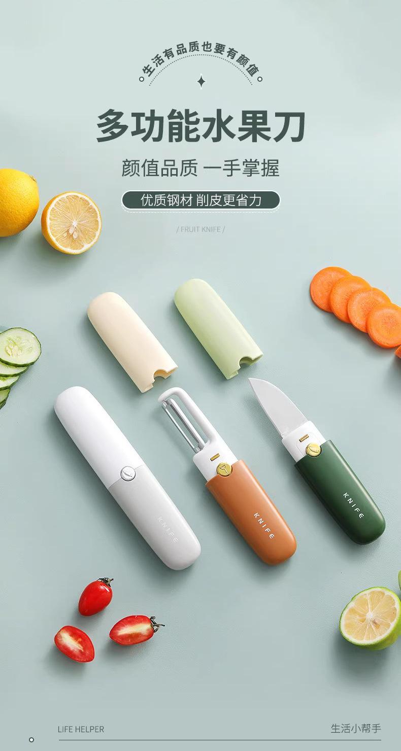 Cuchillo para fruta uso en dormitorio estudiante pelador pelador hogar portátil multifuncional dos en uno artefacto para pelar manzanas