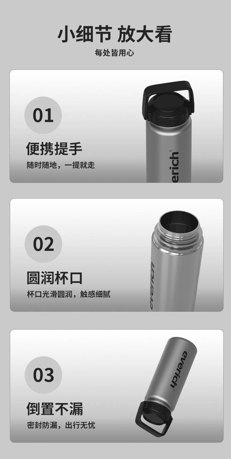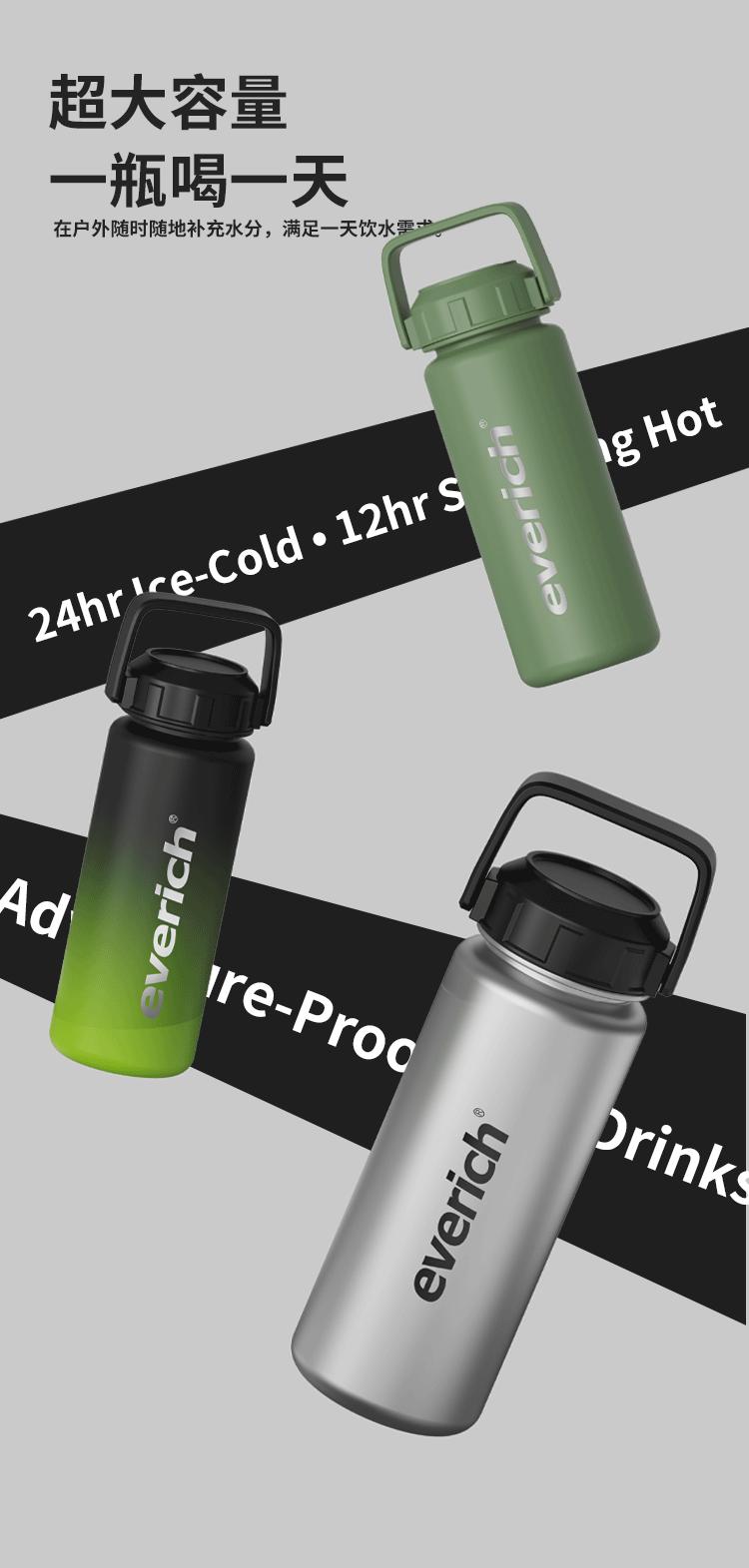 Nueva Botella de Agua Deportiva para Exteriores de Gran Capacidad de 960 ml Vaso Aislado de Acero Inoxidable Asa de Acero Inoxidable 304 Botella Espacial
