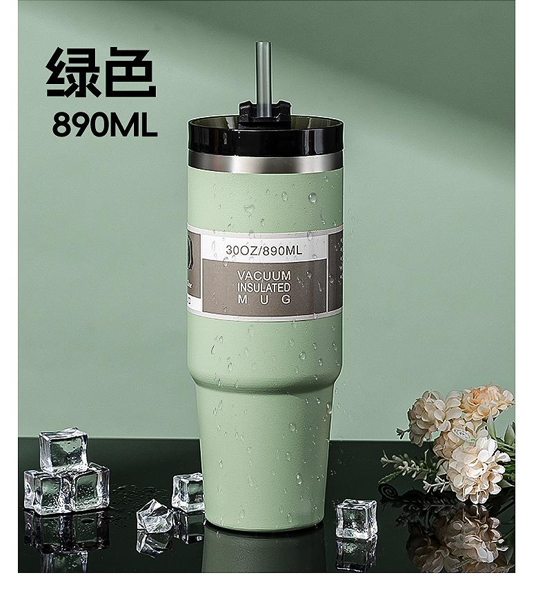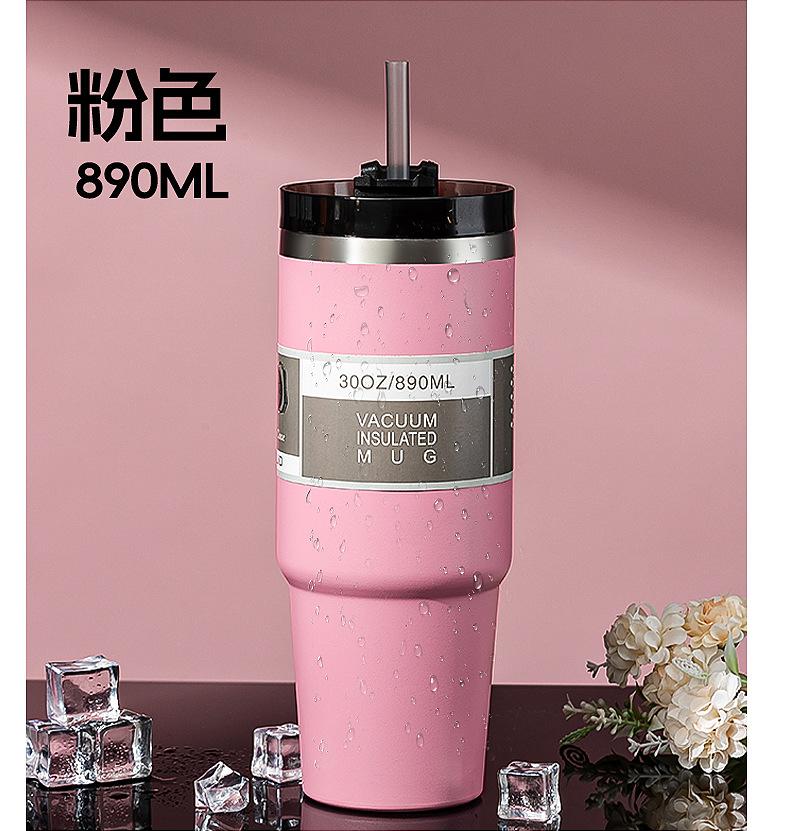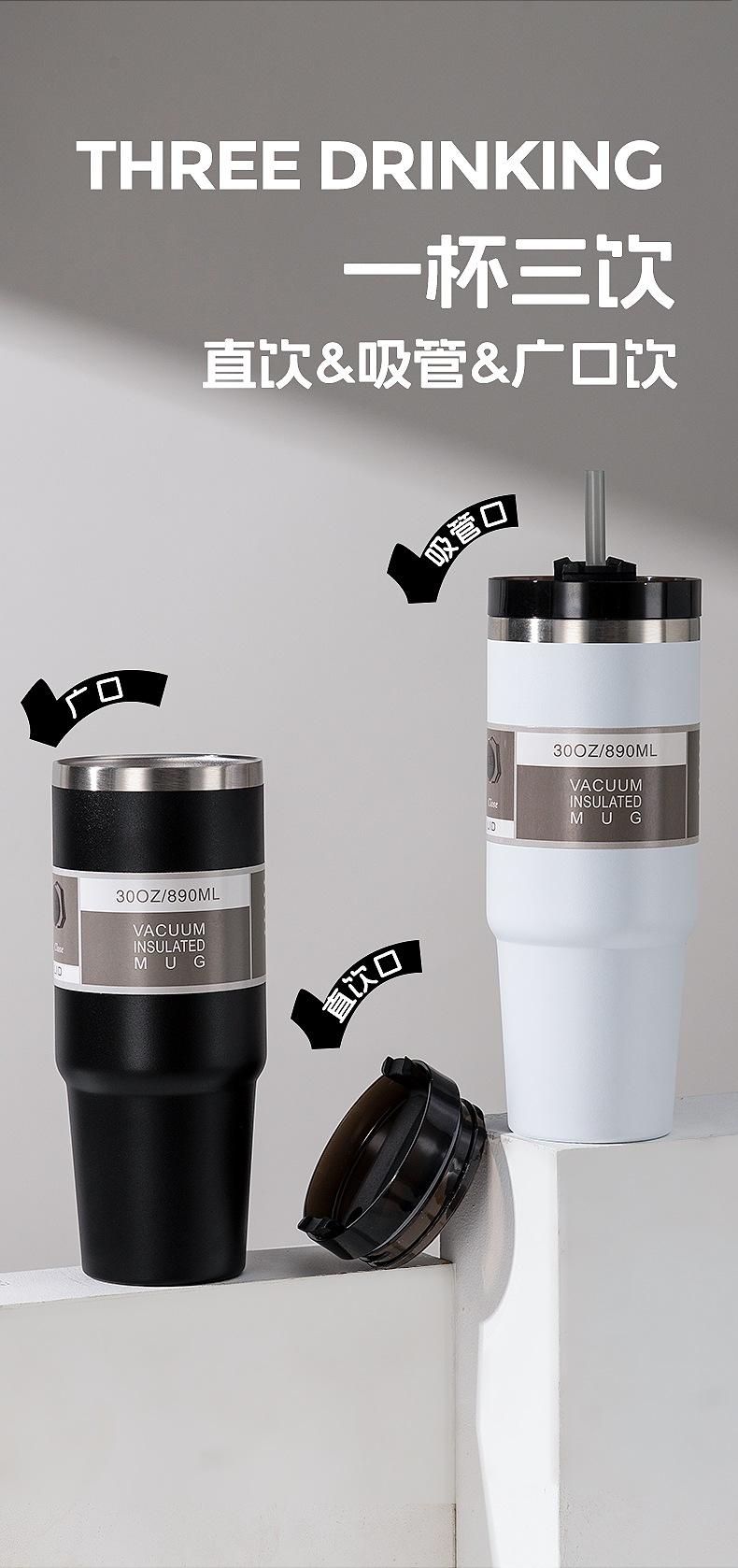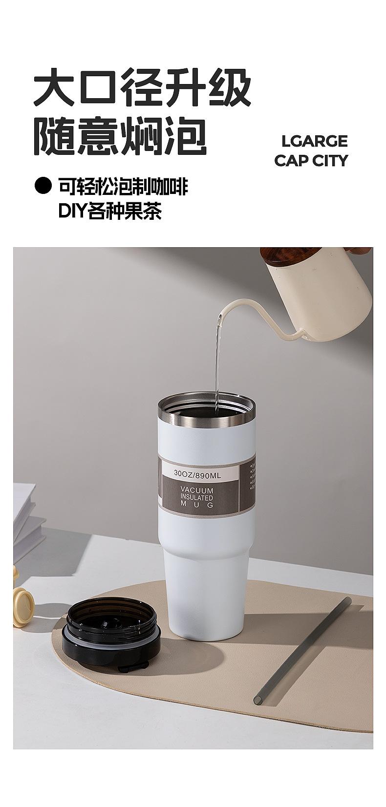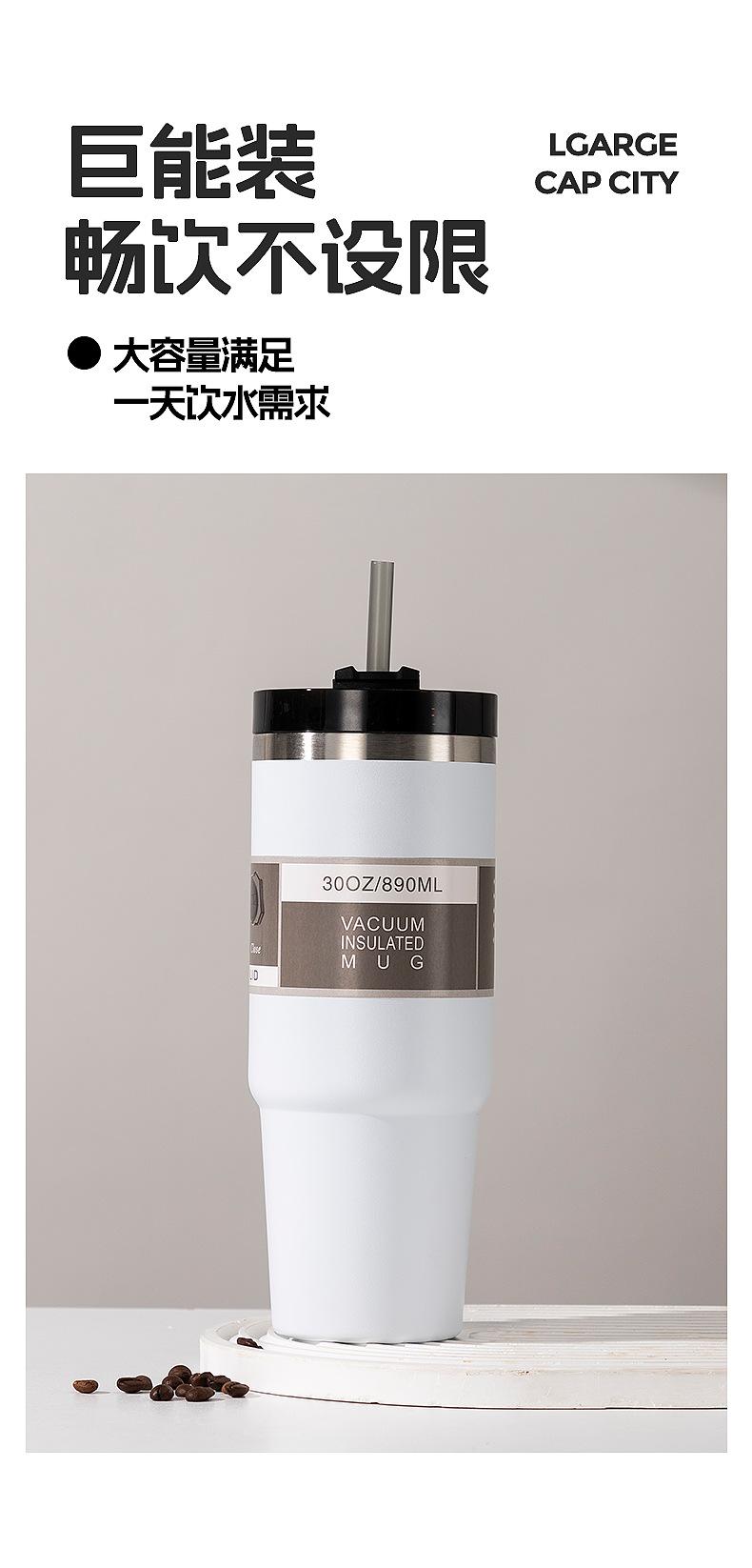 Taza de Café Minimalista de Acero Inoxidable Taza Aislada Gran Capacidad Taza con Pajita Montada en el Coche Vaso de Agua de Alto Valor Aislado para Frío Vaso Ice King