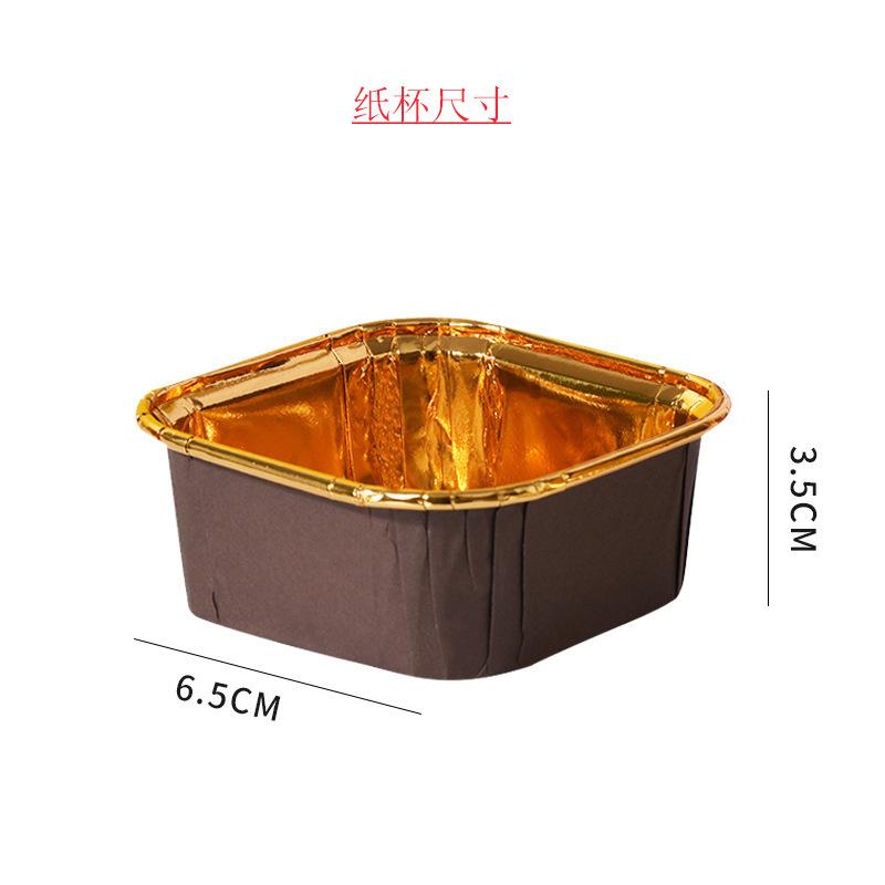 Nombre del Producto: Vasitos de Papel Cuadrados para Hornear Pastel Personalizados 50 Espesados a Prueba de Aceite Resistentes a Altas Temperaturas Papel Laminado Dorado y Plateado Base para Pastel