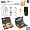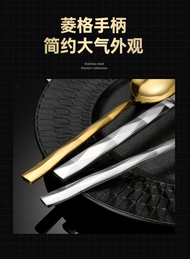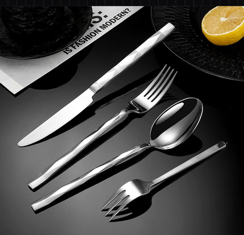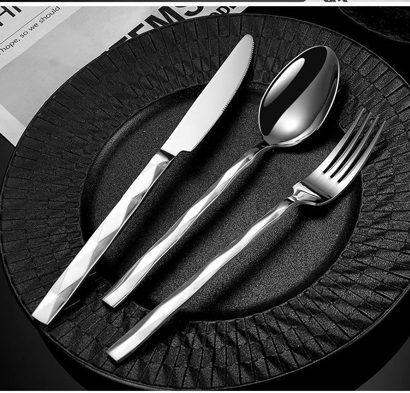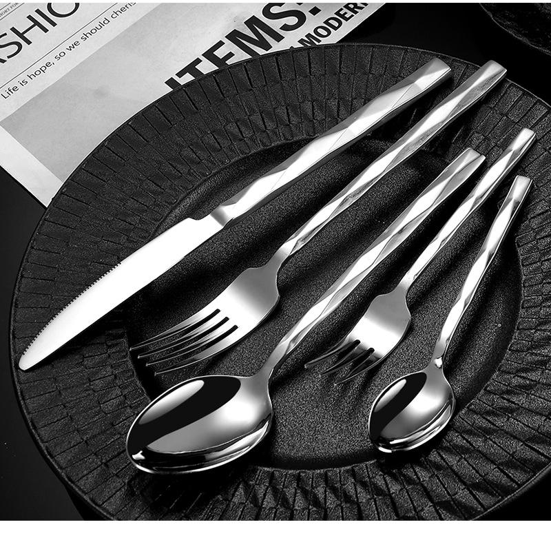 Cubiertos de Acero Inoxidable con Mango de Diamante Transfronterizo Juego de 20 Piezas Amazon Cuchillo Tenedor Cuchara Cucharita de Café Comida Occidental Juego de Caja de Regalo