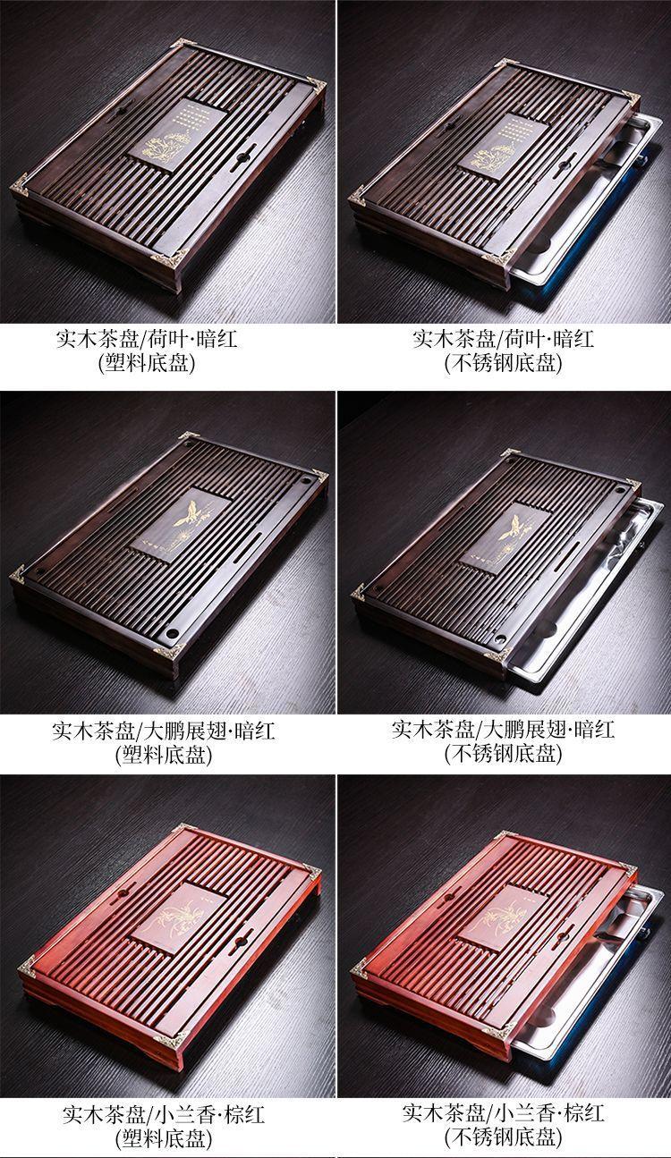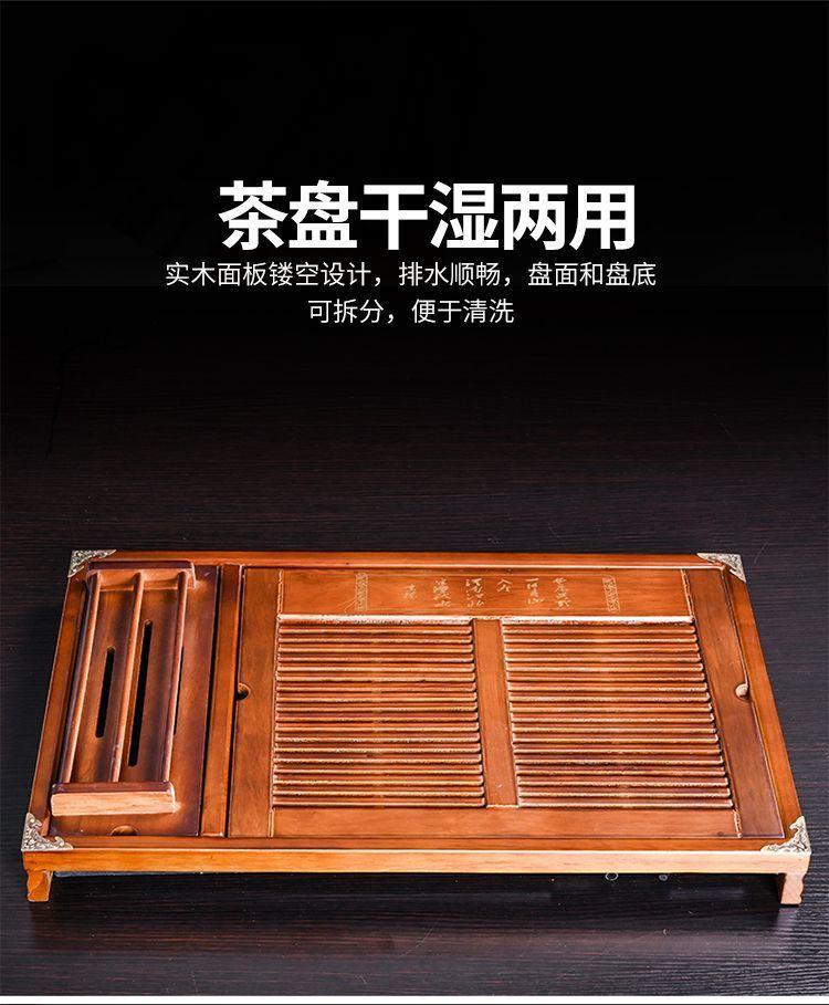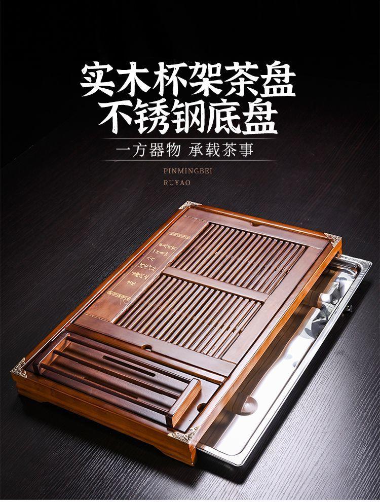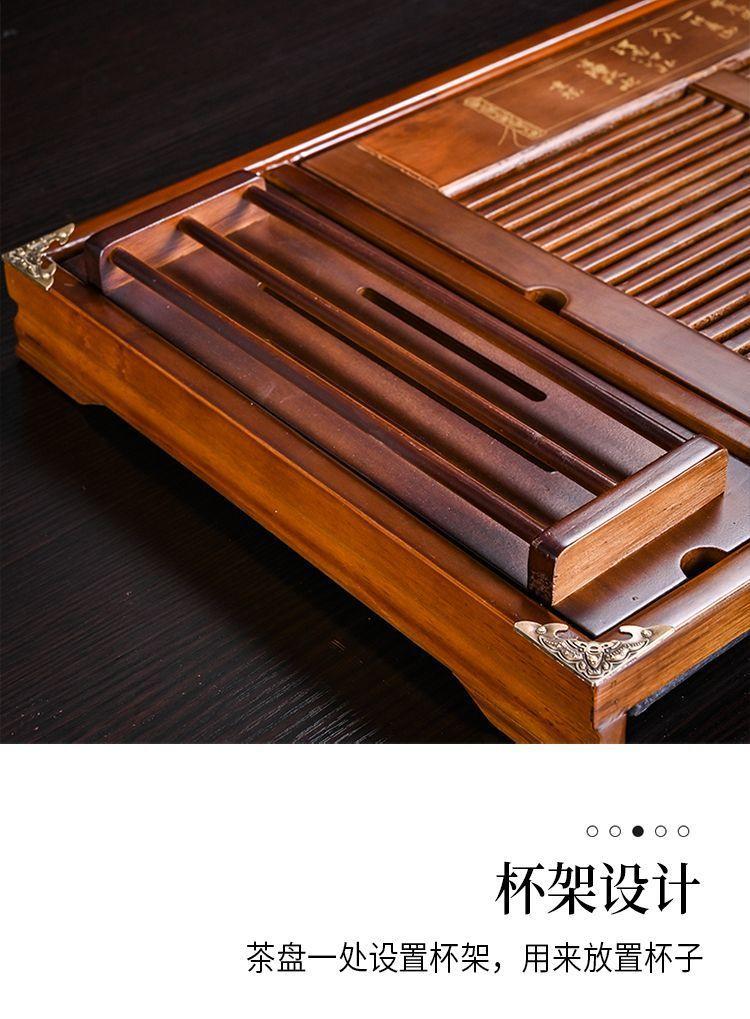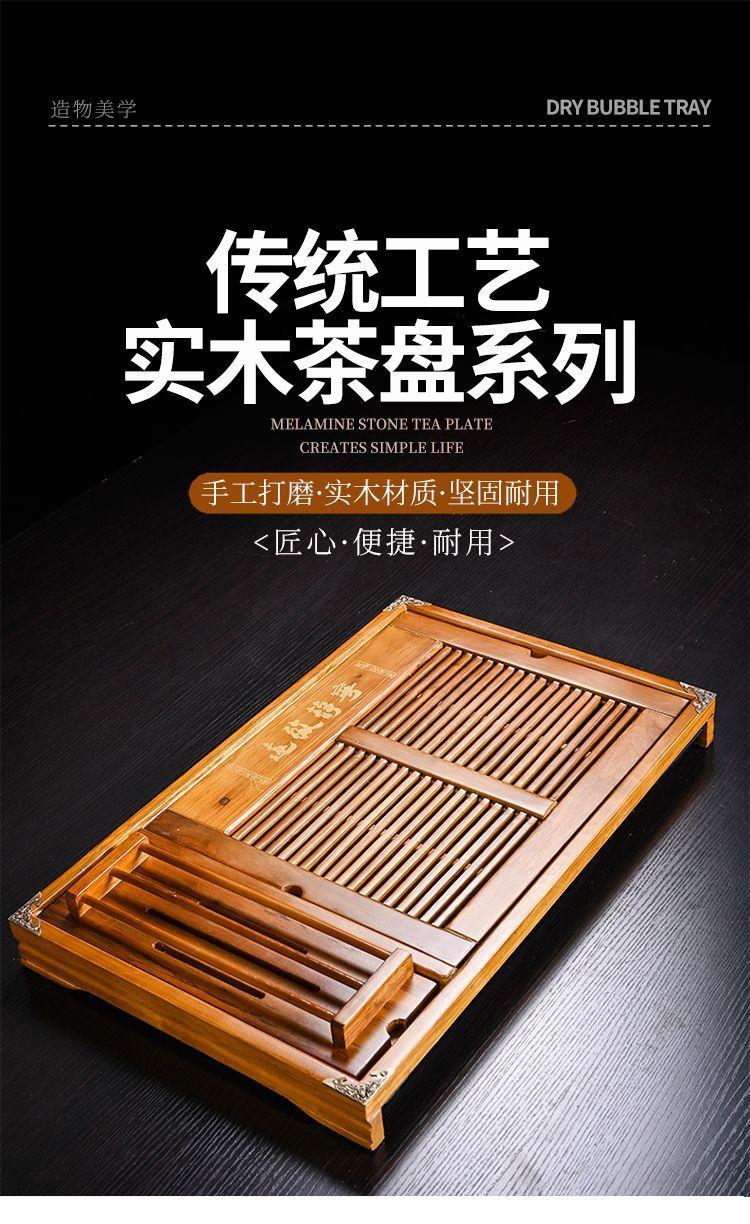 Bandeja de té de madera maciza, juego de té de kung fu para el hogar, juego de bandejas, cajón de bambú simple, mesa de té de almacenamiento y drenaje, juego de té pequeño de mar