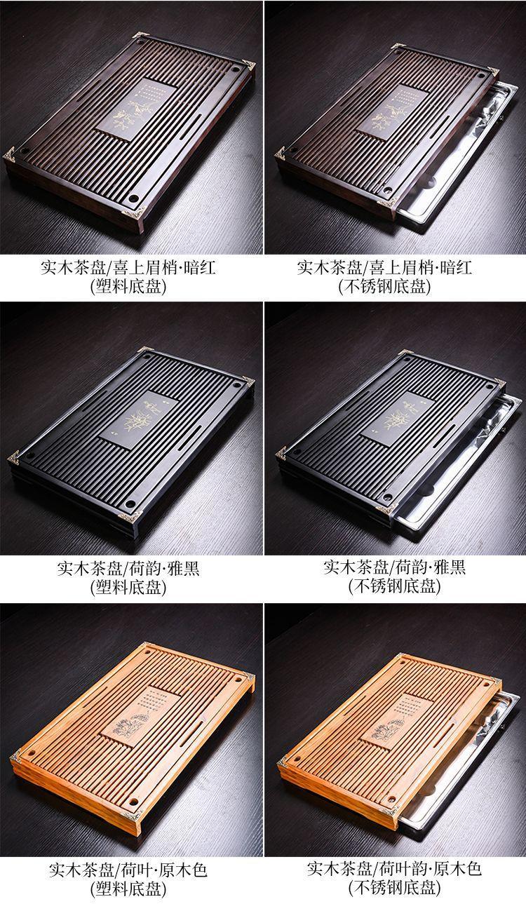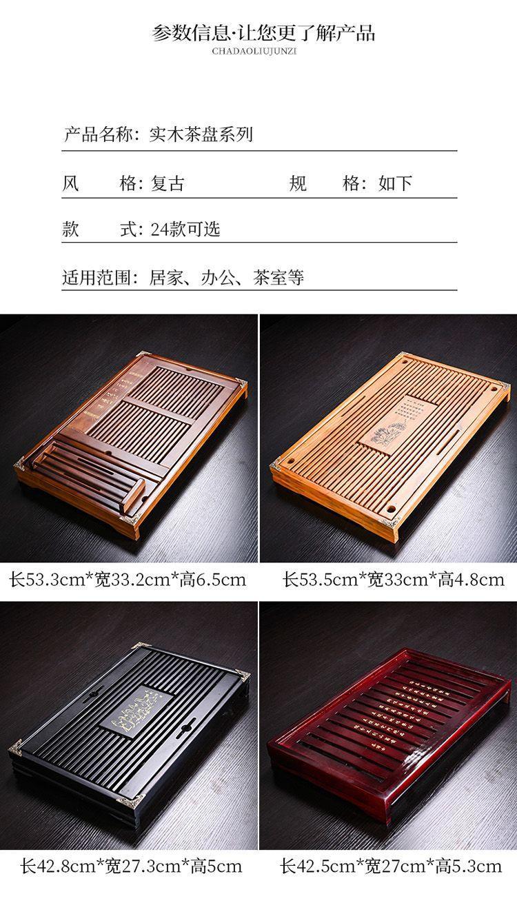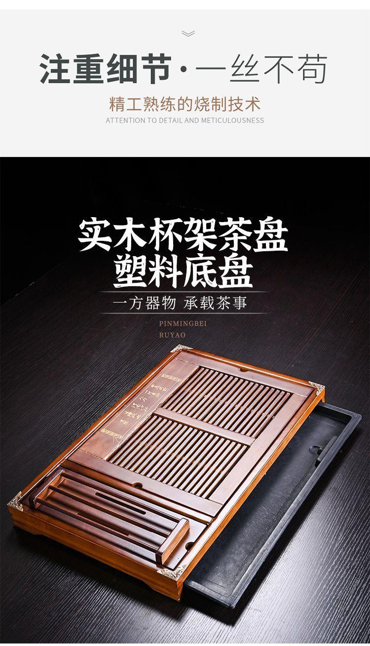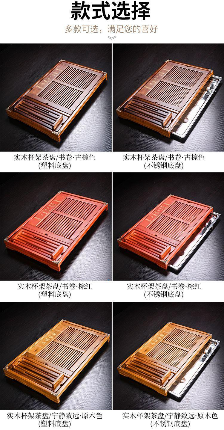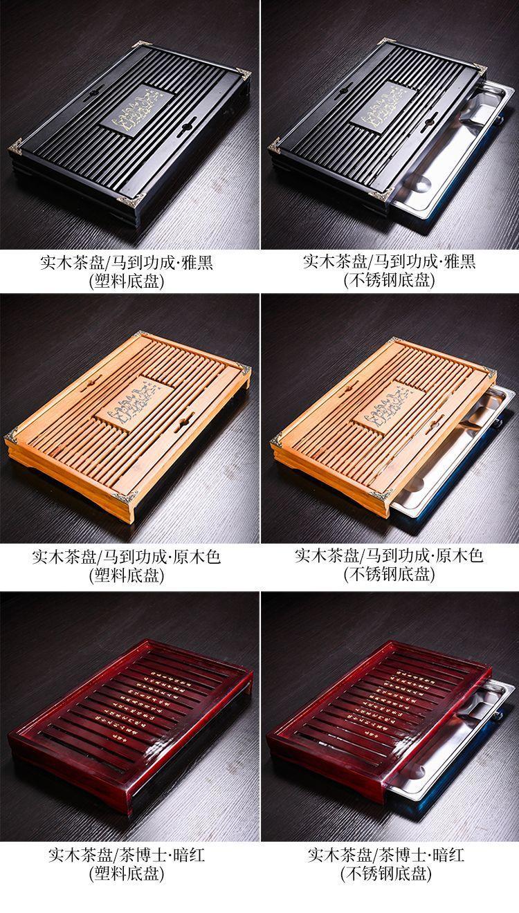 Bandeja de té de madera maciza, juego de té de kung fu para el hogar, juego de bandejas, cajón de bambú simple, mesa de té de almacenamiento y drenaje, juego de té pequeño de mar