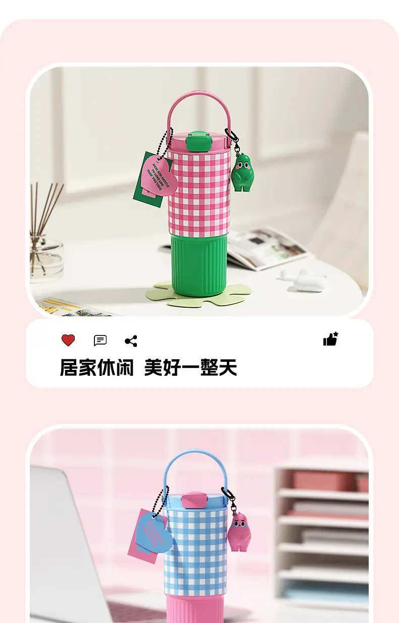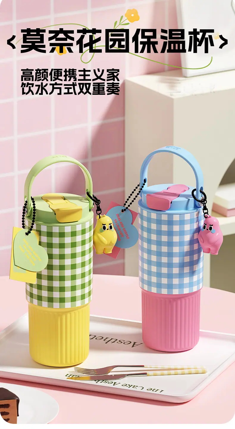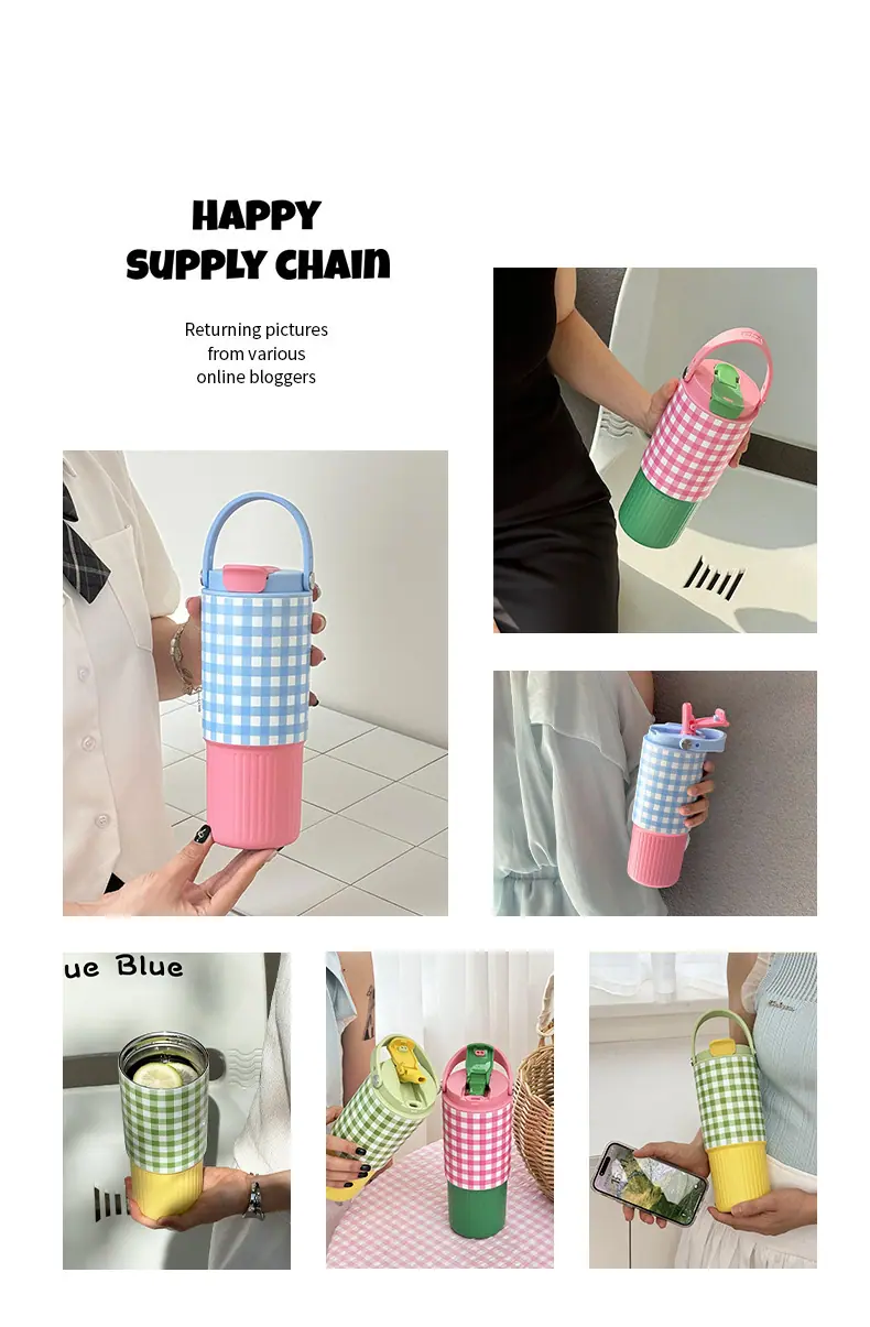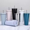 Nueva Taza de Café Transfronteriza Taza Aislada de Acero Inoxidable 316 Portátil para Coche Taza para Hielo con Doble Pajita para Beber Vaso de Agua