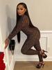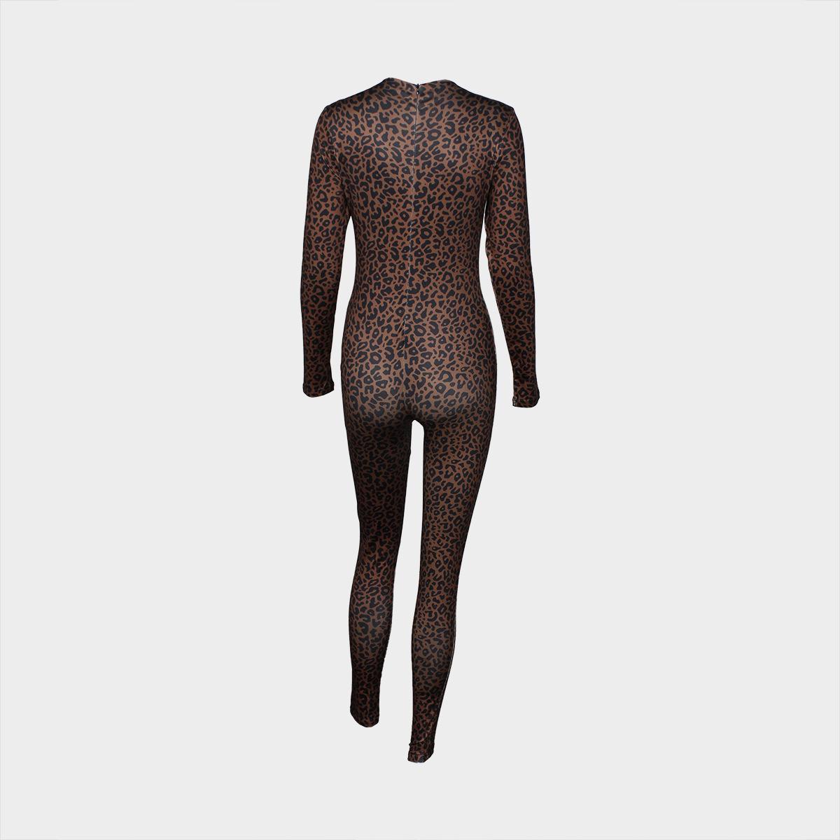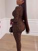 Otoño 2024 Nuevo Moda Transfronteriza Europea y Americana Transfronteriza Stretch Ajustado Sexy Chica Picante Estampado de Leopardo Manga Larga Pantalones Mujer