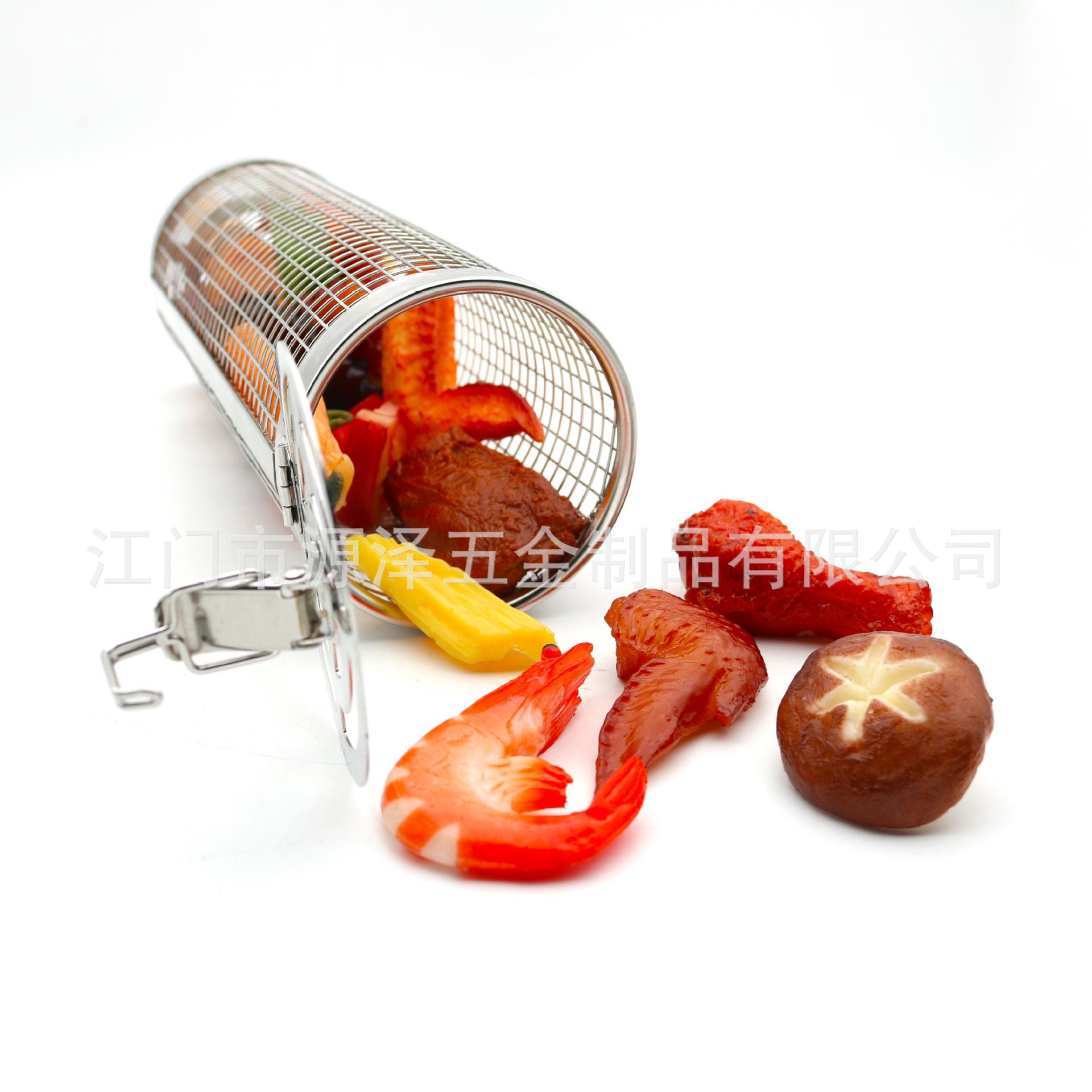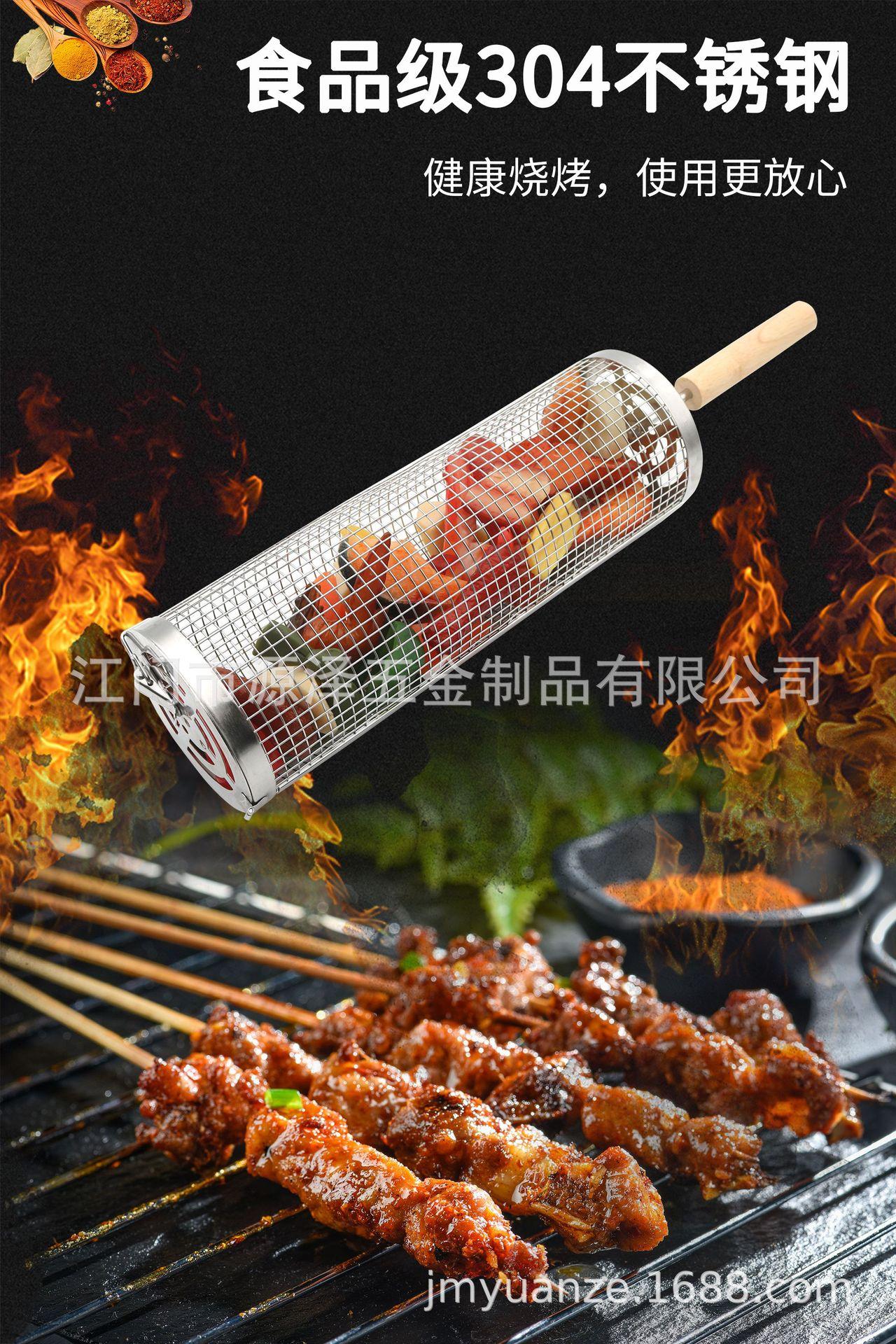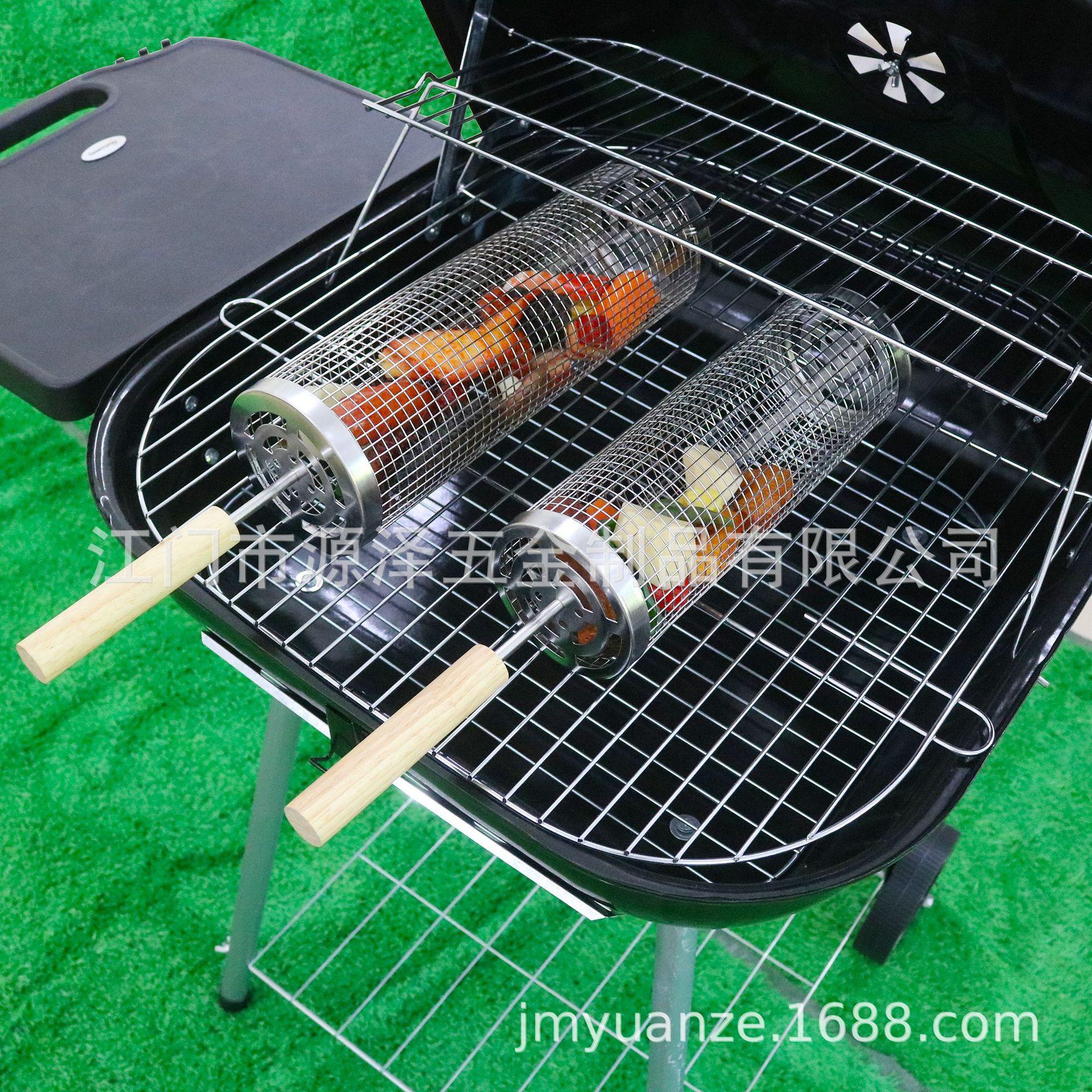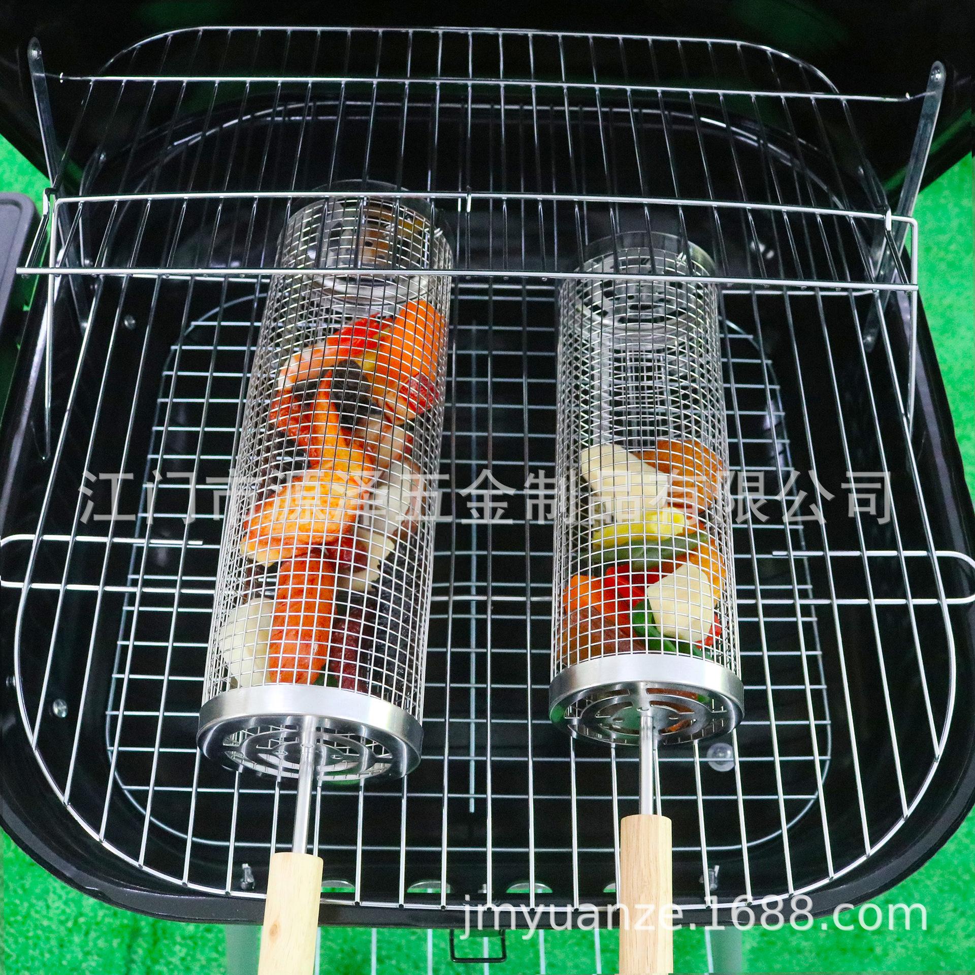 Nuevo Rodillo de Barbacoa Transfronterizo Jaula Acero Inoxidable Grado Alimenticio Tubo Redondo para Barbacoa Parrilla de Barbacoa para Exterior Red de Barbacoa Portátil