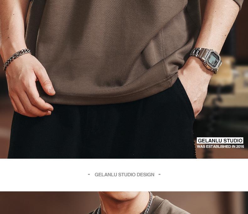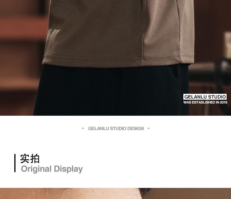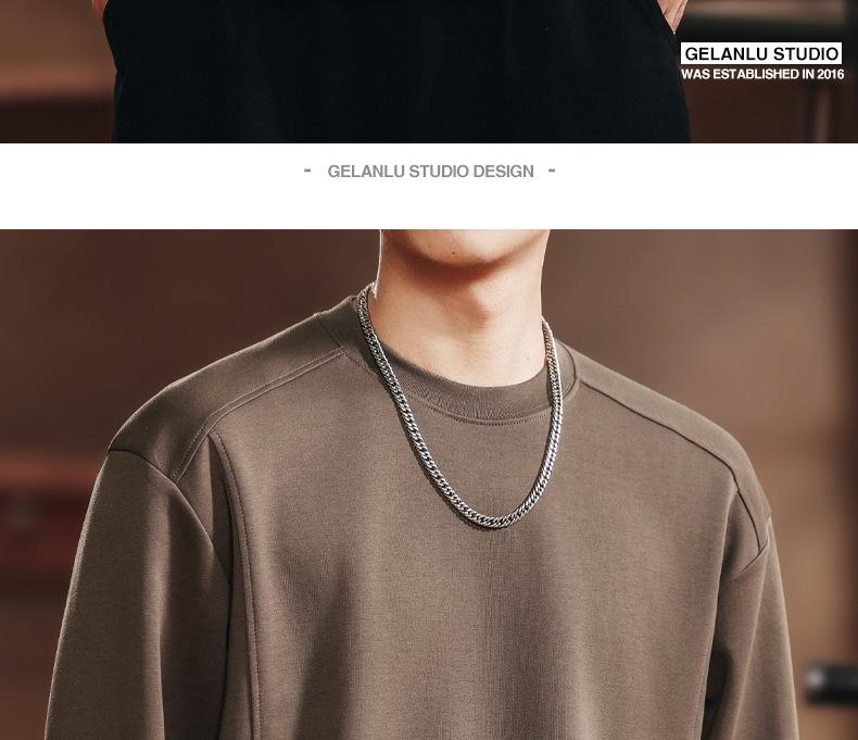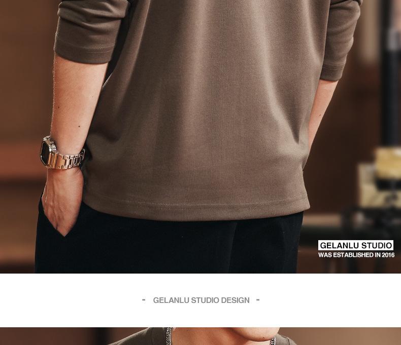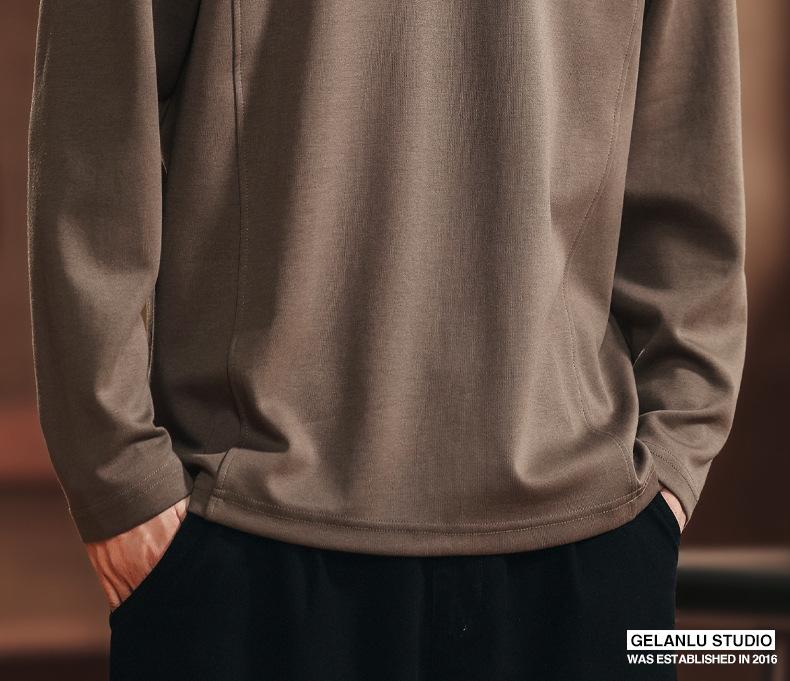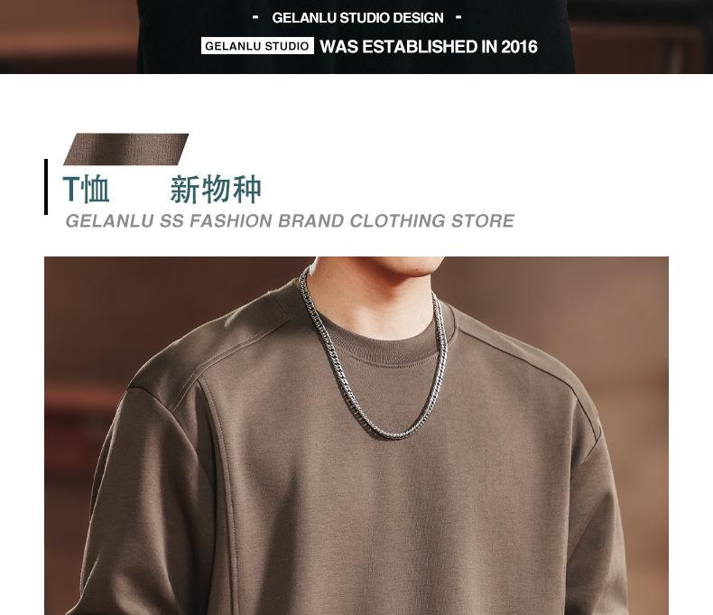 Compra Gelanglu Classy Americano Peso Pesado Empalme de Color Puro Camiseta de Manga Larga para Hombre Retro Suelta Otoño Nuevo Sudadera para Fondo al por mayor en Joom.pro