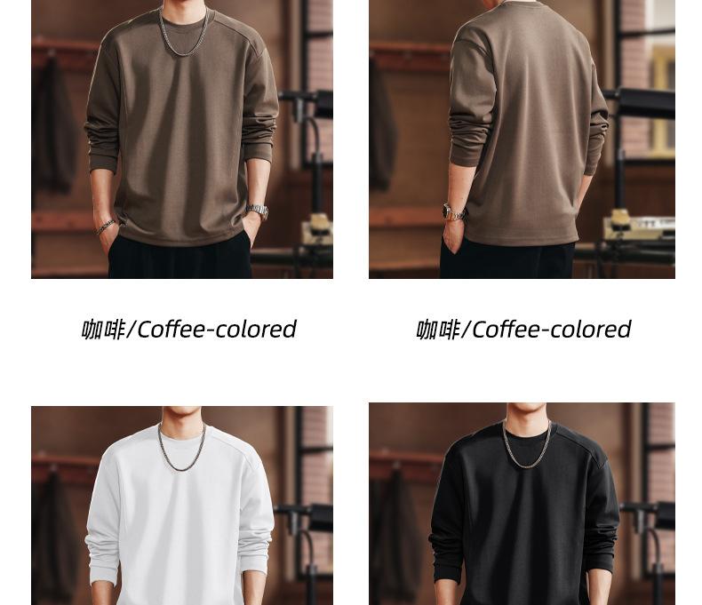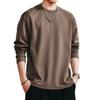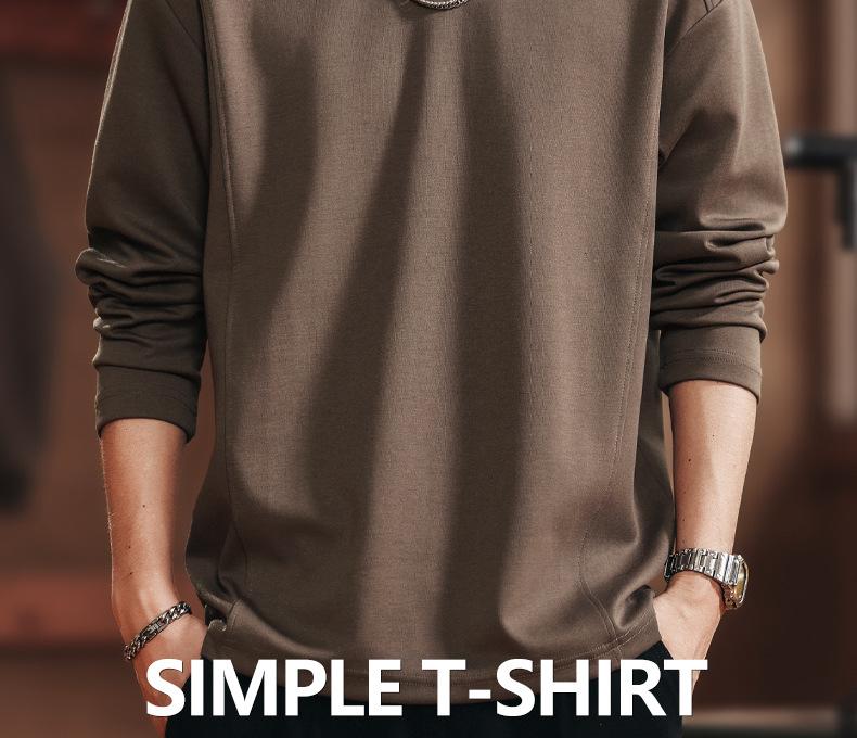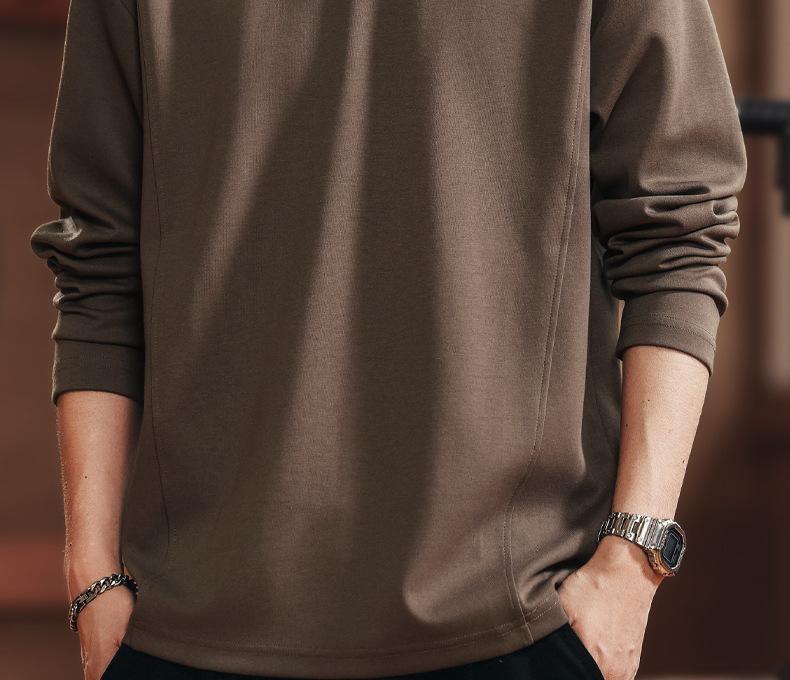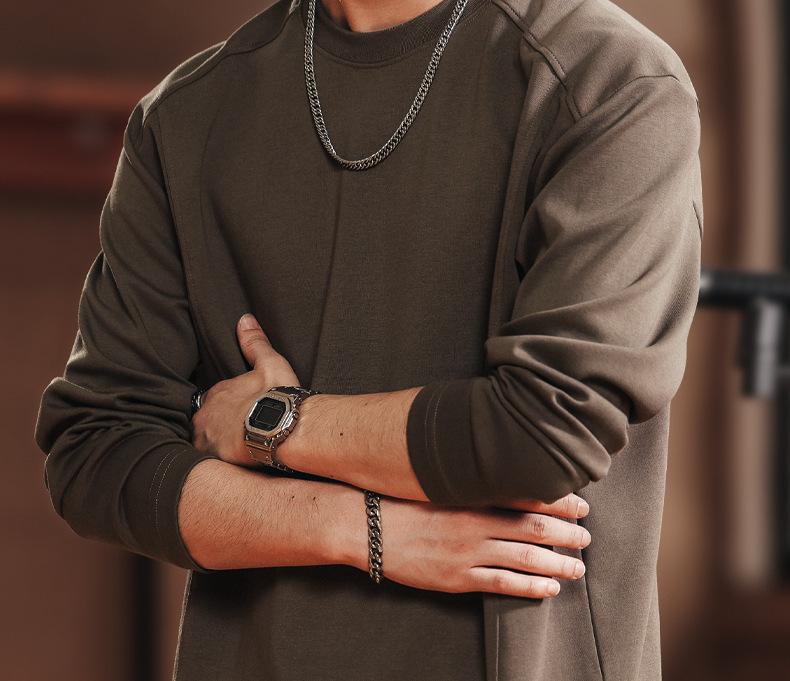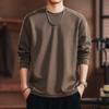 Gelanglu Classy American Heavyweight Empalme de Color Puro Camiseta de Manga Larga para Hombre Retro Holgada Otoño Nueva Sudadera Básica