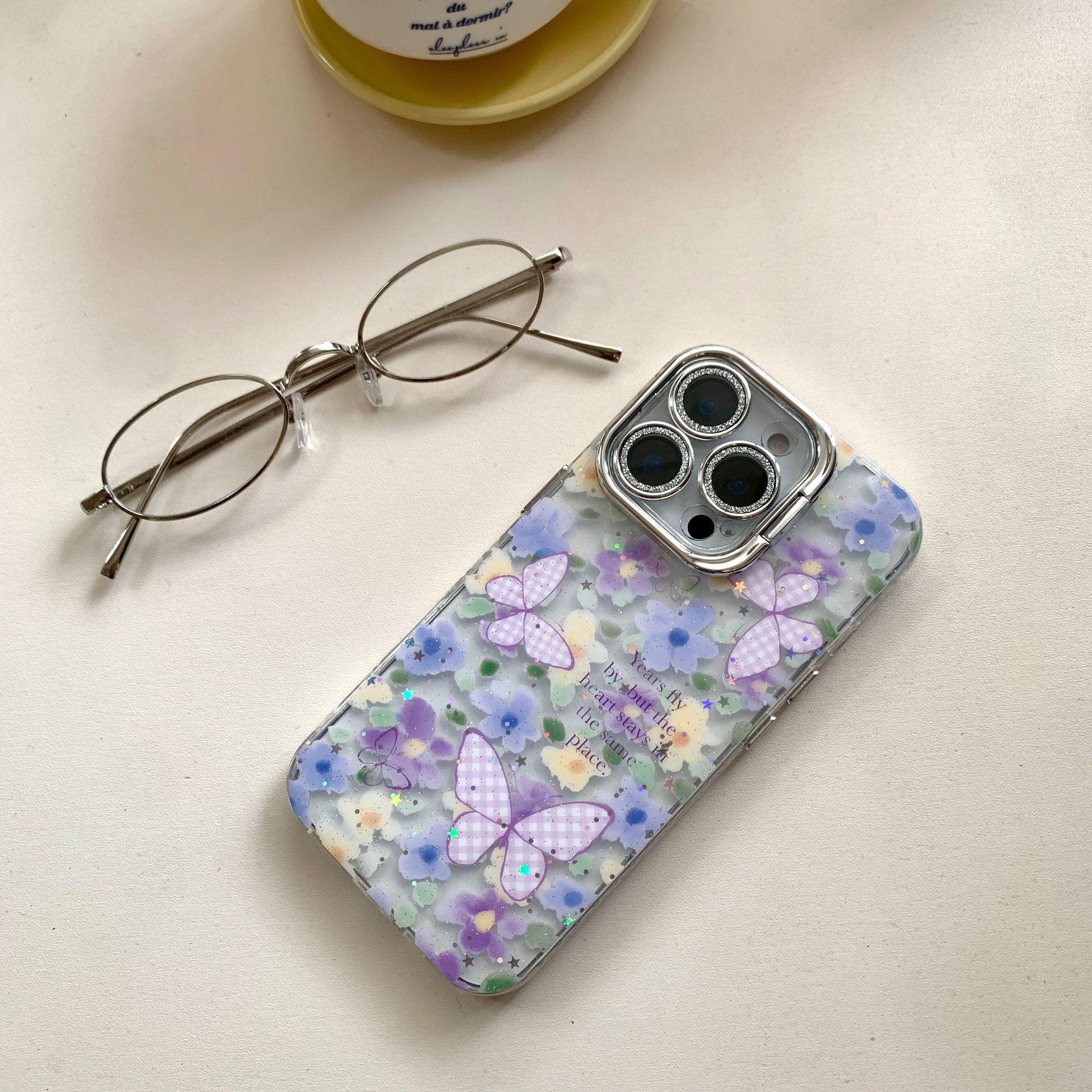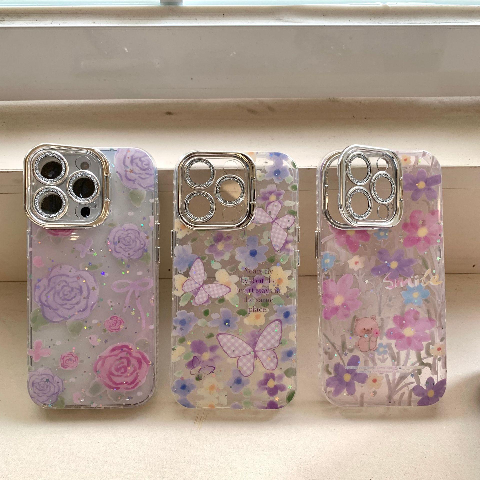 Lujoso Soñador Flor Mariposa Adecuado para Carcasa de Teléfono Móvil Apple 16Promax Soporte de Lente para Iphone15 13/14P