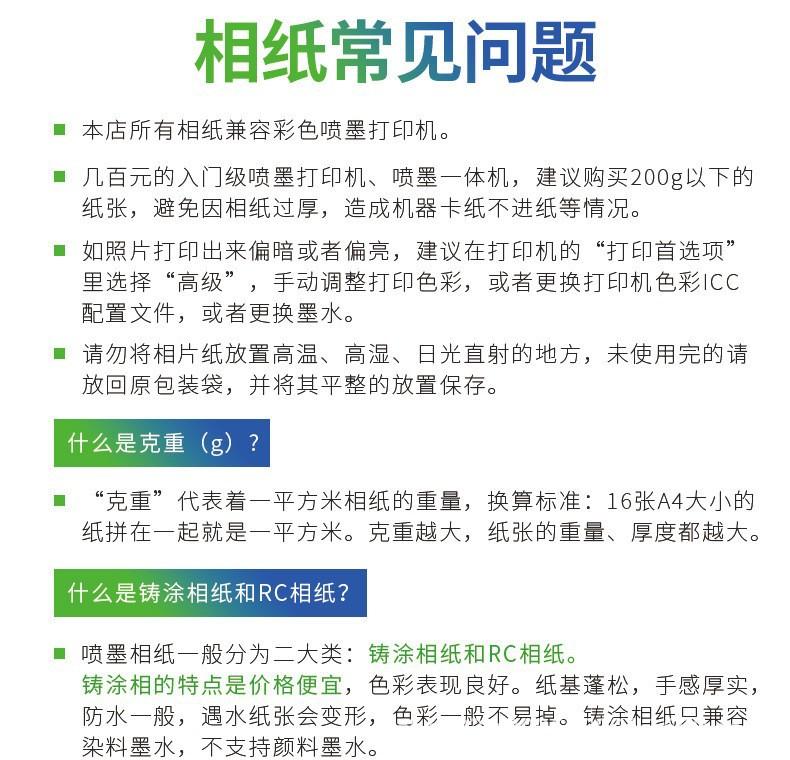 Adecuado para impresora HP, papel fotográfico, papel fotográfico especial, papel fotográfico A4, papel para álbumes de 5, 6, 7, 8 y 10 pulgadas, A6, A3, papel de impresión de inyección de tinta de alto brillo 518, 519, A5.