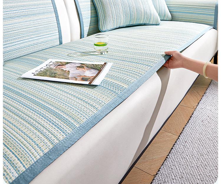 Colchoneta de Ratán de Verano Colchoneta para Sofá Cojín 2025 Nuevo Cojín de Fila Recta Colchoneta Fija Antideslizante de Verano