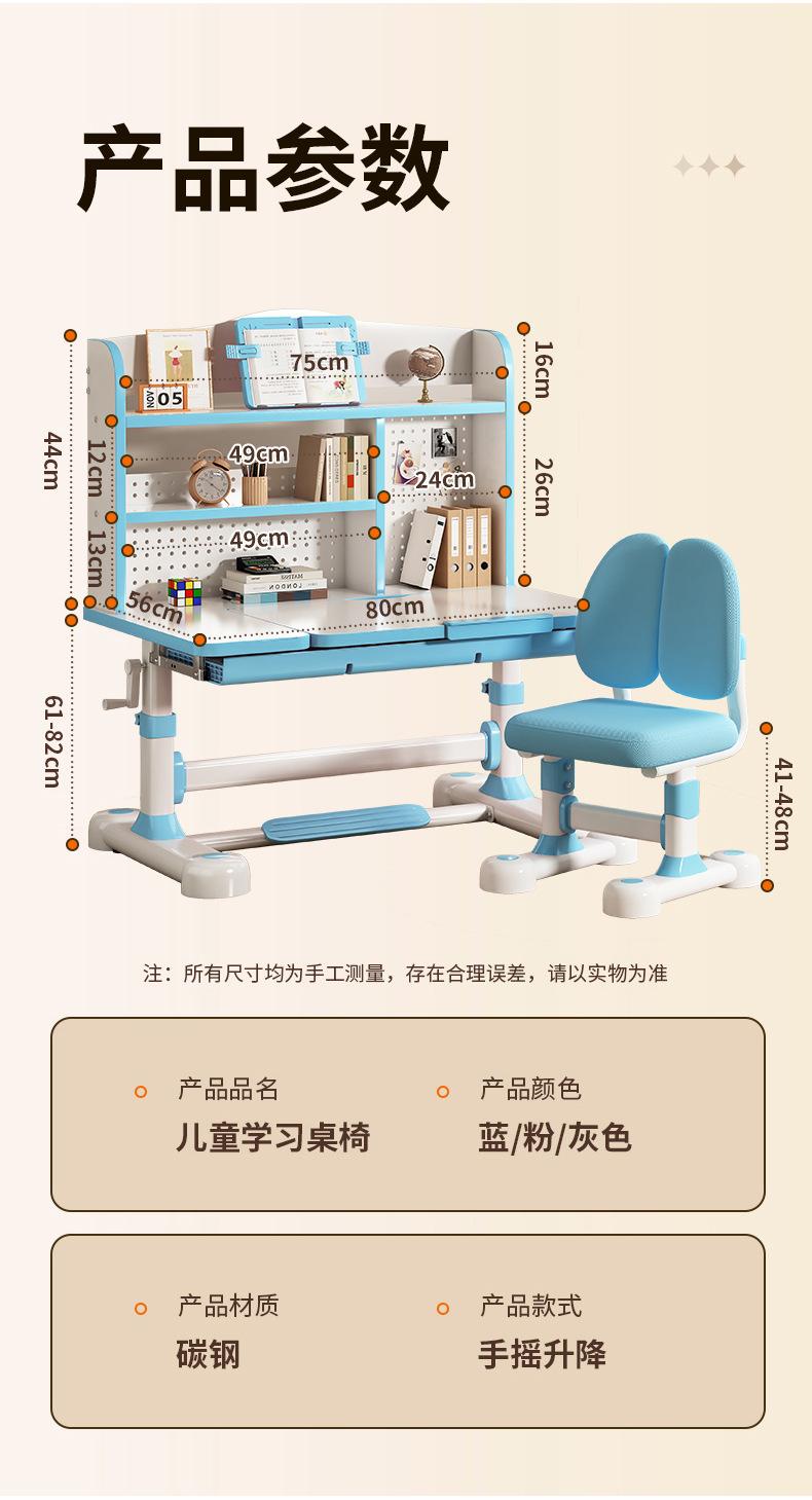 Mesa de Estudio para Niños, Uso Doméstico, Elevación con Manivela, Escritorio para Clase de Entrenamiento de Tutoría para Estudiantes de Primaria, Escritorio y Silla Escolar