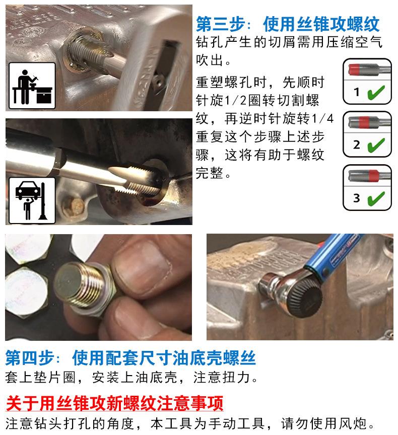 Herramienta especial para la reparación de roscas del cárter de aceite, tornillo de drenaje de aceite, diente deslizante, tornillo inferior de aceite, para el drenaje de aceite del cárter de aceite de automóvil