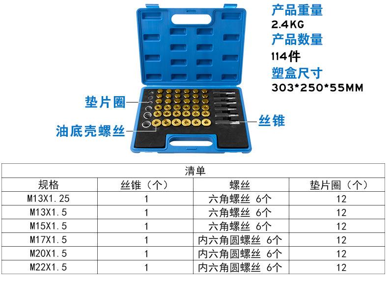 114 pieces recommended, 64-piece set of common specifications, M13x1.25, M13x1.5, M15x1.5, M17x1.5, M20x1.5, M22x1.5