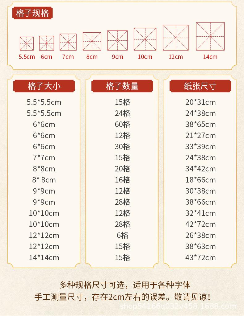 Raw edge paper 28 grid calligraphy special paper beginner rice grid