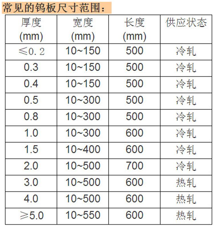 0.5 | 9~50 | 3~4 | 20~70 | Podemos personalizar el procesamiento según sus dibujos o tamaños de muestra. Además, nuestra empresa produce en masa tubos, barras, placas, lingotes, crisoles de tungsteno puro y diversos productos con formas especiales en varias especificaciones. |