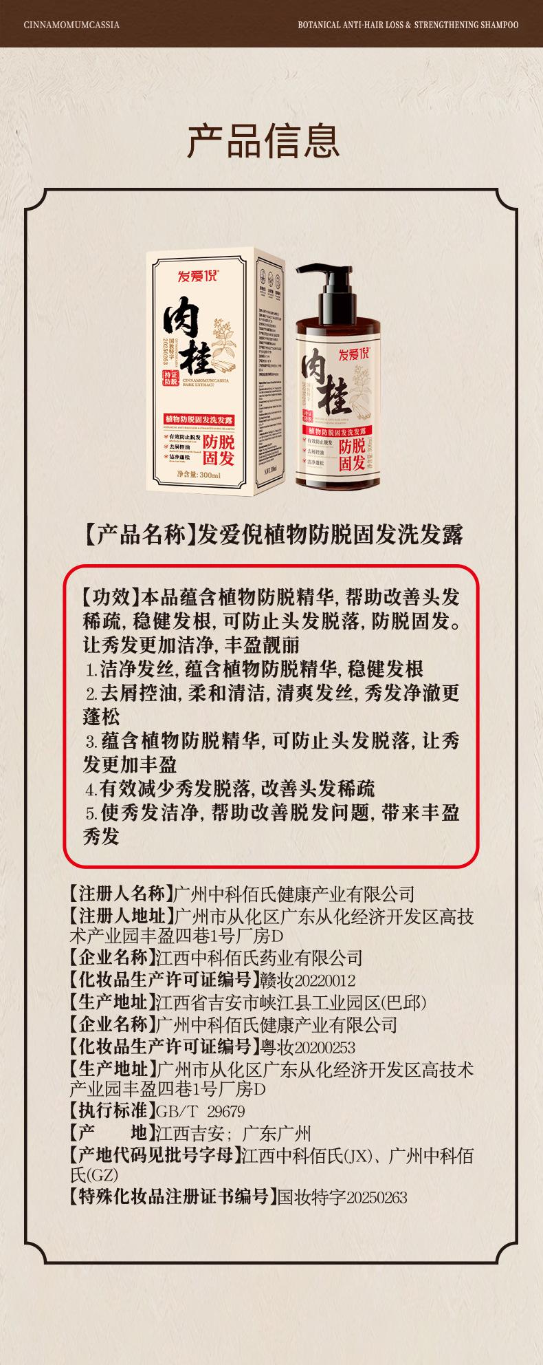 Fa'ai Ni Champú Anticaída y Fortalecedor del Cabello con Canela 300ml Control de Grasa para el Crecimiento del Cabello Suavizante Eliminación de Grasa Champú Fortalecedor Venta al por Mayor
