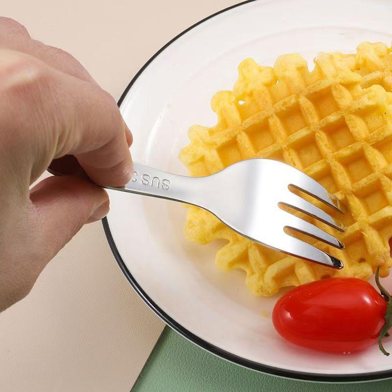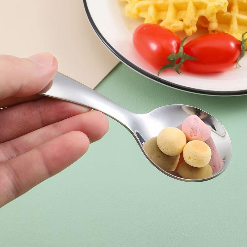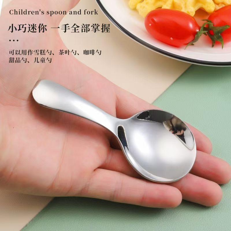 Juego de cubiertos portátiles de acero inoxidable Mini cubiertos para niños Cuchara de mango corto Tenedor Hogar Bebé Entrenamiento para comer Cuchara