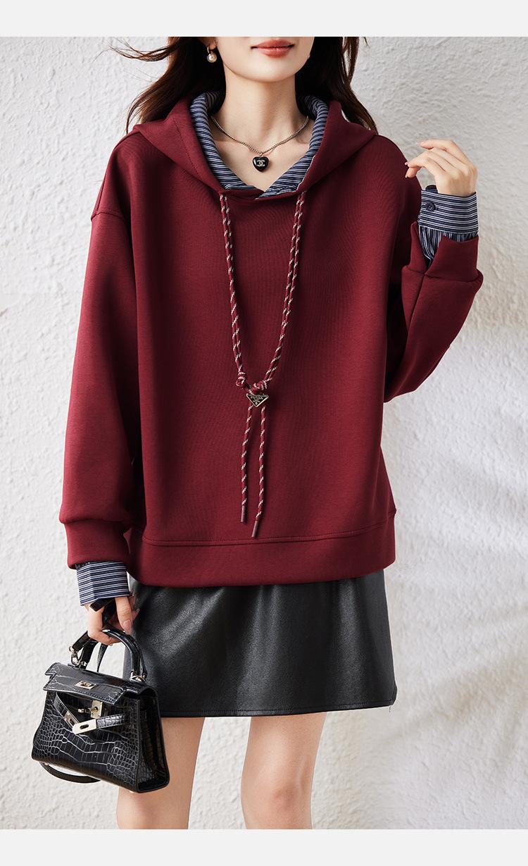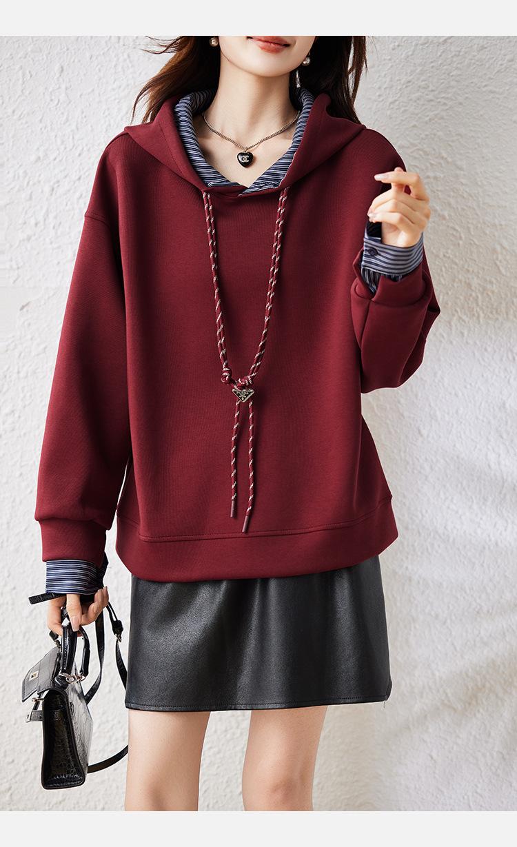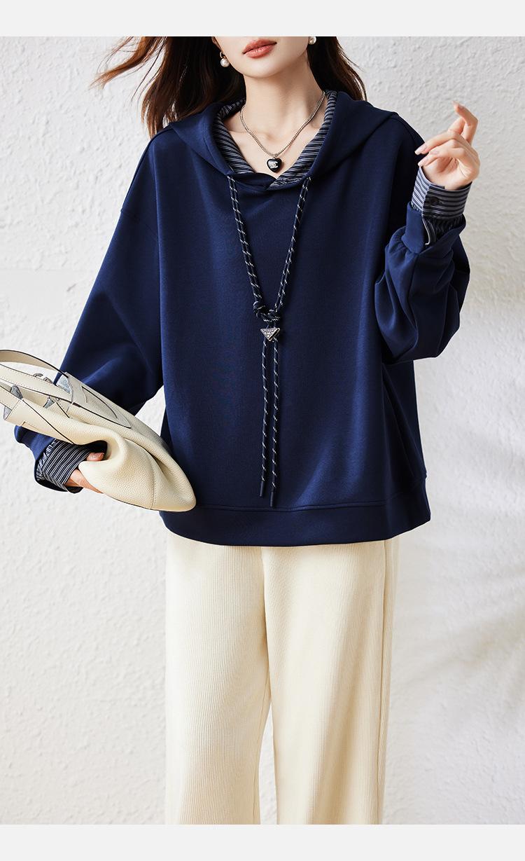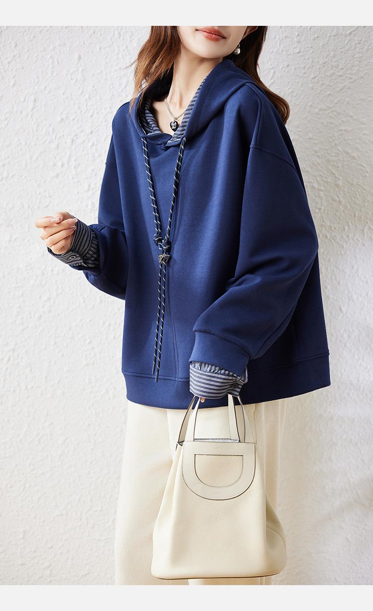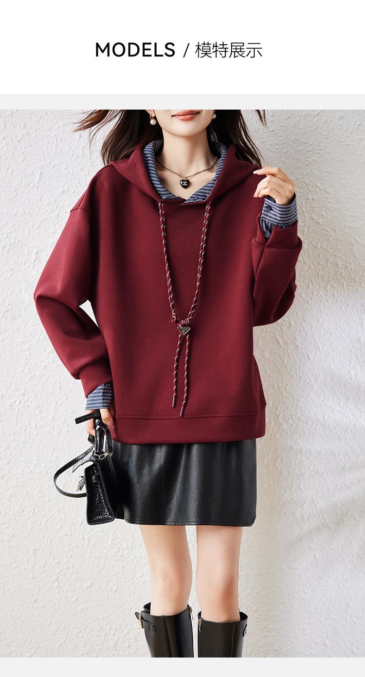 Foto Real de Sudadera con Capucha y Cordón de Manga Larga para Mujer Otoño 2025 Moda Coreana Casual Holgada Versátil Top Trendy