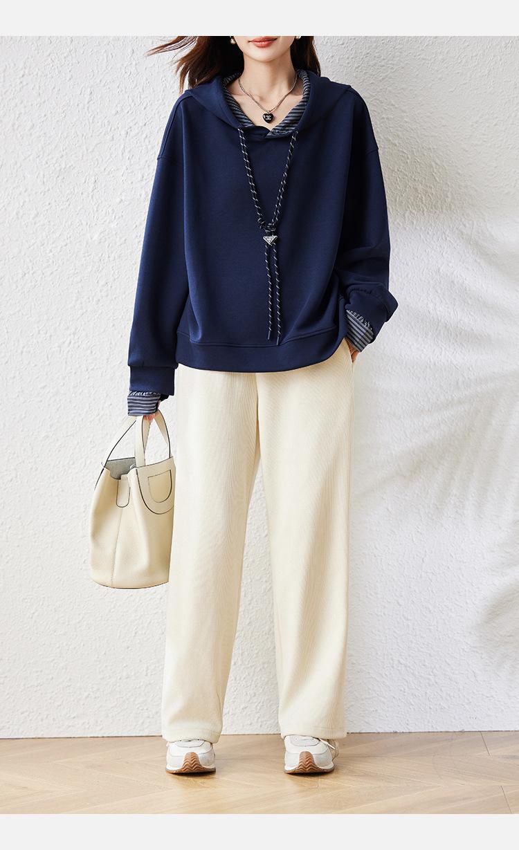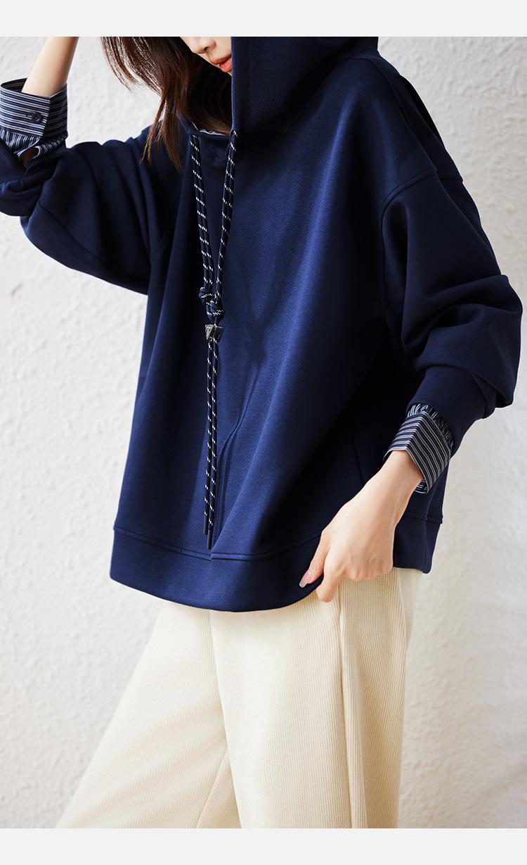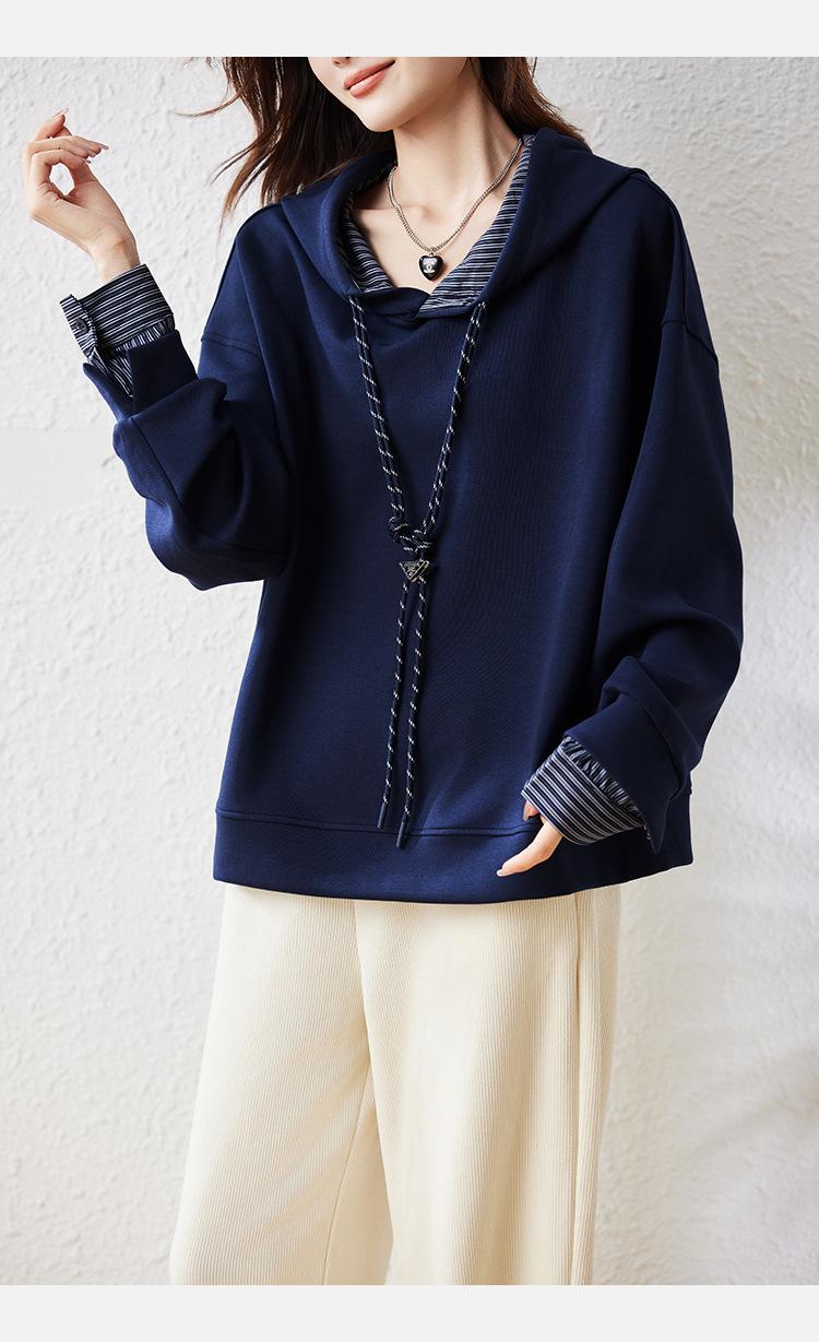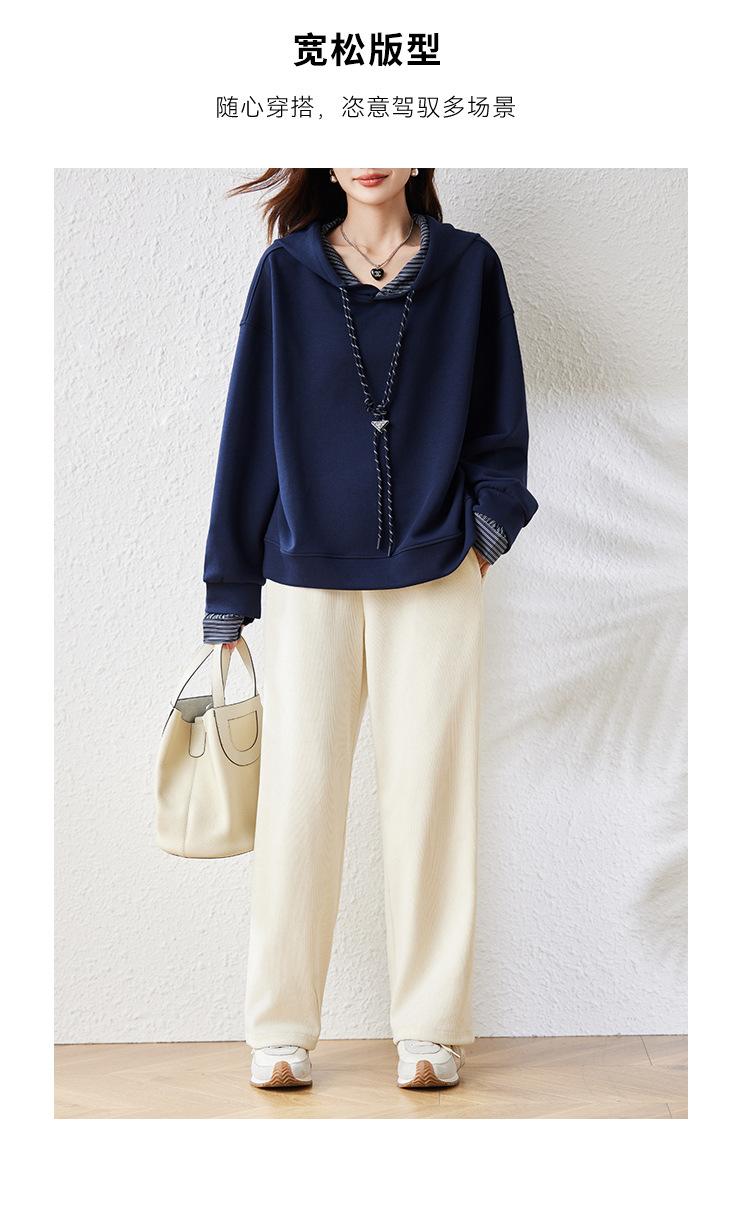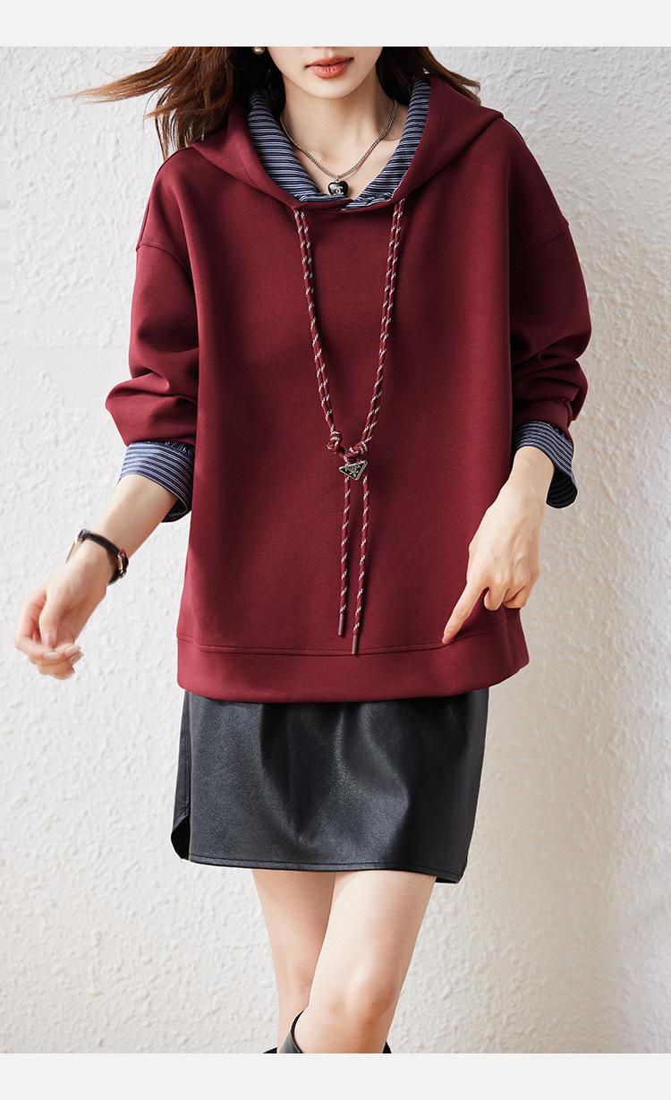 Foto Real de Sudadera con Capucha y Cordón de Manga Larga para Mujer Otoño 2025 Moda Coreana Casual Holgada Versátil Top Trendy