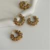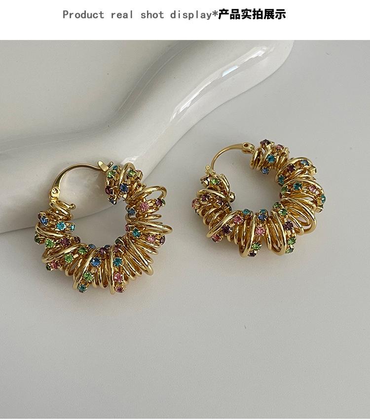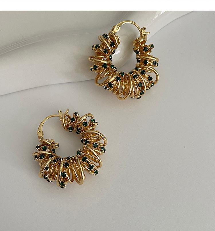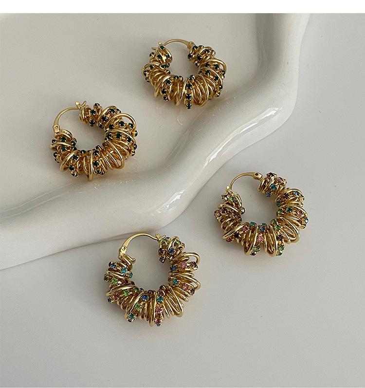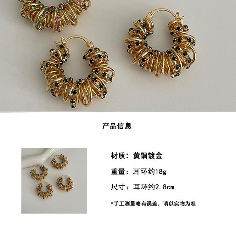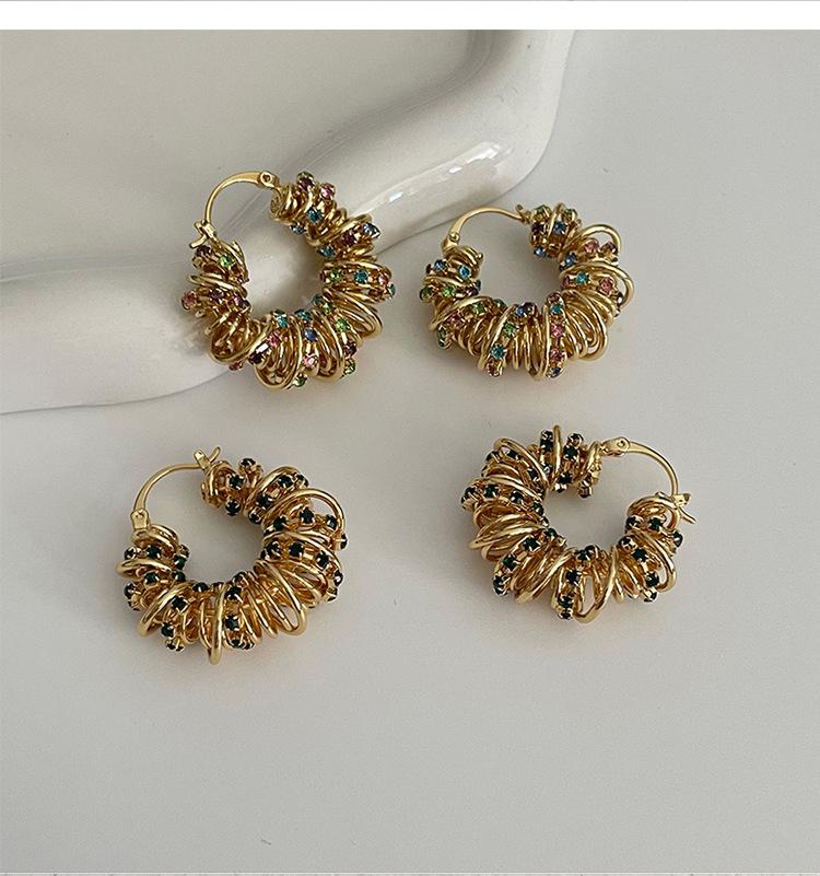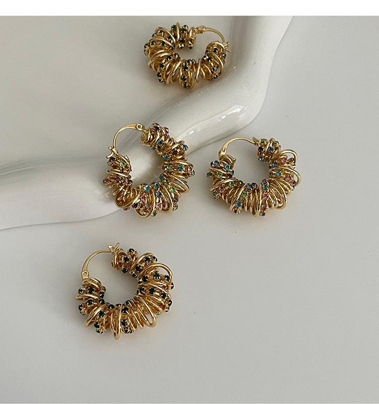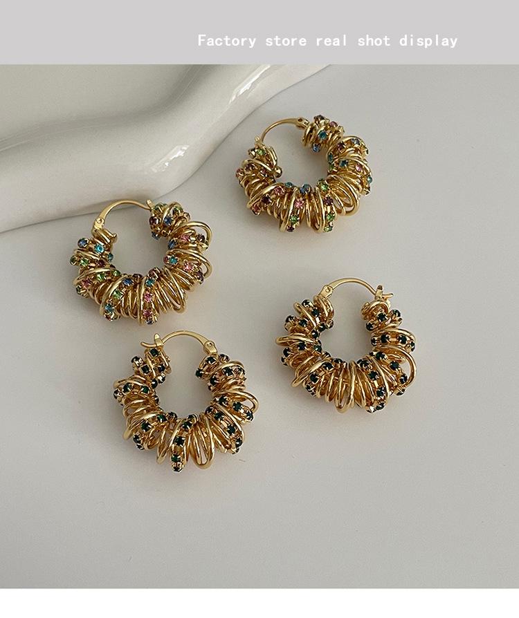 Aretes Trenzados Huecos Tejido Francés Lujo Ligero Nicho Diamante Completo Personalidad Aros para Oreja Puños para Oreja Moda Temperamento Aretes de Círculo