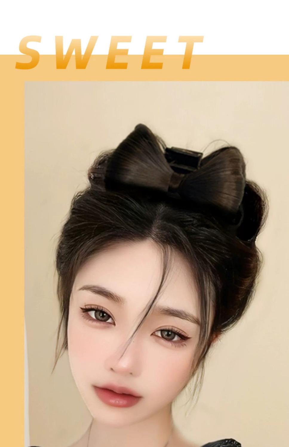 Pinza de garra para moño de lazo simulación de cabello recogido alto y bajo estilo princesa dulce postizo moño integrado pinza de garra peluca