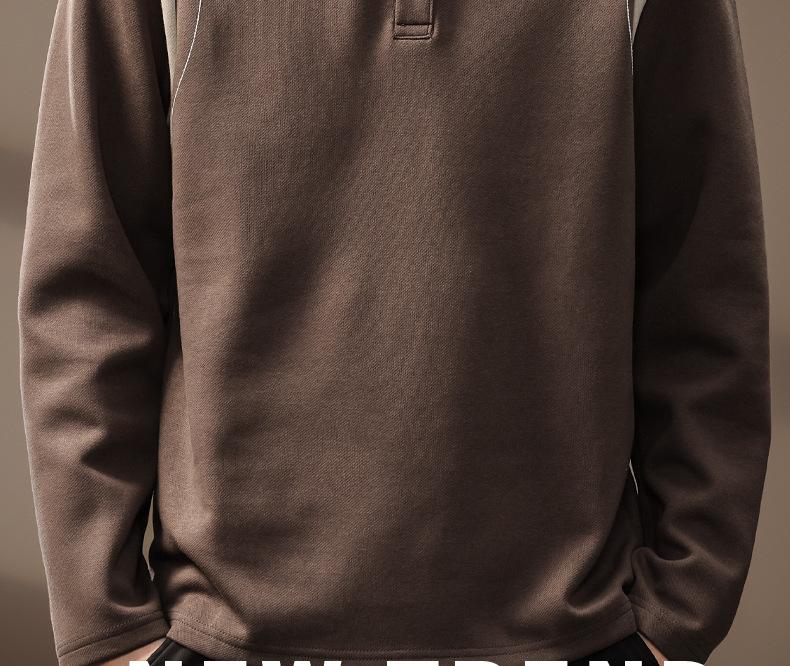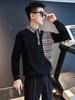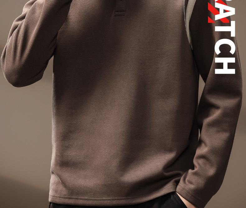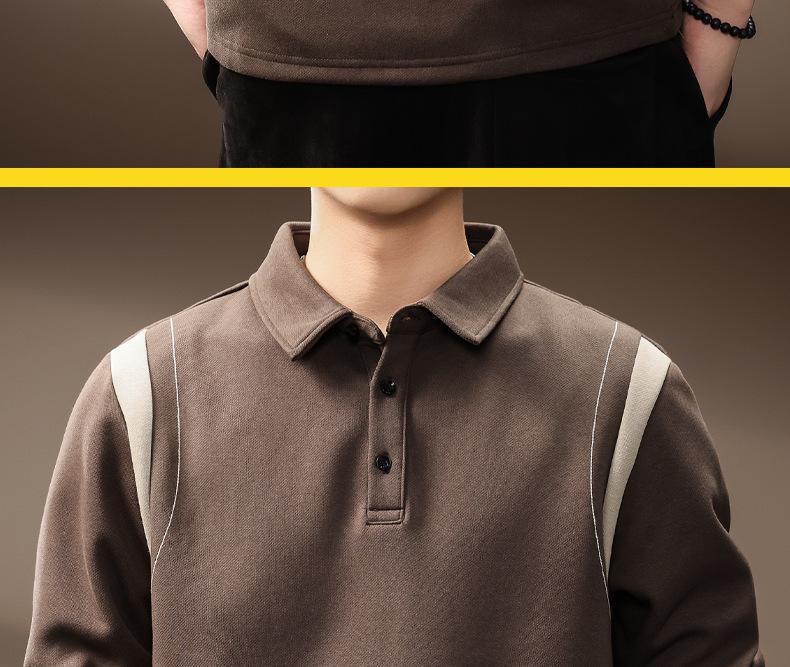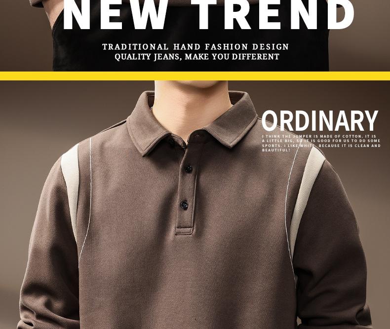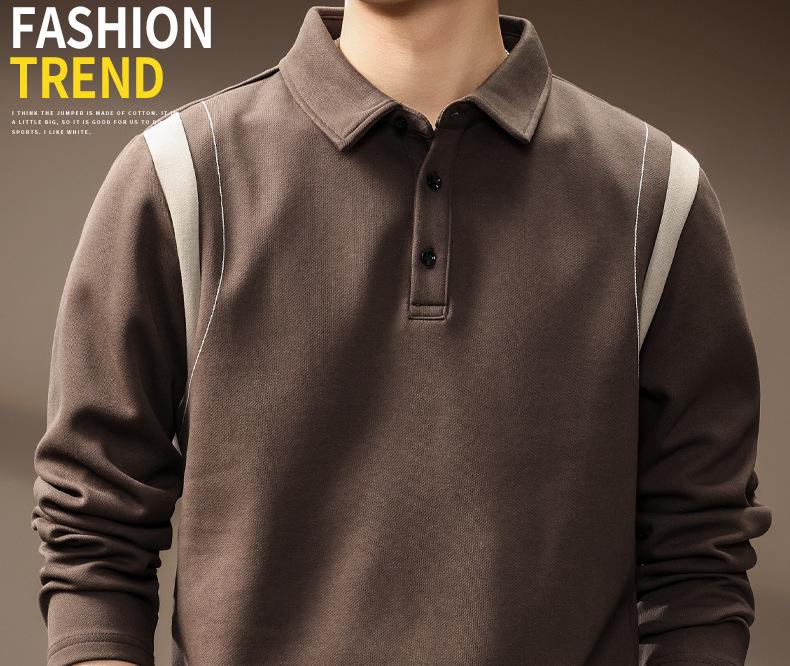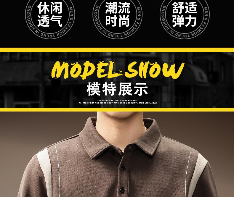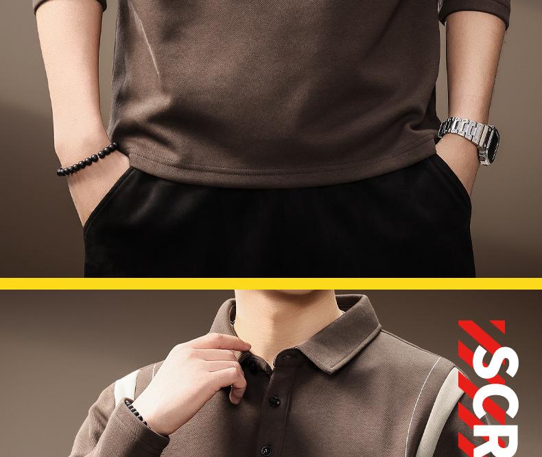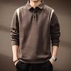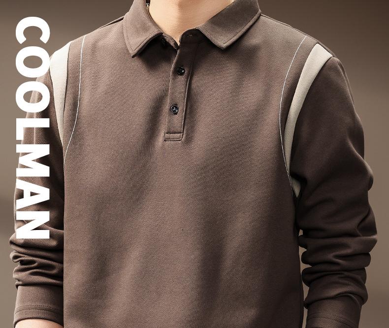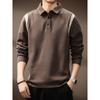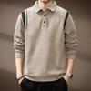 Polo de manga larga casual de alta calidad con cuello vuelto, patchwork de bloques de color, para hombre, nuevo otoño 2025, top versátil de moda
