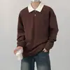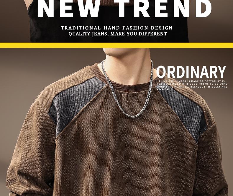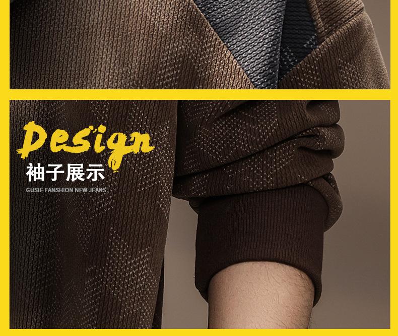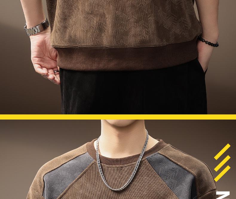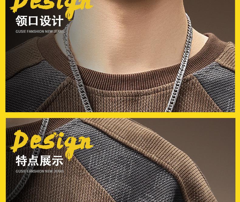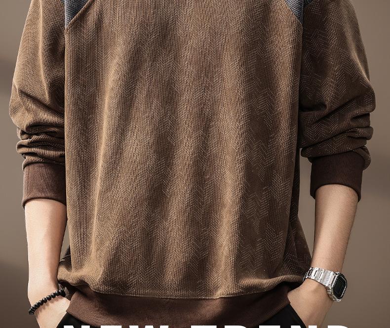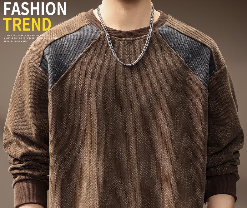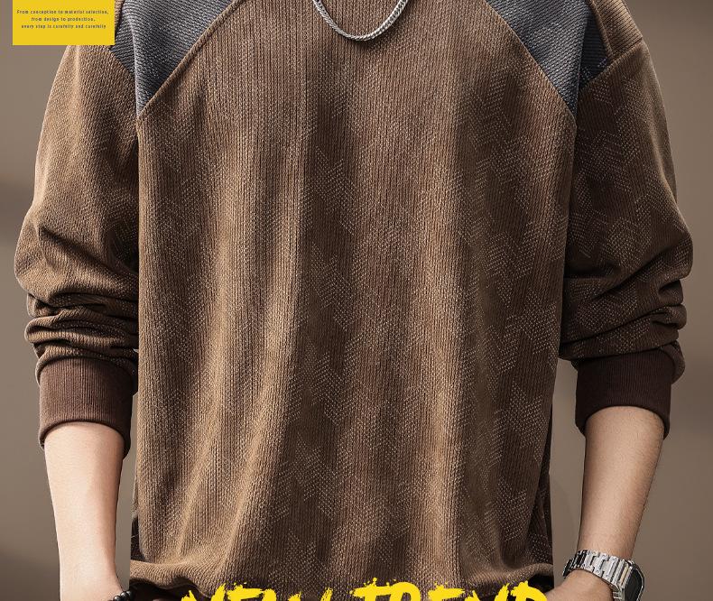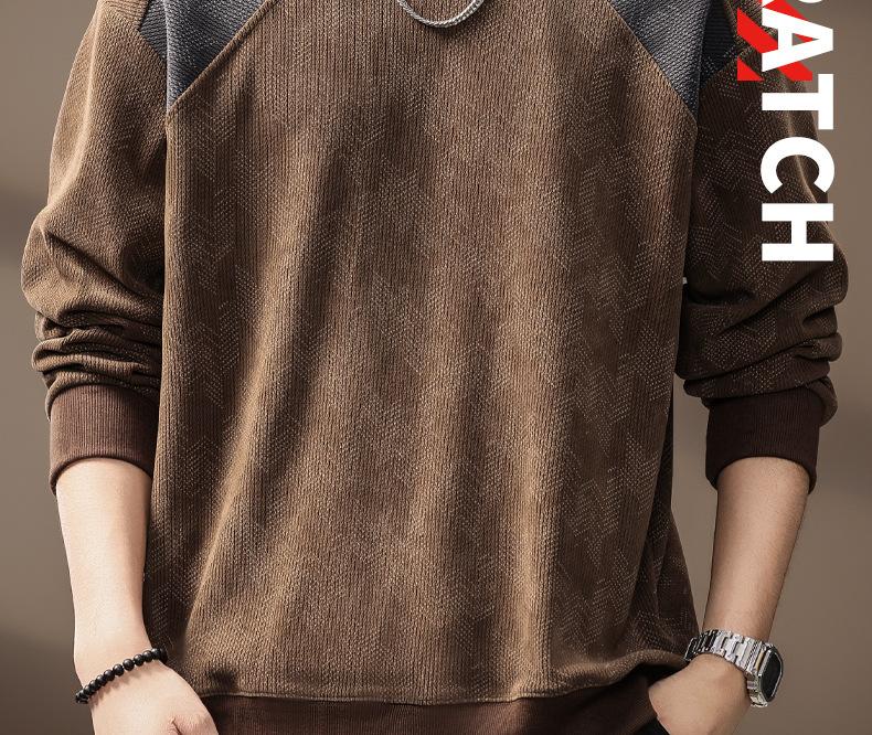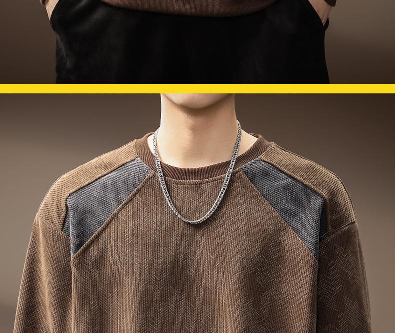 Sudadera pesada patchwork color block de marca estadounidense de alta gama y tendencia para hombre, otoño, nueva, retro, texturizada, holgada, versátil