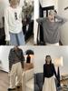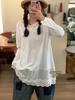 Nueva Primavera y Otoño Cuello Redondo Color Sólido Jersey Manga Larga Algodón Camiseta con Dobladillo de Encaje Suelta Versátil Casual Capa Base