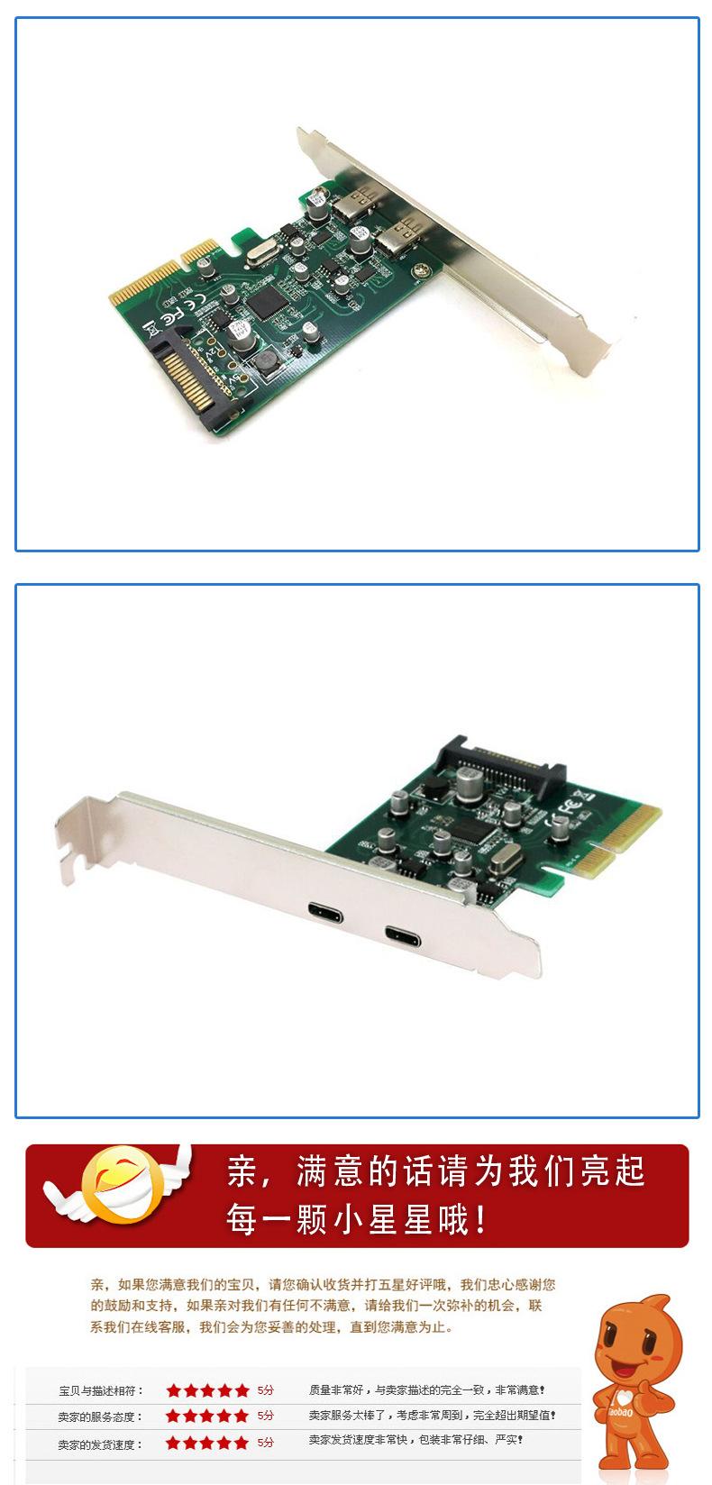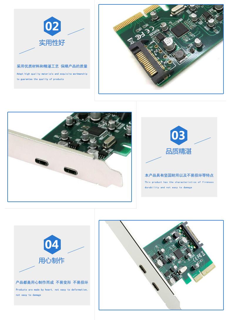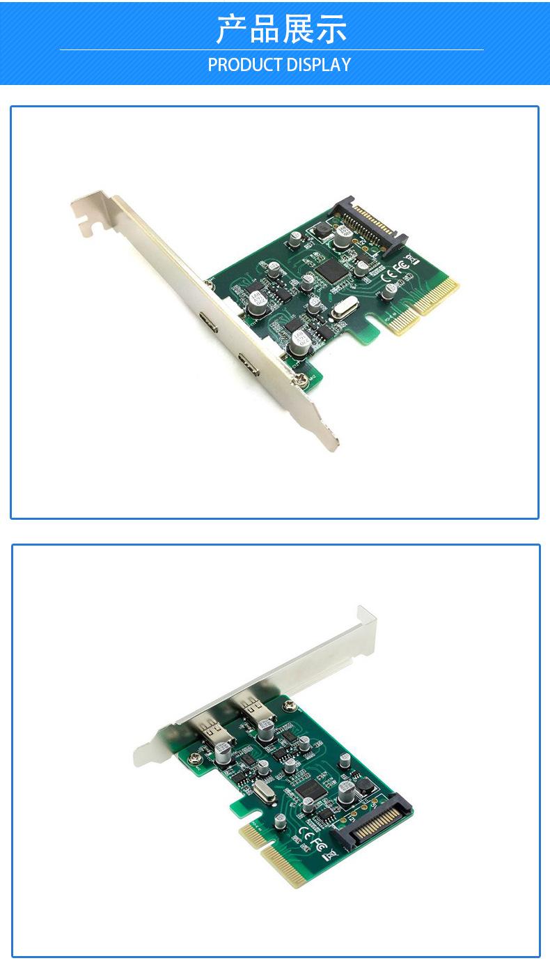 Este producto puede convertir la interfaz de transferencia de datos de alta velocidad PCI-E de la computadora en 2 interfaces de transferencia de datos de alta velocidad USB3.1 Tipo-C, y es compatible con dispositivos USB3.0, USB2.0 y USB1.1. La velocidad de USB3.1 es el doble que la de USB3.0, y es muy superior a la velocidad de USB2.0. Soporta la función de intercambio en caliente de dispositivos USB y está fabricado especialmente para proporcionar tasas más rápidas y altas para computadoras personales, productos electrónicos de consumo y dispositivos de comunicación.
