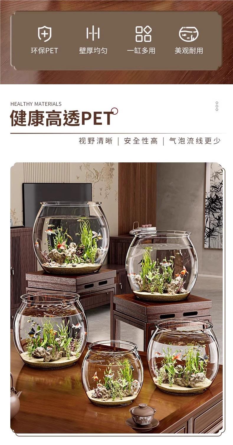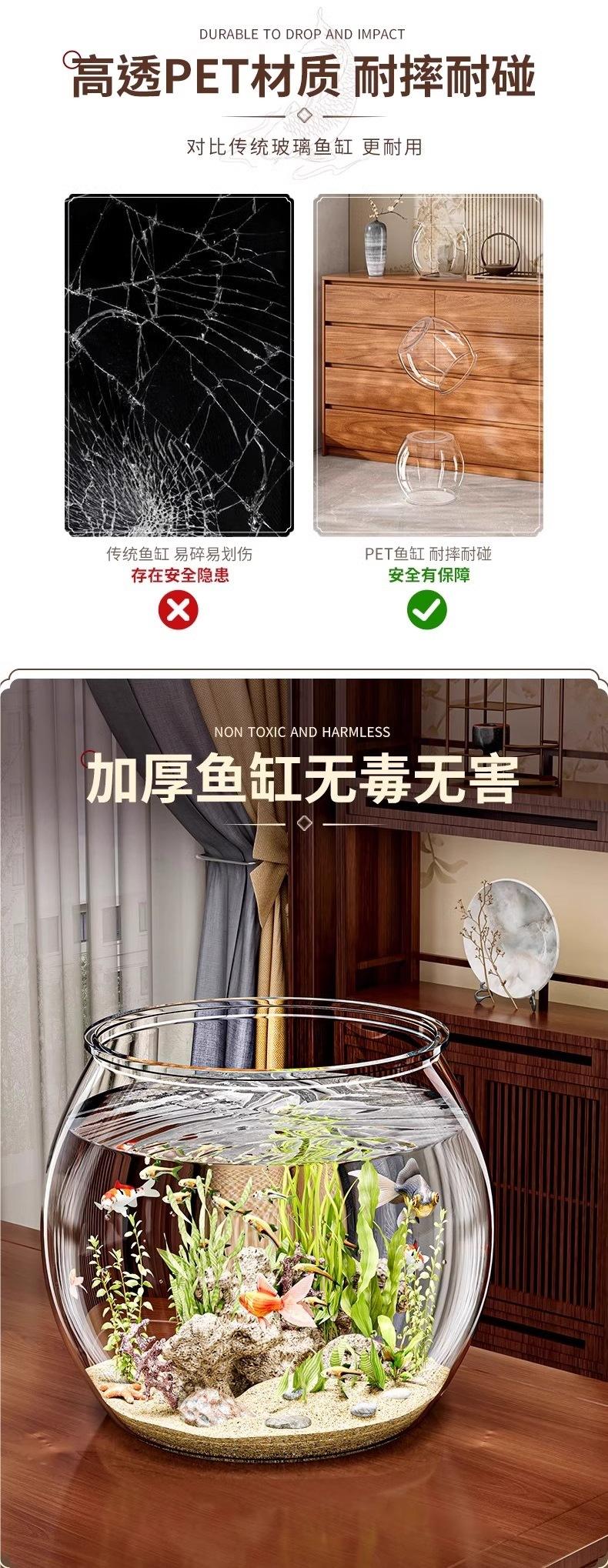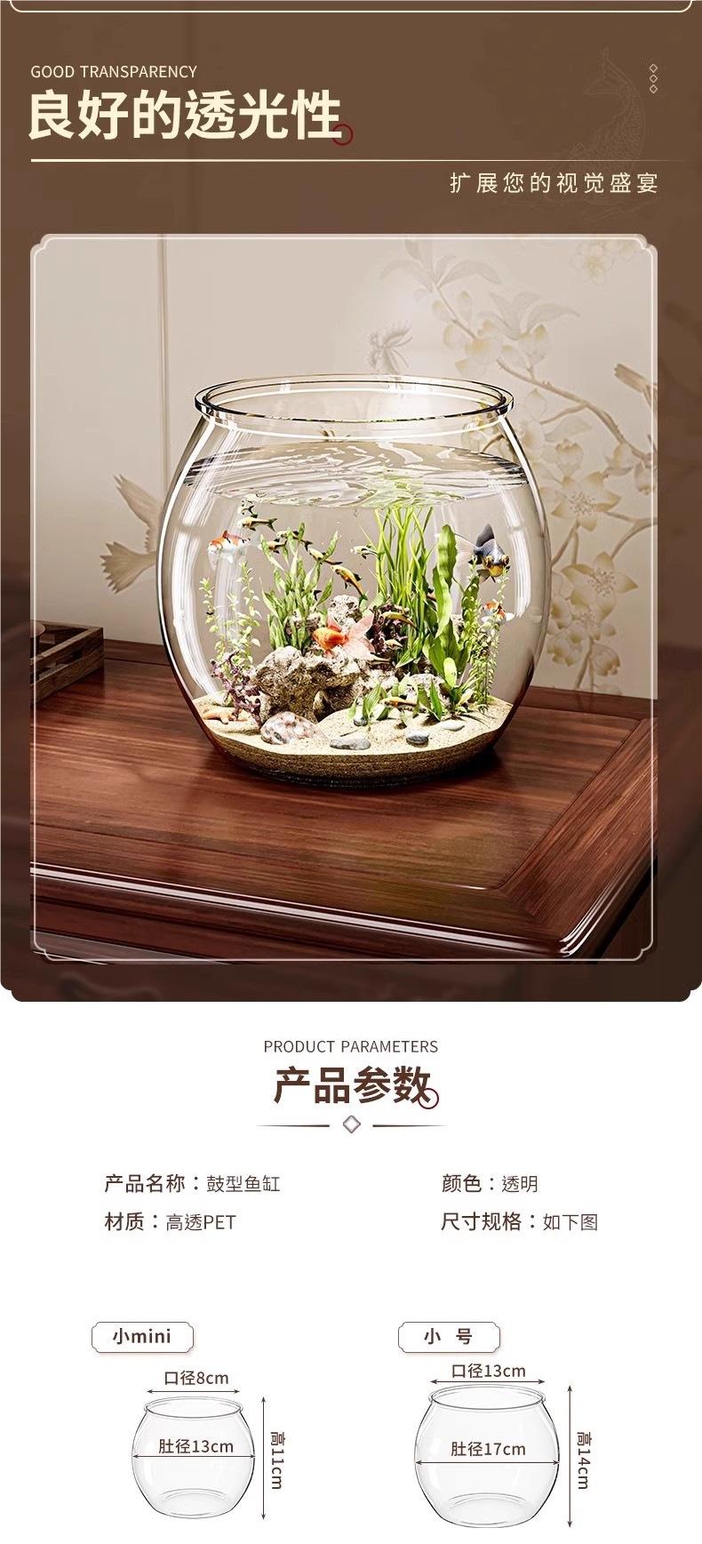 Acuario Redondo de Plástico de Una Pieza Anticaída y Resistente a Roturas Alta Transparencia Imitación Vidrio Sala de Estar Escritorio Ecológico Tanque Pequeño