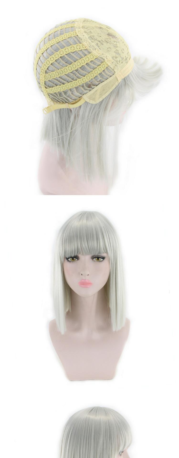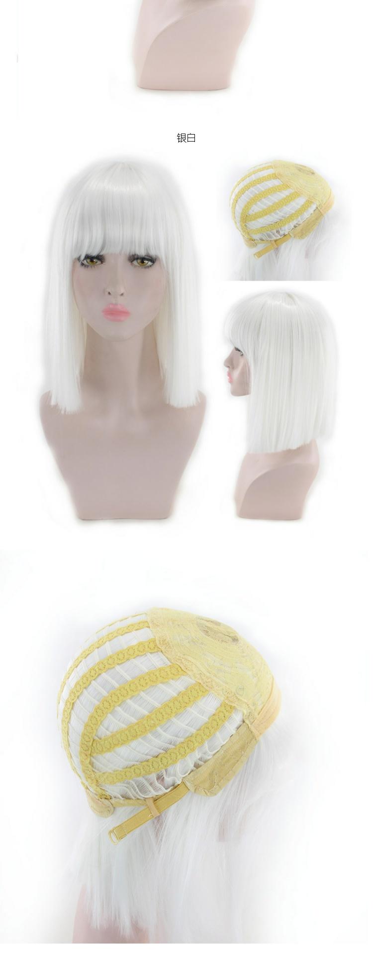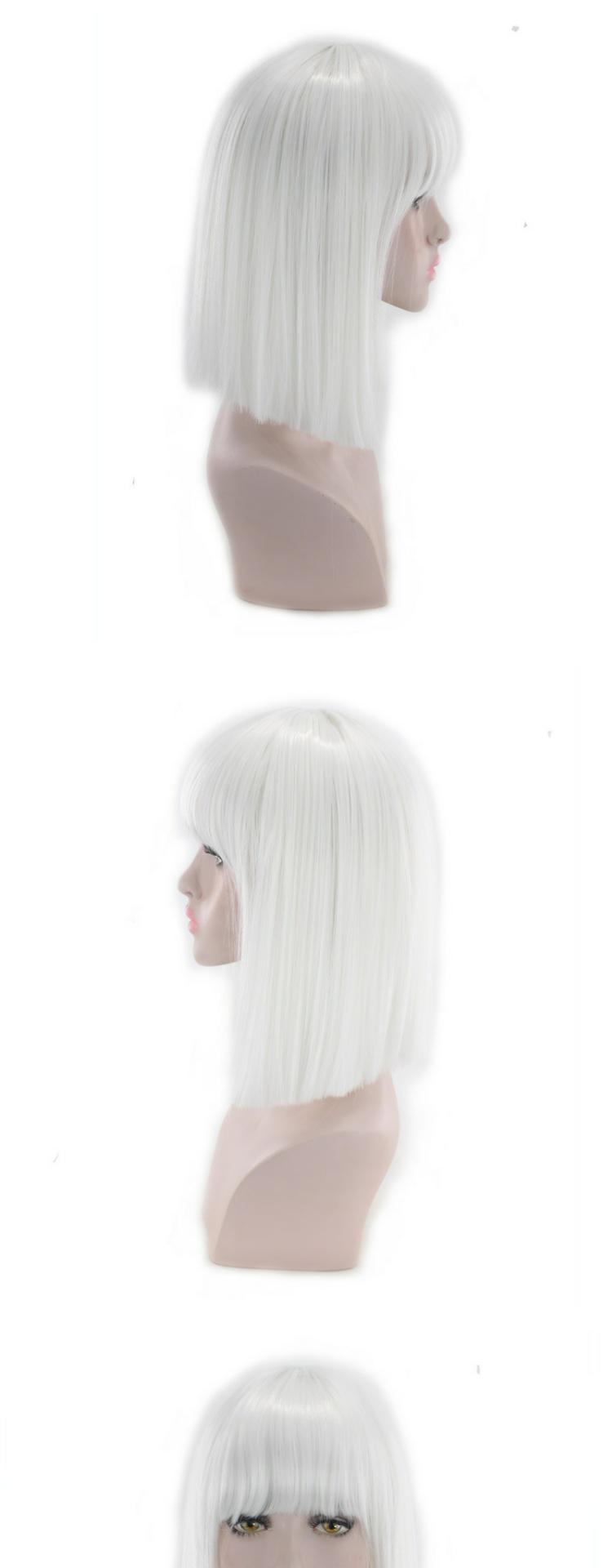 Gaga Peluca de Mujer hasta los Hombros Moda Flequillo Recto Simulación Personalidad Larga Bar Show de Baile Accesorios para Sesión de Fotos Blanco