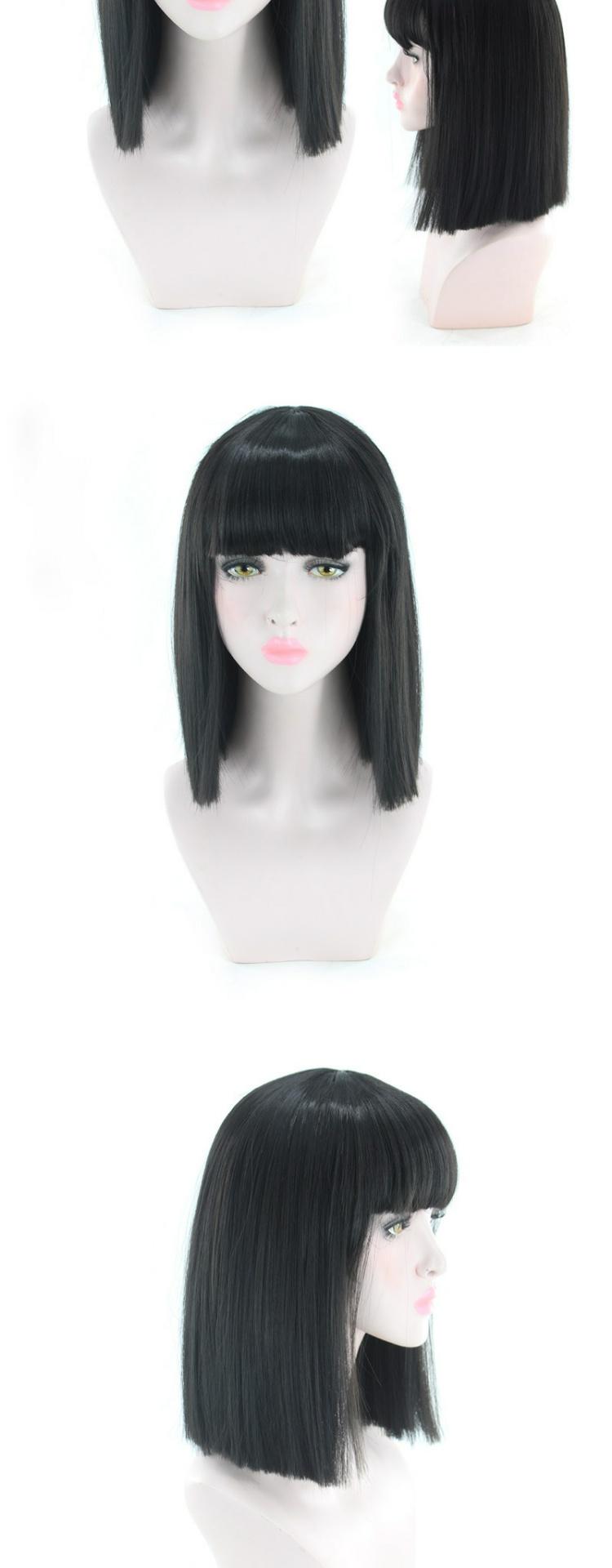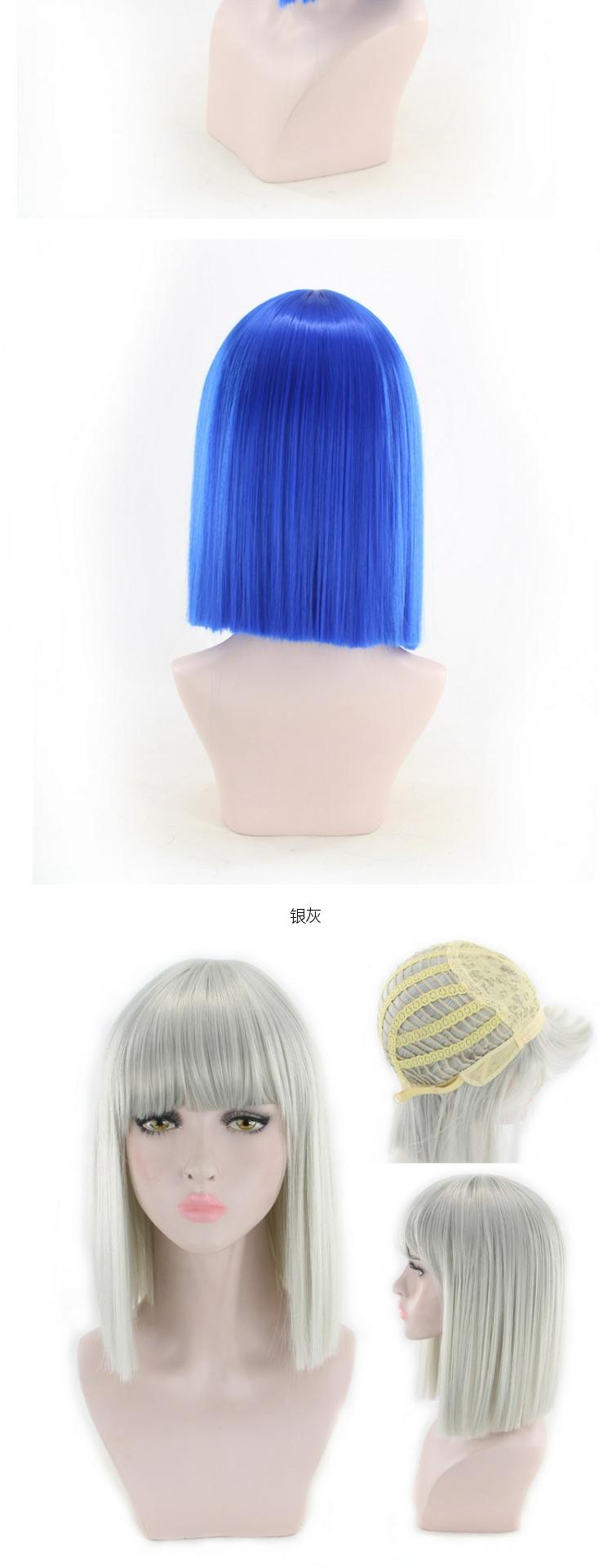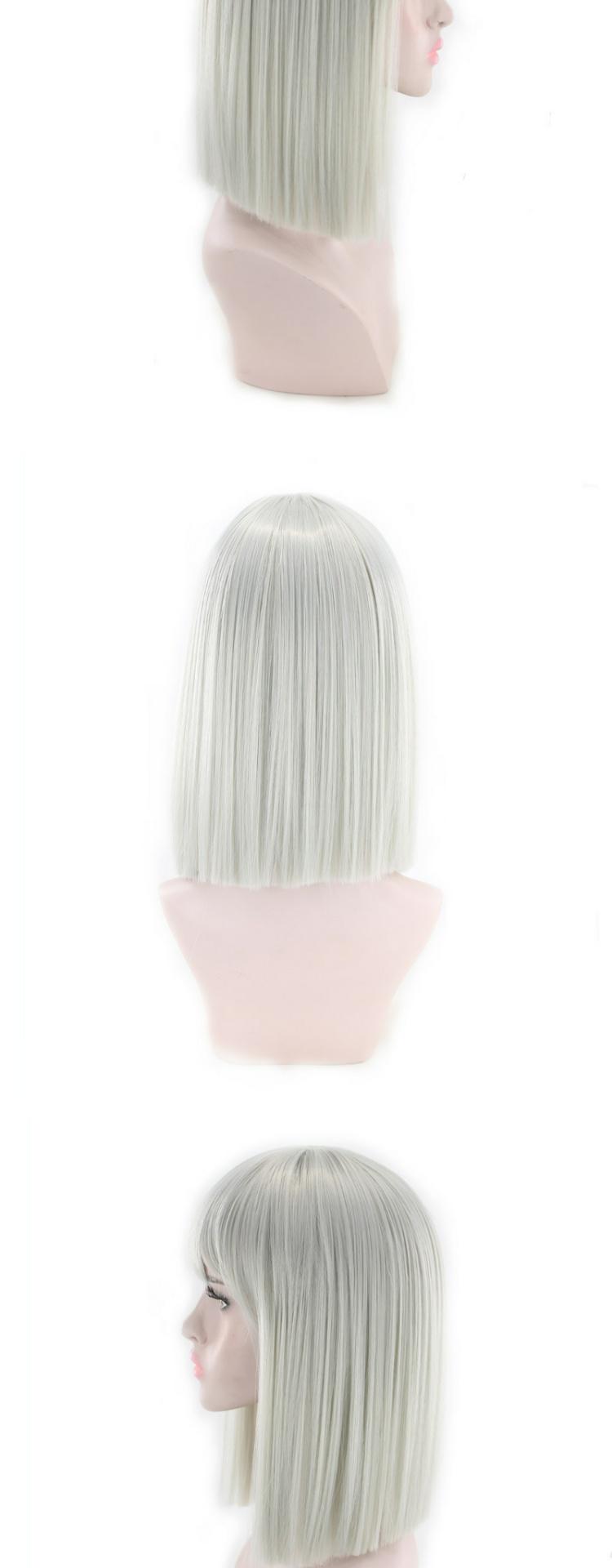 Gaga Peluca de Mujer hasta los Hombros Moda Flequillo Recto Simulación Personalidad Larga Bar Show de Baile Accesorios para Sesión de Fotos Blanco