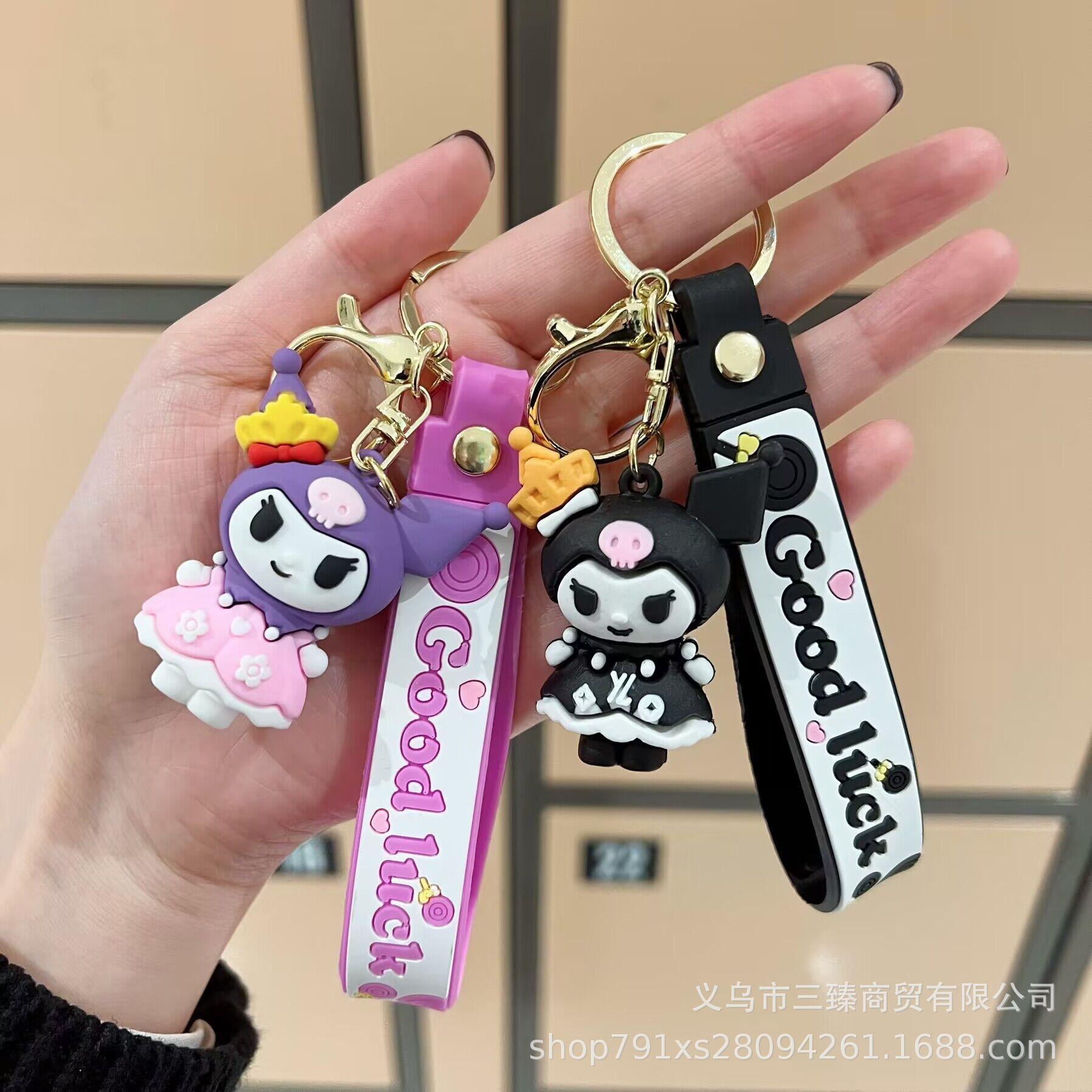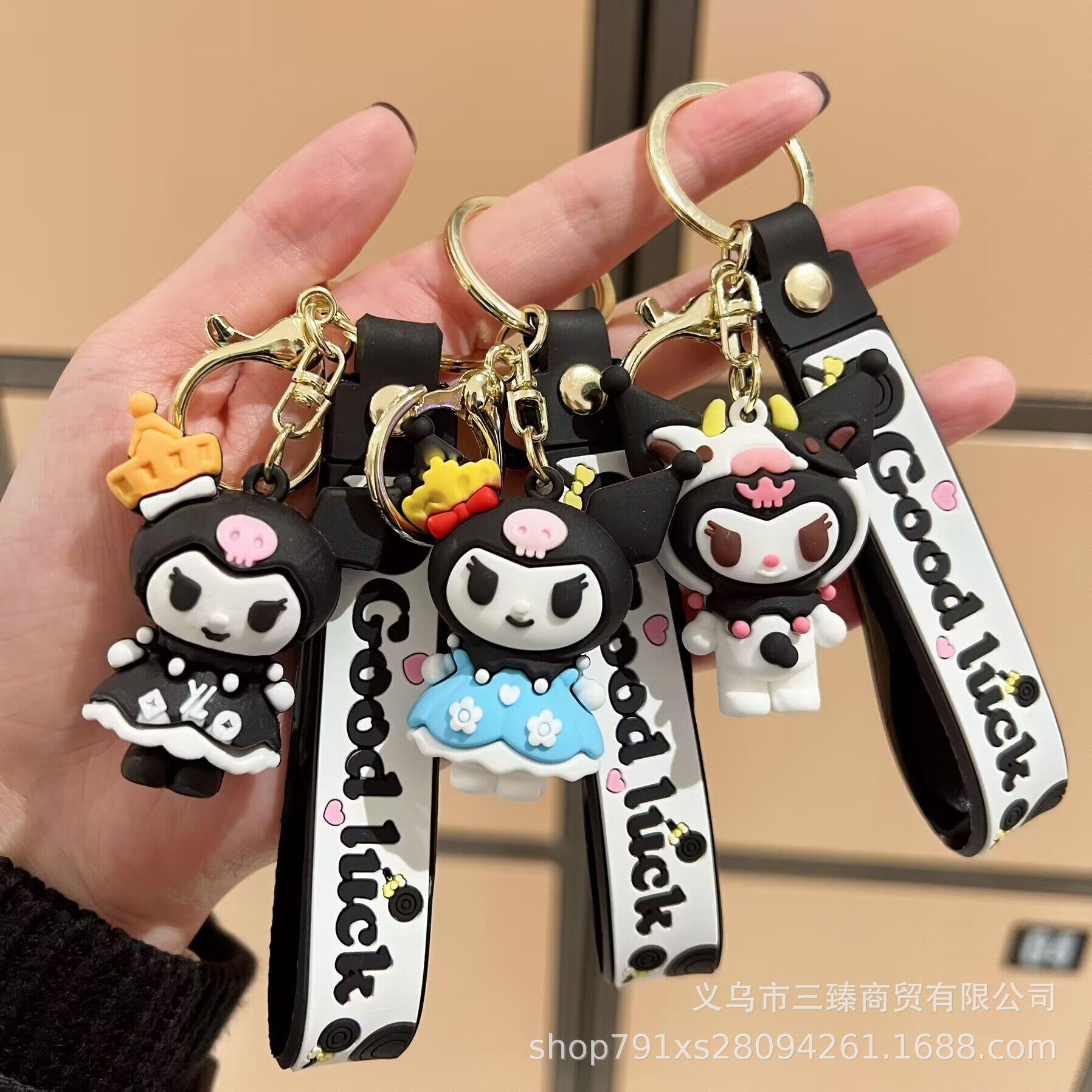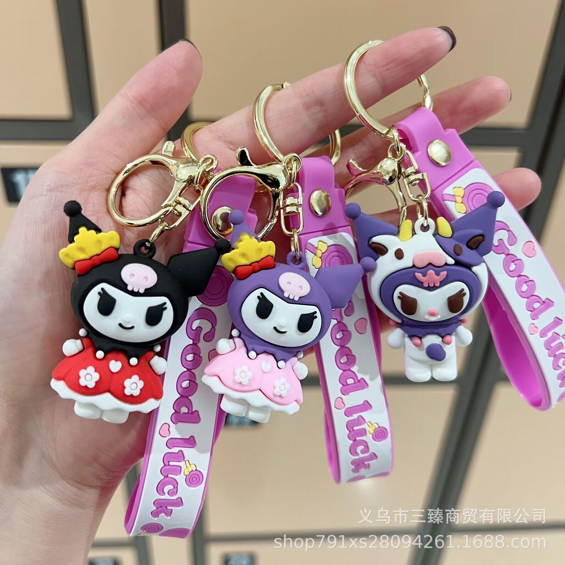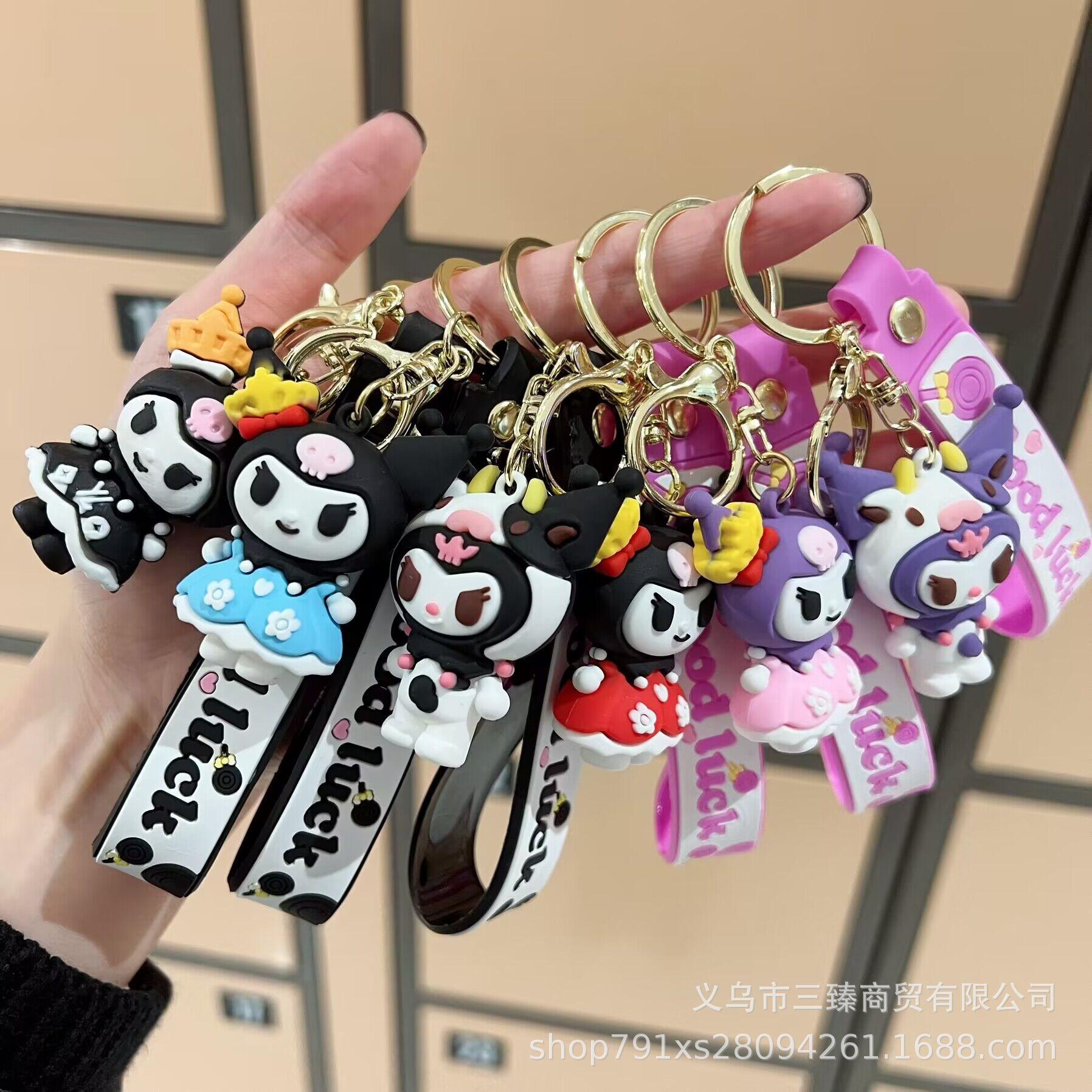 Llavero Sanrio Kuromi Dibujos Animados Llavero para Coche Círculo Muñeco Pareja Bolso Colgante Pequeño Regalo Venta al por Mayor