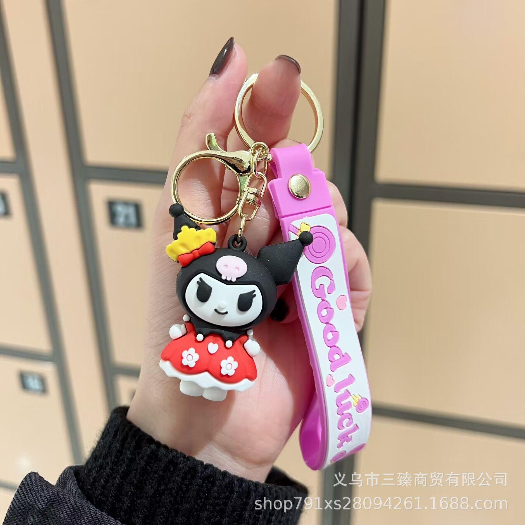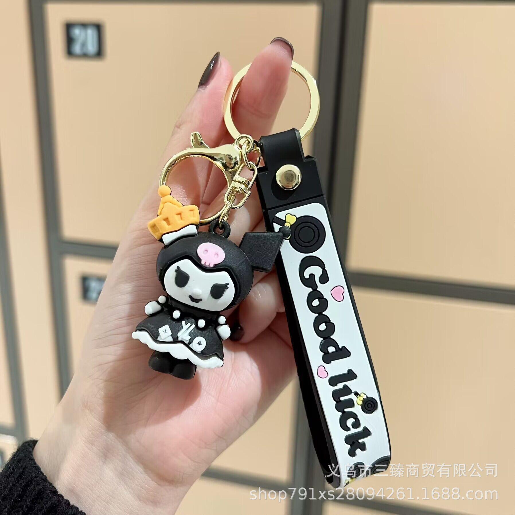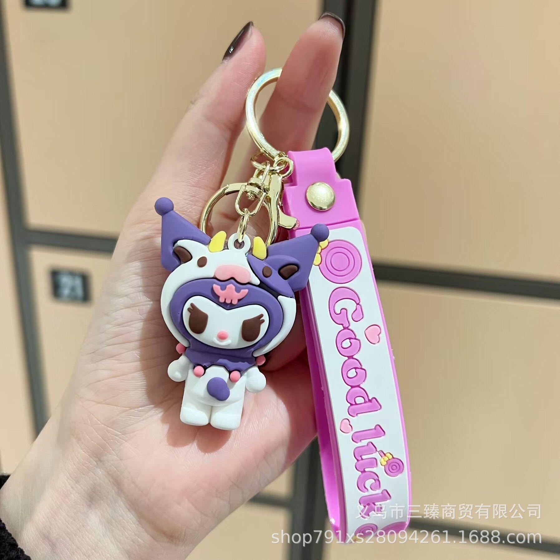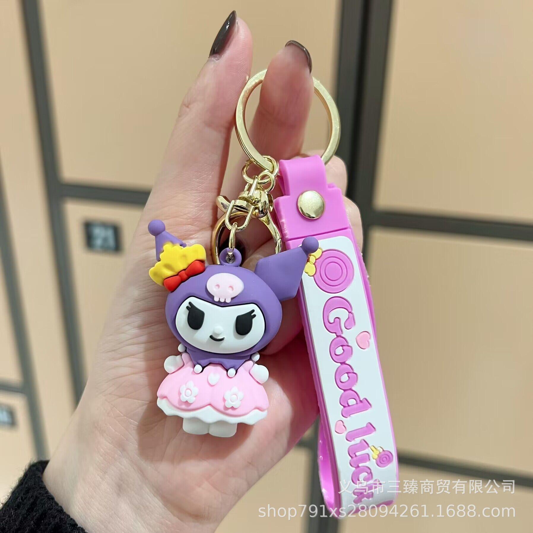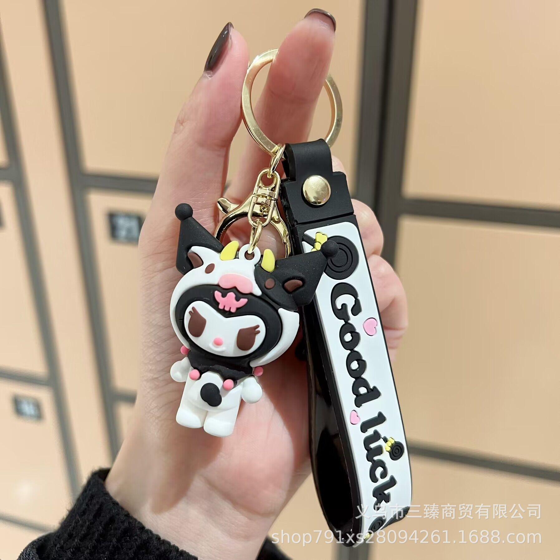 Llavero Sanrio Kuromi Dibujos Animados Llavero para Coche Círculo Muñeco Pareja Bolso Colgante Pequeño Regalo Venta al por Mayor