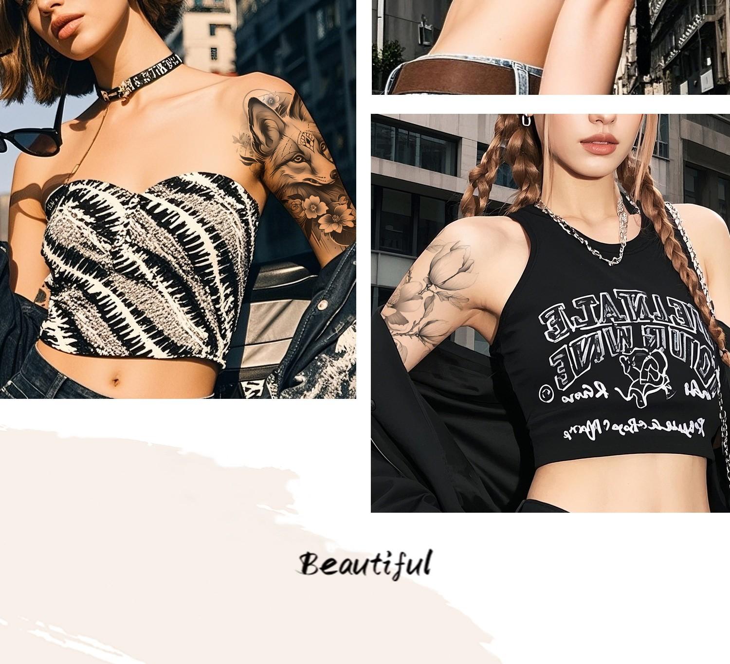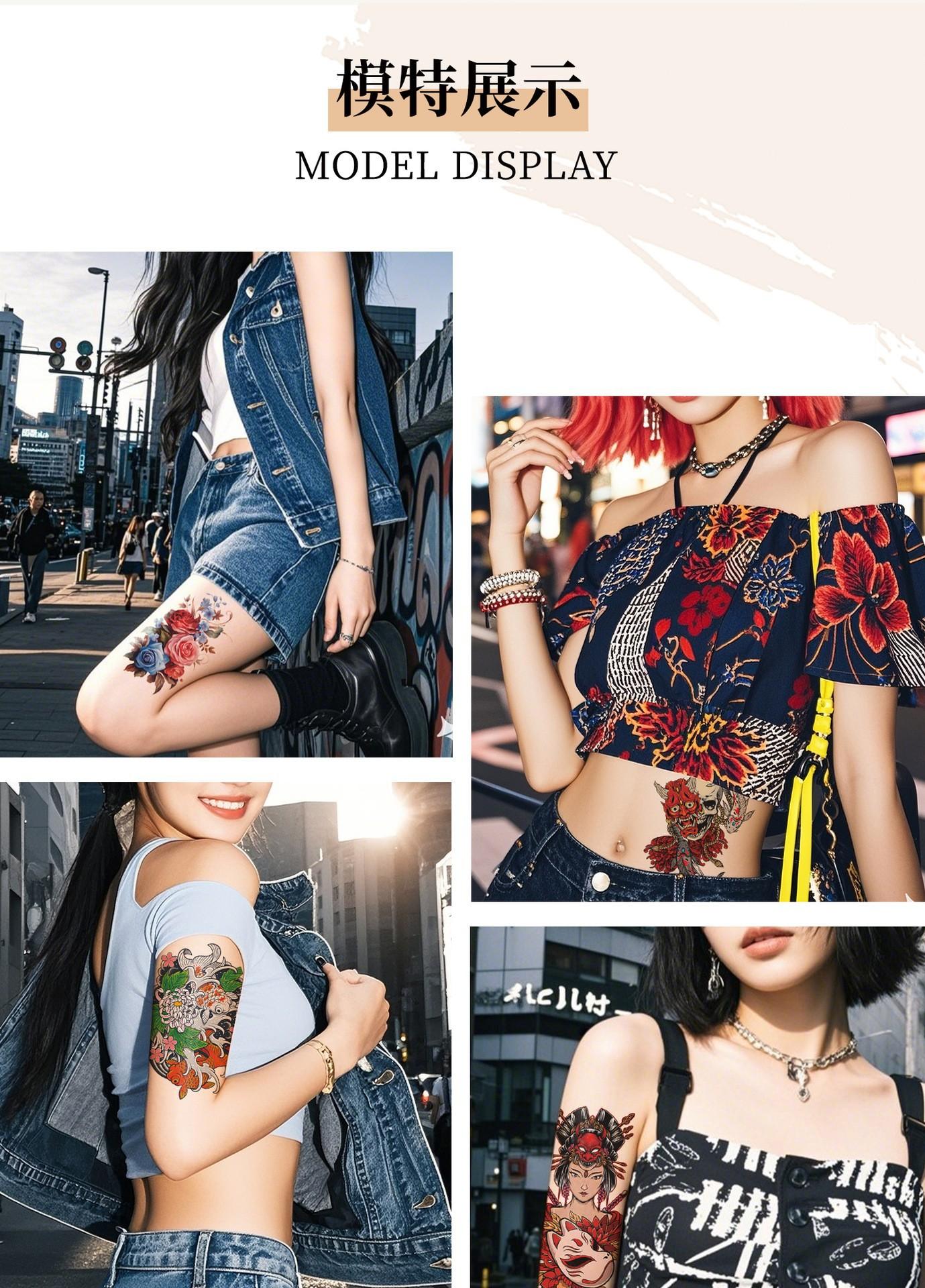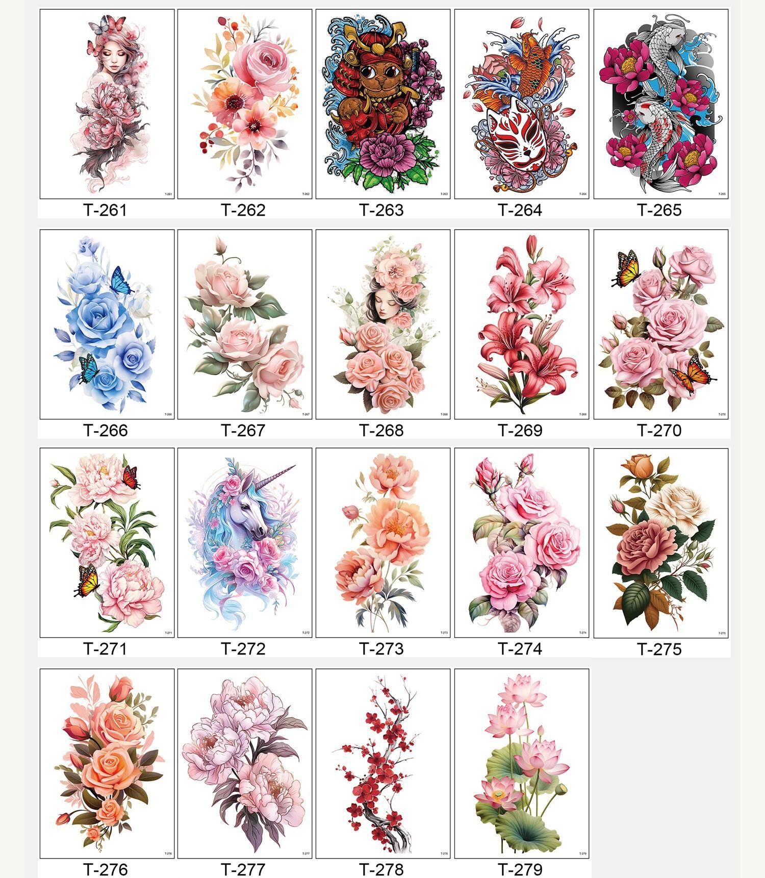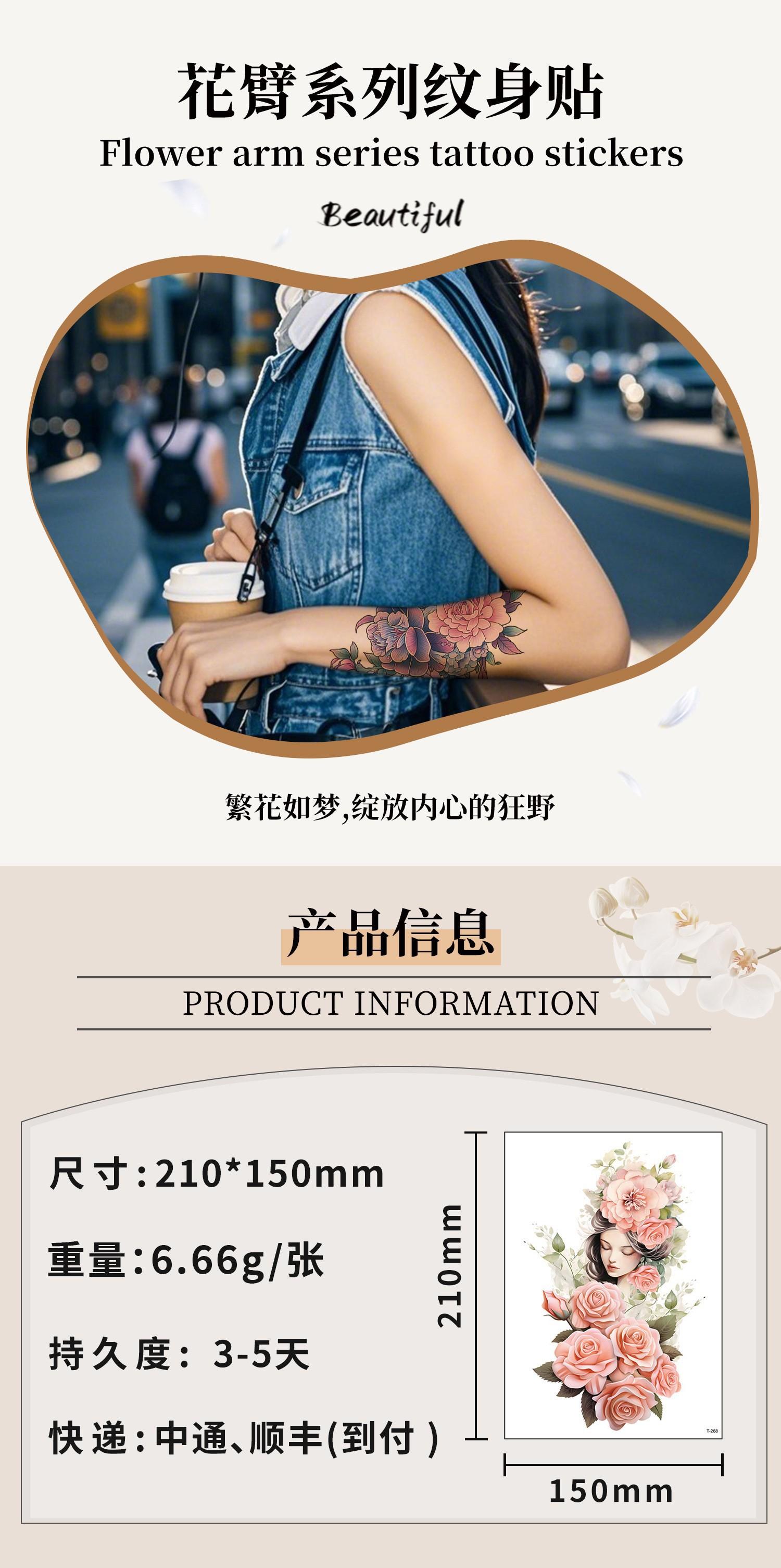 Nuevo Adhesivo de Tatuaje Temporal de Brazo de Flor Transfronterizo Geisha Tótem para siempre Adhesivo de Tatuaje Impermeable Duradero Tatuaje Temporal para Hombres y Mujeres