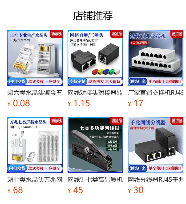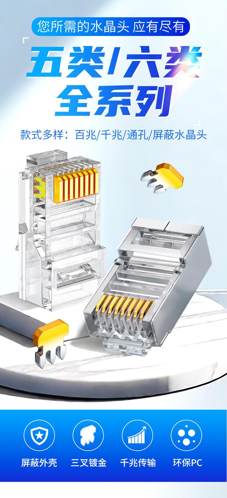 Category 5e unshielded, Category 5e shielded model, Category 5e through hole model, Category 5e imitation gold...